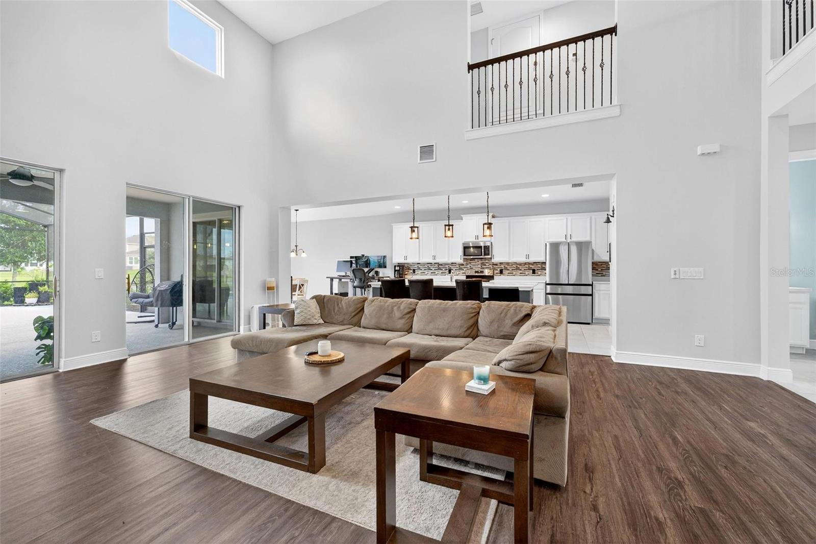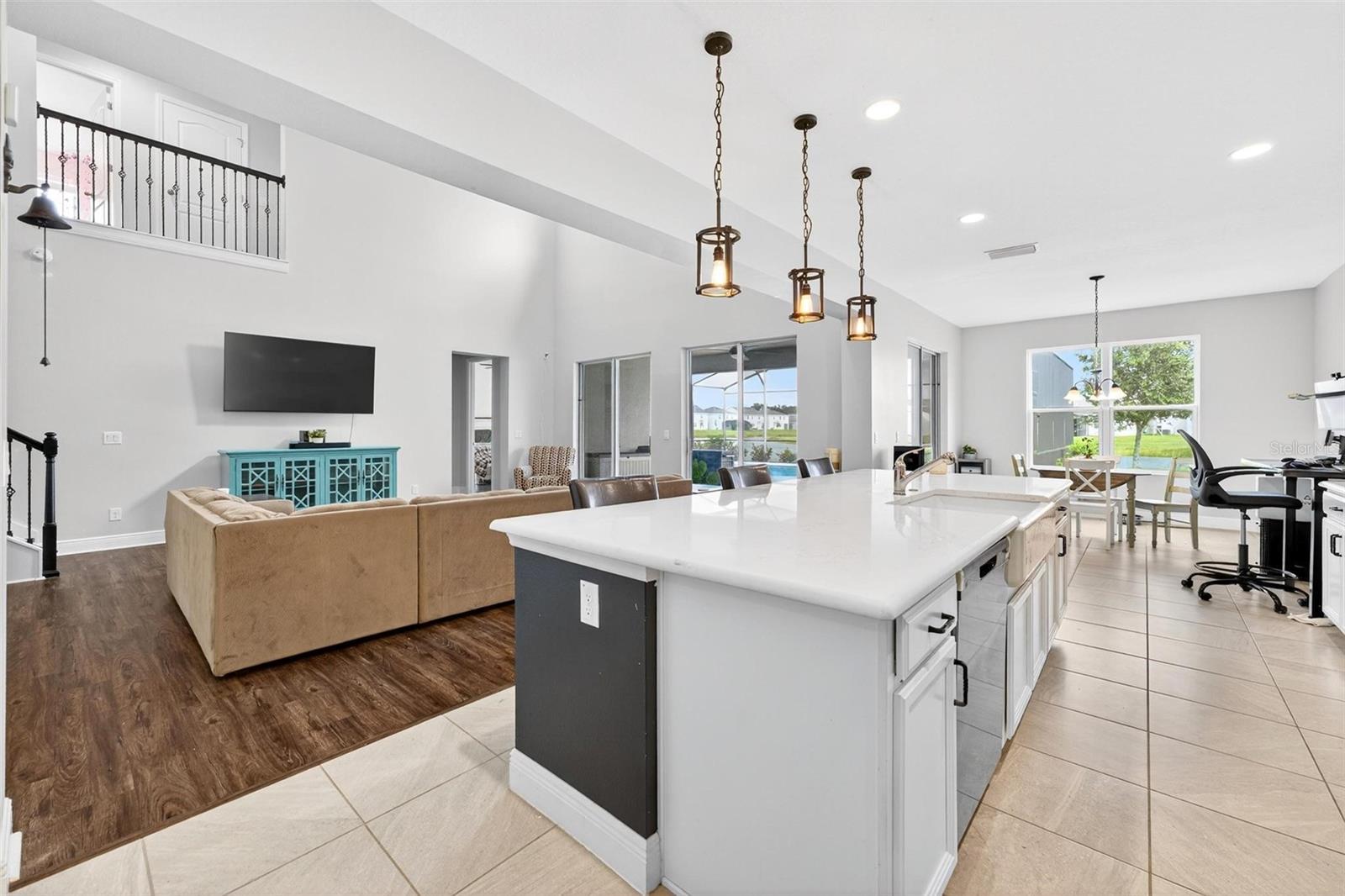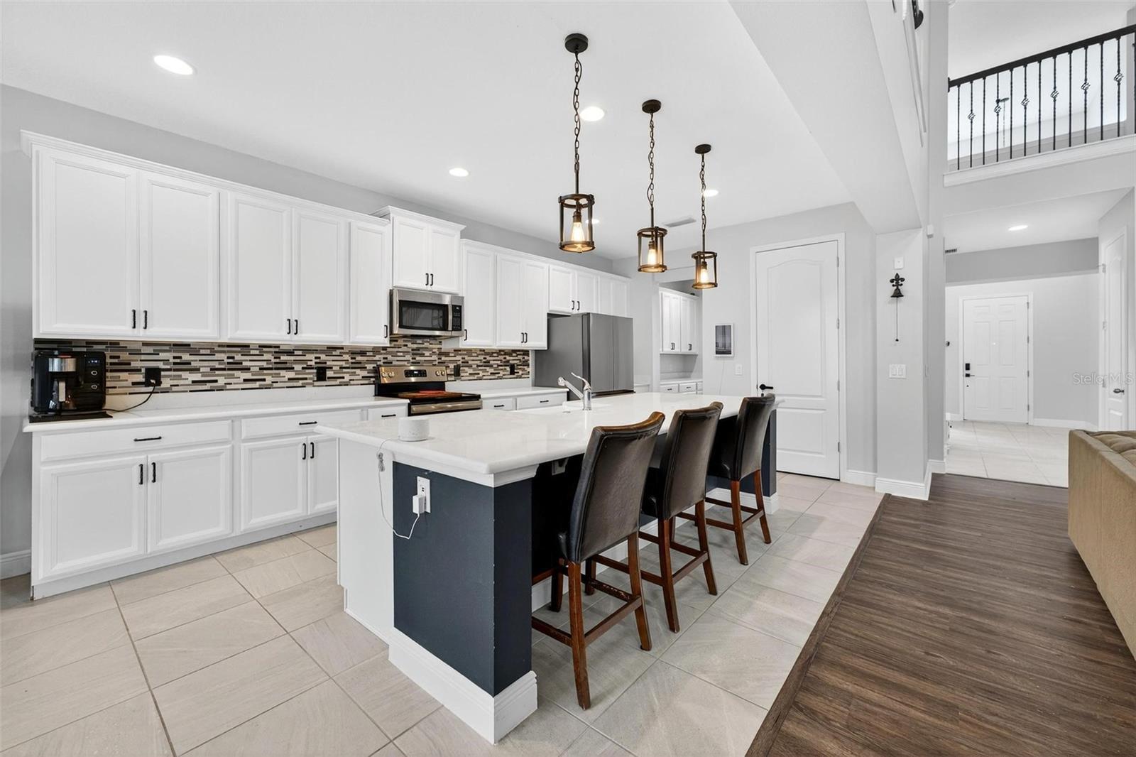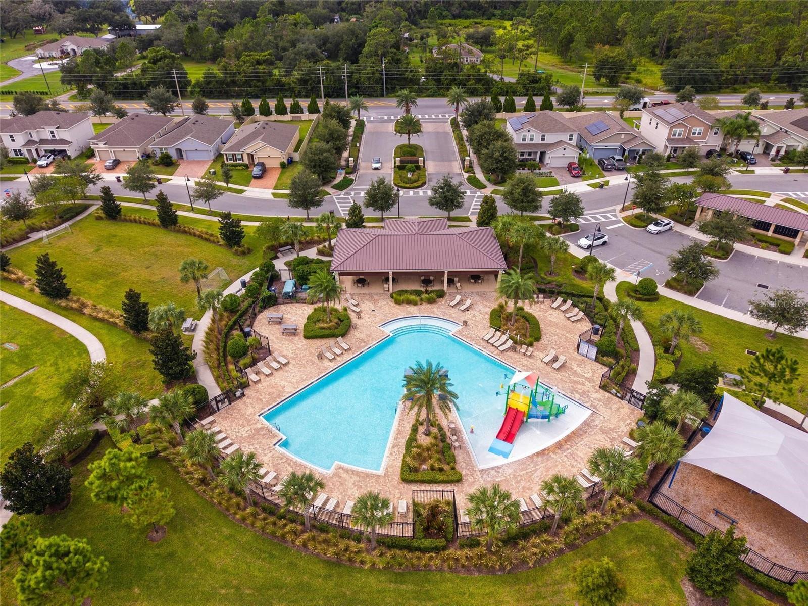 Under contract-accepting backup offers. This extraordinary 3,800 sq. ft. Exbury plan offers a luxurious waterfront lifestyle on a beautiful homesite at Hanover Lakes, featuring an open-concept design with 5 Bedrooms, 3.5 Baths, and a 3-car garage, highlighted by an incredible 1st Floor Primary Suite. The property provides direct water access via a navigable canal to the Alligator Chain of Lakes for great fishing and boating opportunities across 5 lakes. The oversized kitchen is a chef's delight with beautiful 42" cabinets, quartz countertops, a tile backsplash, expansive island, walk-in pantry, Stainless appliances, and an adjacent Butler's Pantry leading to the Dining Room. A dramatic 2-story Family Room overlooks a spacious covered rear Lanai for entertaining, and the home features upgraded luxury vinyl flooring in main 1st-floor living areas and included window blinds throughout. The Primary Bedroom's luxurious en-suite bath boasts 2 walk-in closets, separate quartz vanities, a free-standing soaking tub, and a separate walk-in shower. Additional gathering space is found in the 2nd-floor Loft/Family Room, ideal for media or exercise. The exterior includes an attractive brick paver driveway and a private, completely screened, salt water pool with a splash pad and beautiful waterfall. Exceptional community amenities include a resort-style pool, splash pad, and playground, and the convenient location is close to Disney, Universal, Sea World, nearby Atlantic Beaches, and expressways for easy access to Downtown Orlando.
