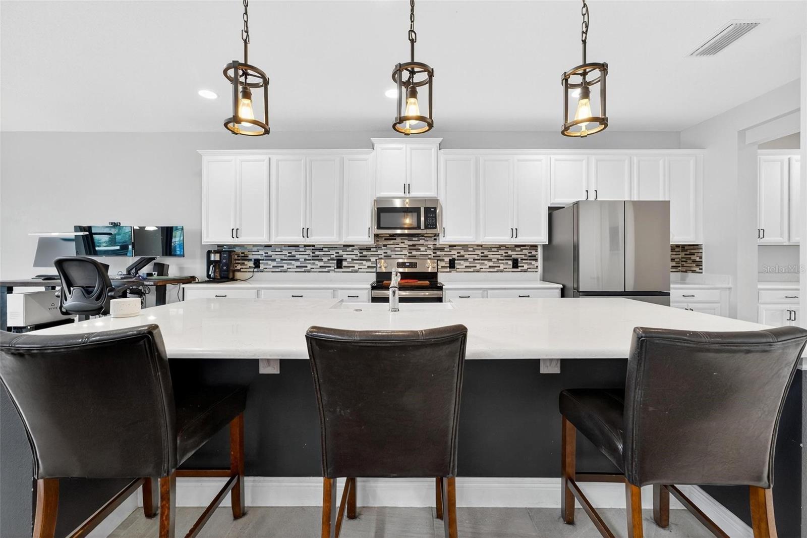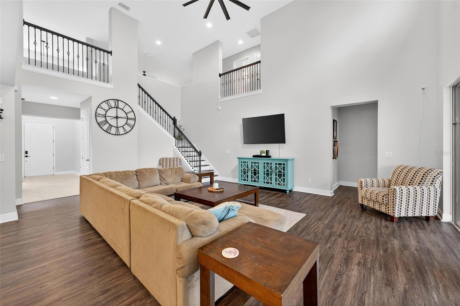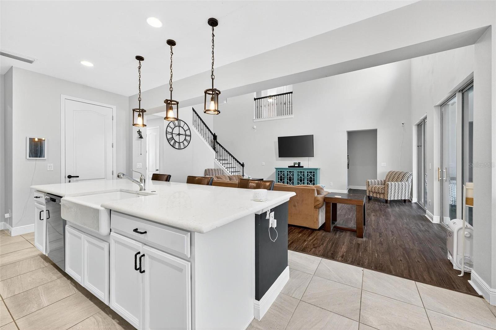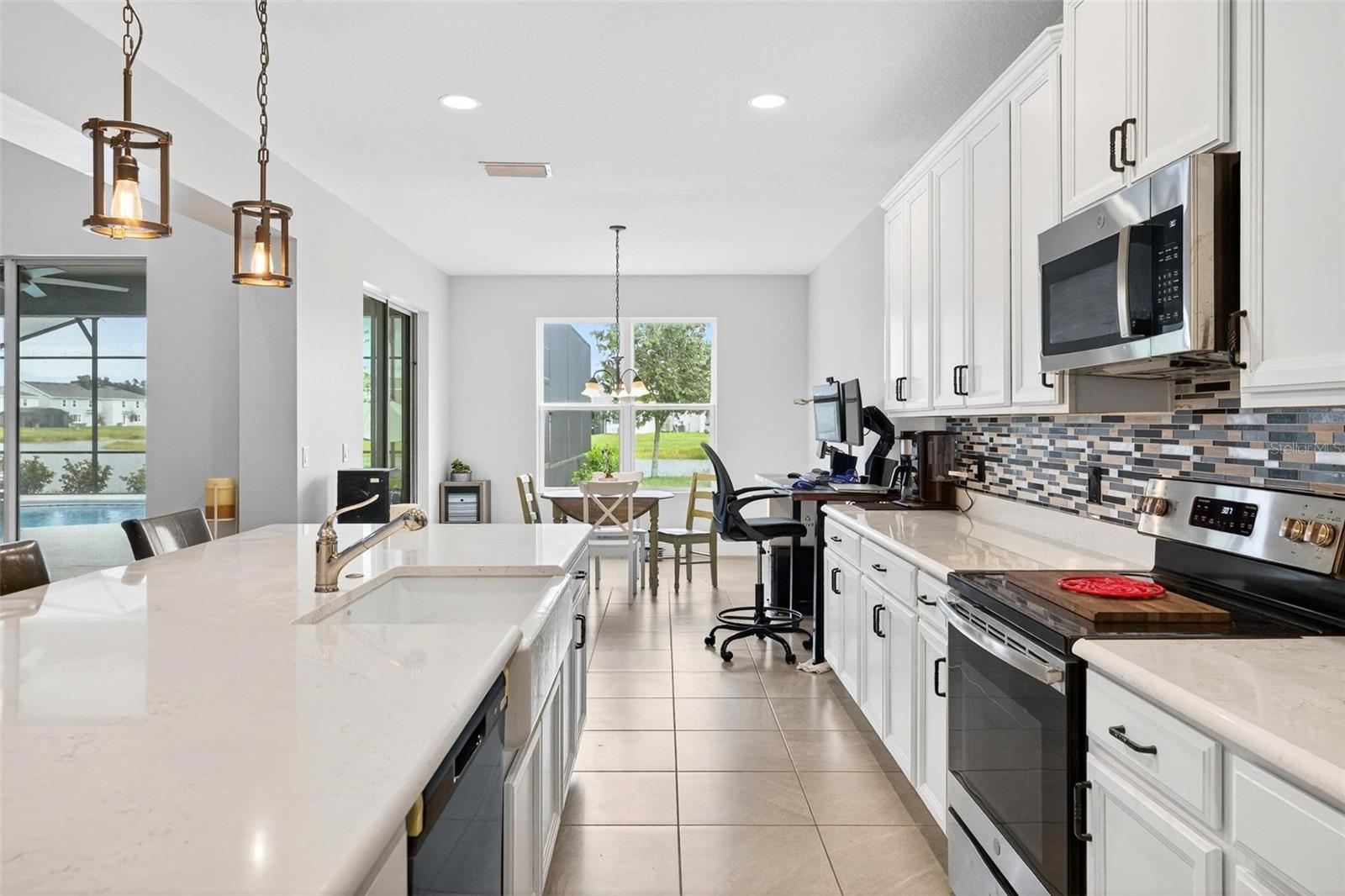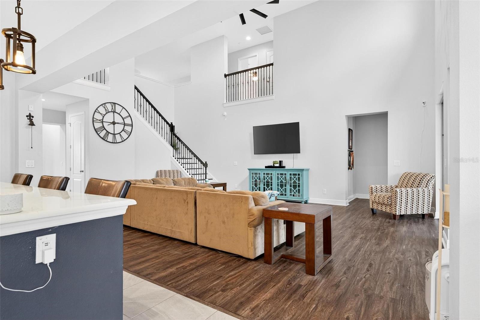Under contract-accepting backup offers. This extraordinary 3,800 sq. ft. Exbury plan offers a luxurious waterfront lifestyle on a beautiful homesite at Hanover Lakes, featuring an open-concept design with 5 Bedrooms, 3.5 Baths, and a 3-car garage, highlighted by an incredible 1st Floor Primary Suite. The property provides direct water access via a navigable canal to the Alligator Chain of Lakes for great fishing and boating opportunities across 5 lakes. The oversized kitchen is a chef's delight with beautiful 42" cabinets, quartz countertops, a tile backsplash, expansive island, walk-in pantry, Stainless appliances, and an adjacent Butler's Pantry leading to the Dining Room. A dramatic 2-story Family Room overlooks a spacious covered rear Lanai for entertaining, and the home features upgraded luxury vinyl flooring in main 1st-floor living areas and included window blinds throughout. The Primary Bedroom's luxurious en-suite bath boasts 2 walk-in closets, separate quartz vanities, a free-standing soaking tub, and a separate walk-in shower. Additional gathering space is found in the 2nd-floor Loft/Family Room, ideal for media or exercise. The exterior includes an attractive brick paver driveway and a private, completely screened, salt water pool with a splash pad and beautiful waterfall. Exceptional community amenities include a resort-style pool, splash pad, and playground, and the convenient location is close to Disney, Universal, Sea World, nearby Atlantic Beaches, and expressways for easy access to Downtown Orlando.