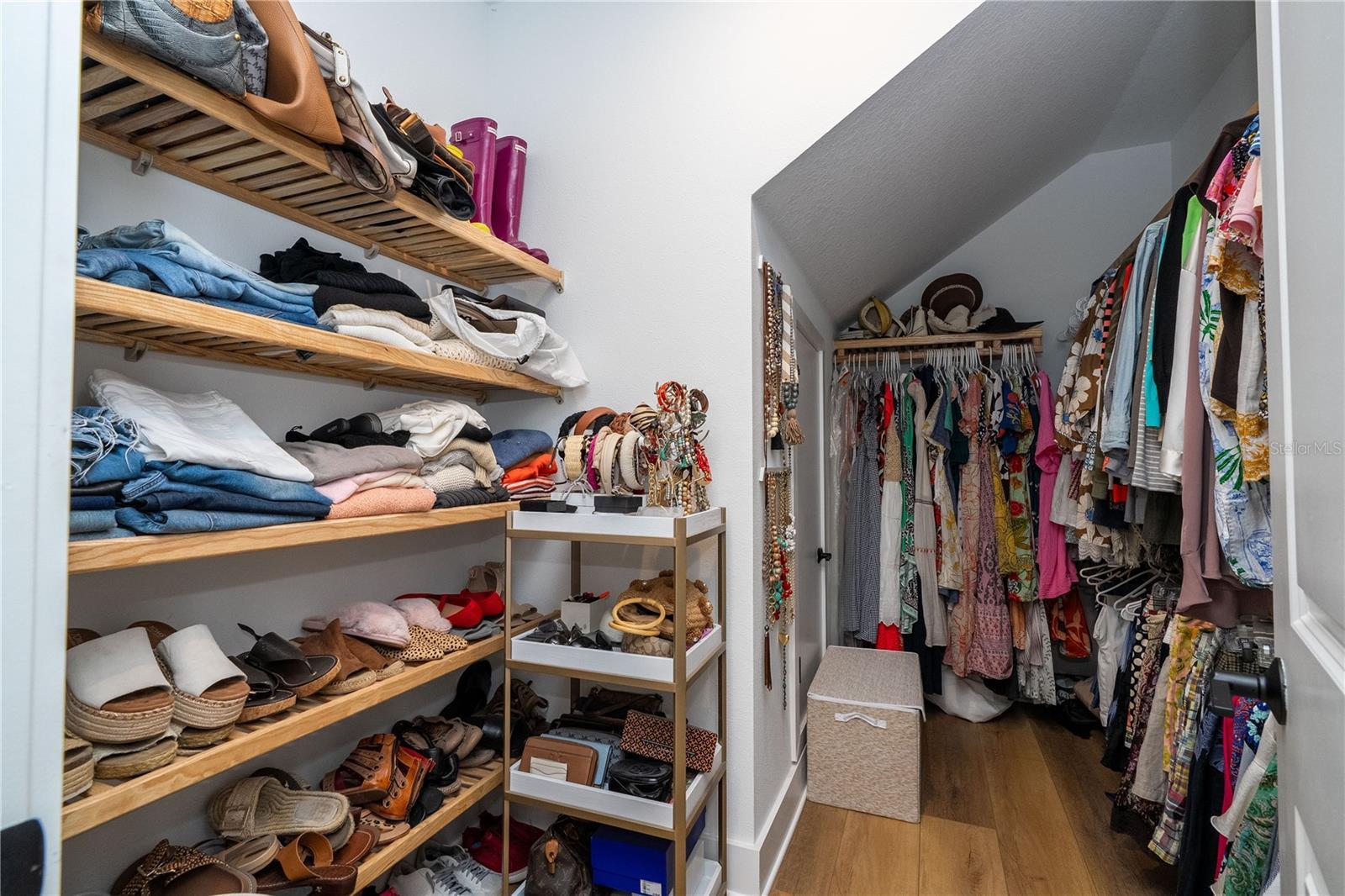 - Eat-in Kitchen, High Ceilings, Kitchen/Family Room Combo, Living Room/Dining Room Combo, Open Floorplan, PrimaryBedroom Upstairs, Solid Surface Counters, Solid Wood Cabinets, Thermostat, Walk-In Closet(s)