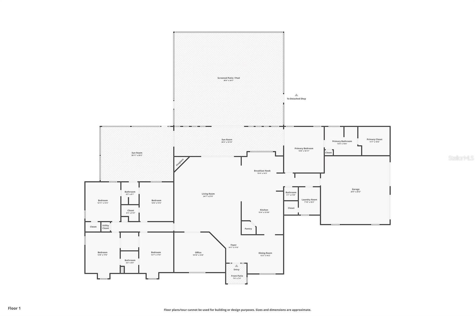 One or more photo(s) has been virtually staged. Welcome to your dream retreat in the heart of Central Florida — a stunning 4,495 sq ft custom residence nestled on 2.3 acres with no HOA and ample space to park boats, RVs, or build the lifestyle you’ve always envisioned. This expansive 5 Bed, 3.5 Bath home begins with a grand foyer entry, gleaming hardwood floors, and a true open concept great room plan with soaring 12-foot ceilings. A stone-accented gas fireplace anchors the main living space, framed by custom built-ins and picture windows that pour in natural light. The kitchen is freshly updated with granite countertops, stainless appliances, a large island, and a breakfast nook big enough to seat the entire family. Entertain effortlessly with connected formal and informal dining areas. Unwind in the Florida sunroom, a showstopper with warm tongue-and-groove ceilings, ceramic tile floors, and panoramic views of the screened black-bottom lagoon-style pool. Adjacent is a summer porch/kitchen perfect for weekend barbecues and gatherings. The primary suite is an absolute sanctuary — oversized and private, with a luxurious en-suite bath featuring dual vanities, a soaking tub, and walk-in shower. Don’t miss the California-style custom walk-in closet — a storage lover’s dream! All secondary bedrooms are generously sized with Jack-and-Jill bathrooms and ample closet space — perfect for a growing family or multi-generational living. Car collectors and hobbyists will fall in love with the brand-new detached garage/workshop, complete with high ceilings, concrete flooring, and power — ideal for tools, toys, or treasured vehicles. Additional outbuildings offer even more storage and function. With room to roam, no HOA restrictions, and an unbeatable location in Leesburg, this property blends country serenity with everyday convenience. Come live the Florida acreage lifestyle without compromise!