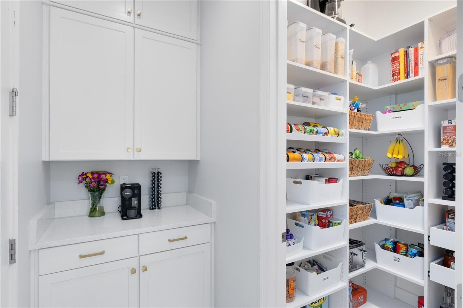 - Built-in Features, Crown Molding, Dry Bar, Eat-in Kitchen, High Ceilings, Kitchen/Family Room Combo, Living Room/Dining Room Combo, Open Floorplan, PrimaryBedroom Upstairs, Solid Wood Cabinets, Split Bedroom, Stone Counters, Thermostat, Tray Ceiling(s), Walk-In Closet(s), Wet Bar, Window Treatments