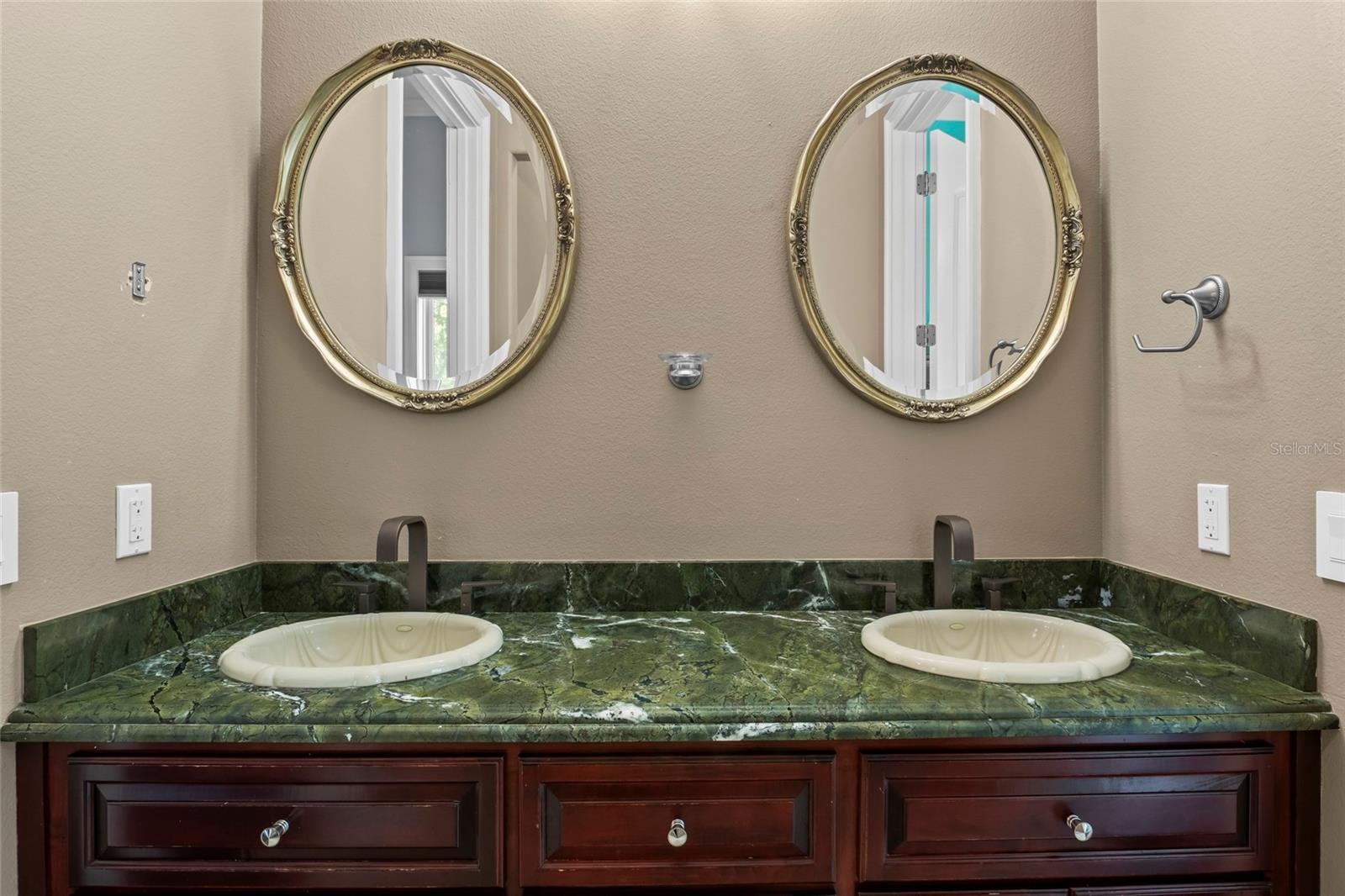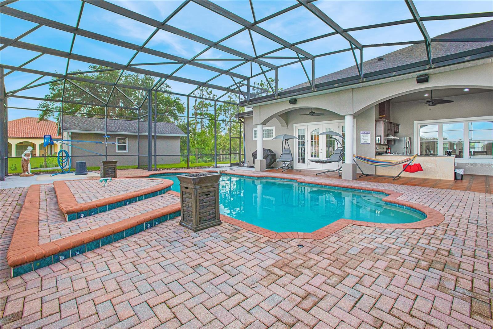 Discover your own tropical paradise in this exquisite 4-bedroom, 4-bathroom Mediterranean-style home, perfectly situated on a serene 1.86-acre lot. Surrounded by majestic palms and introduced by a grand porte-cochere, this residence radiates timeless elegance, privacy, and sophistication. Inside, 5,478 square feet of air-conditioned living space welcomes you with a grand foyer, formal living and dining rooms, and striking architectural details such as Roman columns, marble floors, and graceful archways. The chef’s kitchen is a dream, featuring a spacious island, granite countertops, gas cooktop, double built-in ovens, and abundant custom cabinetry. The master suite offers a private retreat with a sitting area, French doors to the lanai, and a spa-inspired bath complete with a Hydro Massage tub, separate shower, and three walk-in closets. Step outside to your expansive screened lanai, where relaxation and entertainment come naturally. Enjoy the sparkling pool, outdoor kitchen and grill, and tranquil pond views—the perfect setting for gatherings or quiet evenings under the Florida sky. Ideally located in the Wedgefield community, this property combines tranquility with convenience—just minutes from Canaveral National Seashore, local beaches, and world-class attractions such as Walt Disney World and Universal Orlando Resort.