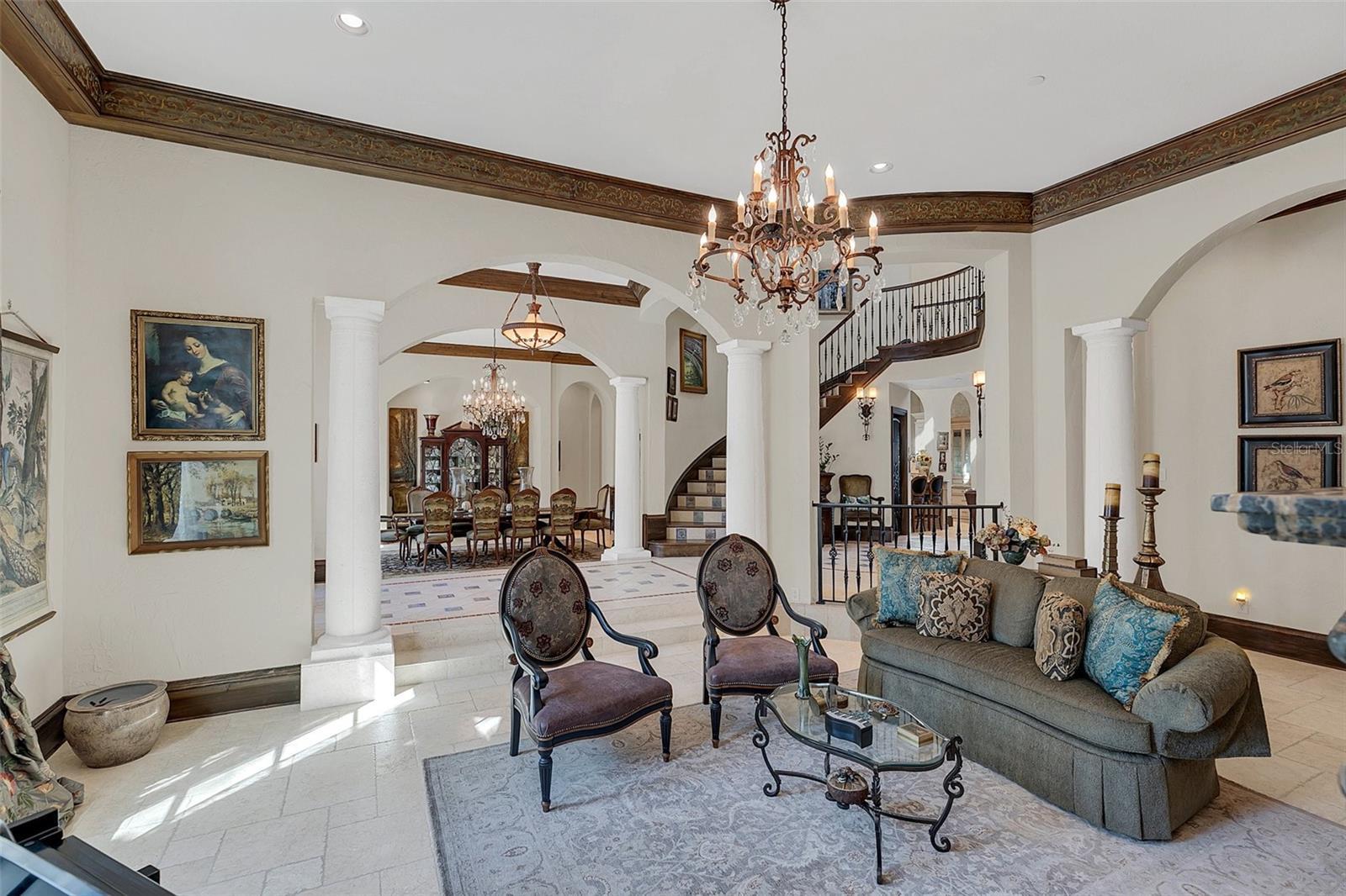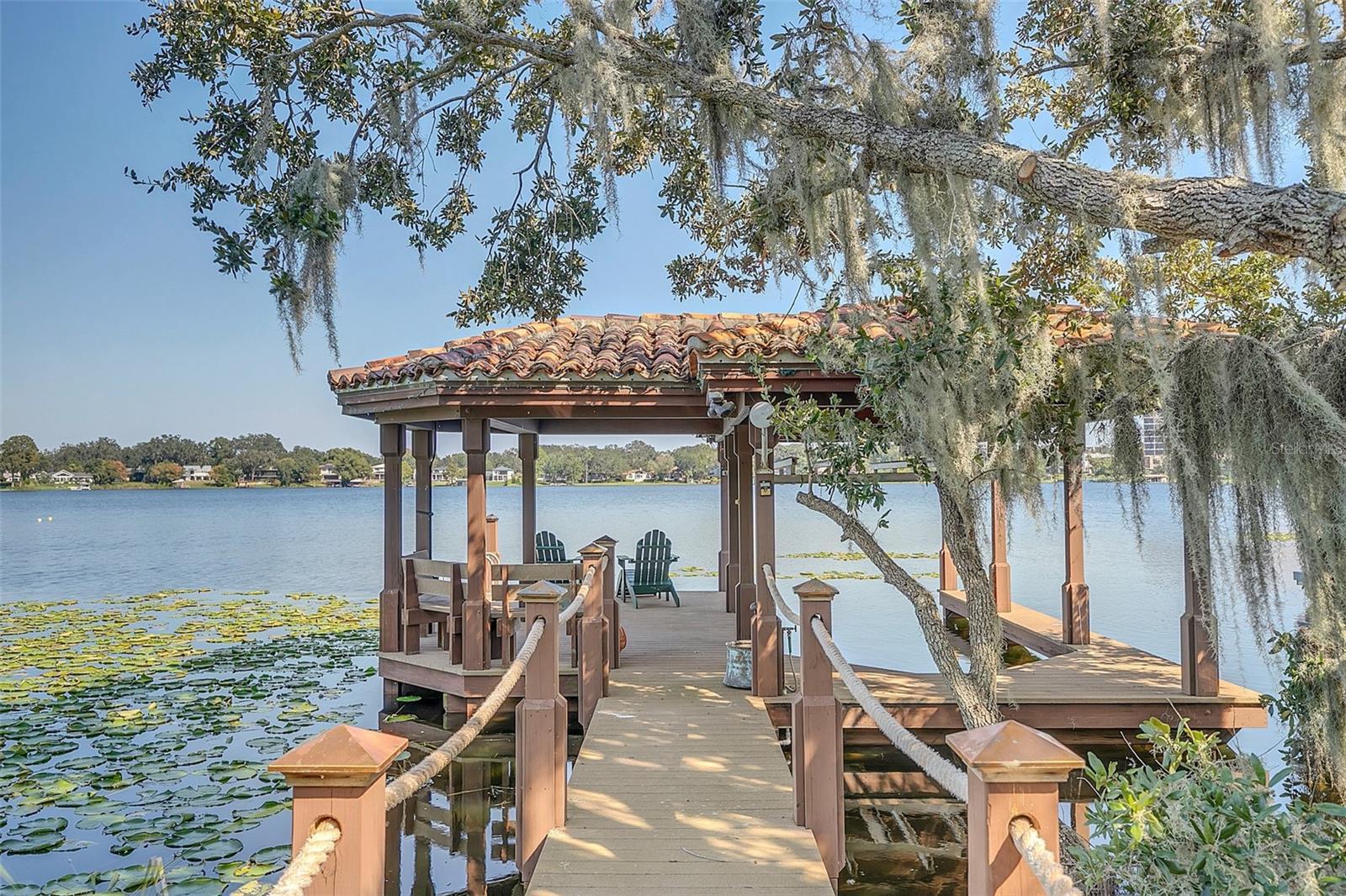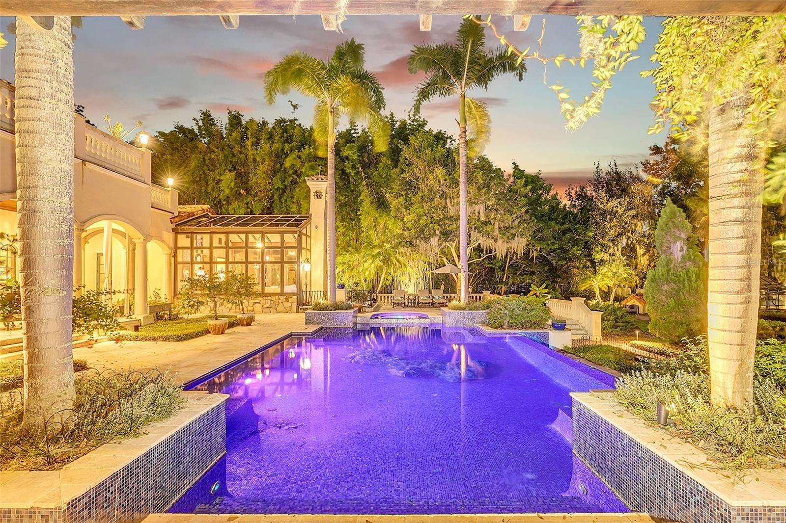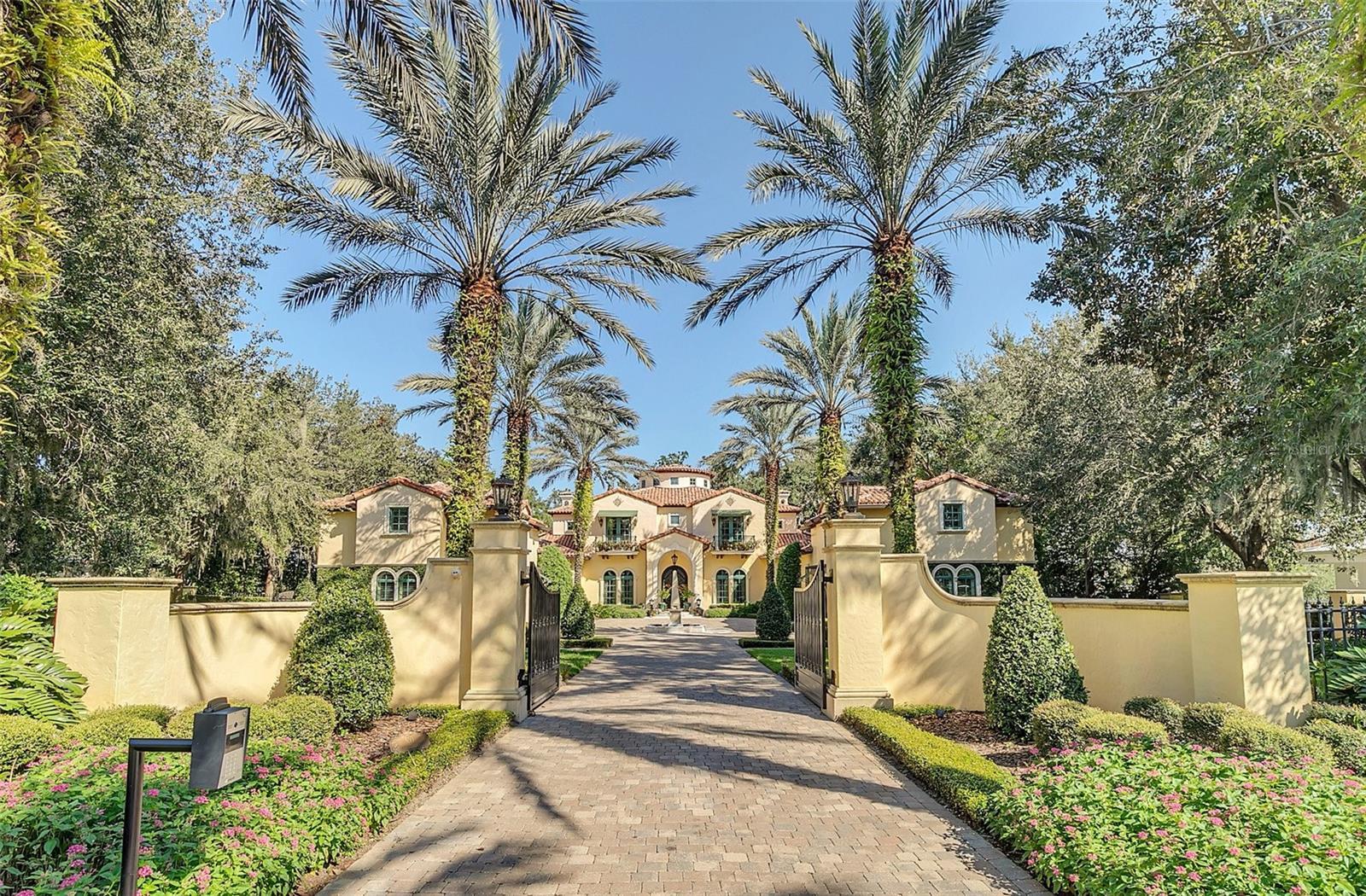 In the exclusive community of Windsong on Lake Berry, this magnificent 1.6-acre gated Mediterranean estate is a private oasis. With over 11,000 square feet of living area and a beautifully landscaped lakefront lot, this residence offers an exceptional blend of elegance, charm and privacy rarely found in Winter Park. The home features seven spacious bedrooms and nine full and two half baths. Entertain in the all-glass conservatory, dedicated theater room with motorized seating and a fully equipped game room. Modern conveniences throughout including gas-powered generators, an elevator and dumbwaiter. Two above-garage apartments provide ideal accommodations for guests and family. Outdoors, enjoy an expansive covered lanai, infinity edge pool and spa, boat dock with jet ski lift, and a summer kitchen complete with wood-burning fireplace, gas grill, refrigerator and icemaker, all overlooking the beautifully landscaped yard and lake. With its private gated entrance, this home is a one-of-a-kind opportunity to enjoy all the amenities Winter Park and Windsong have to offer.