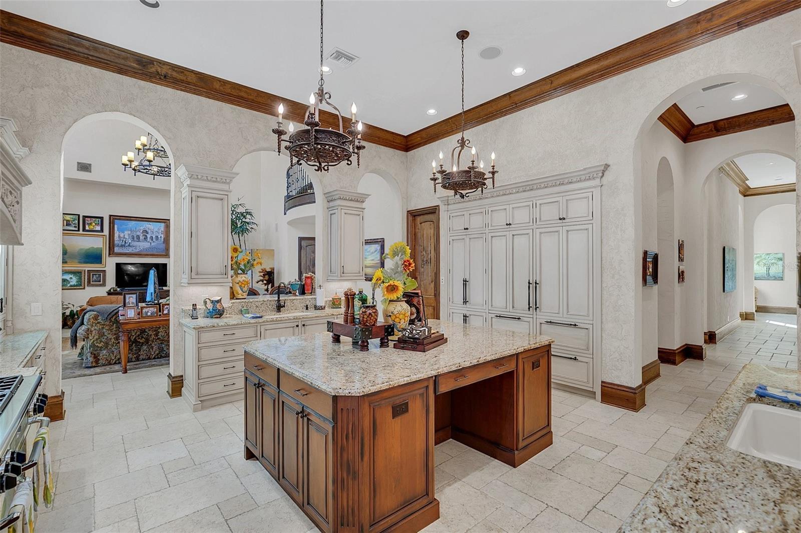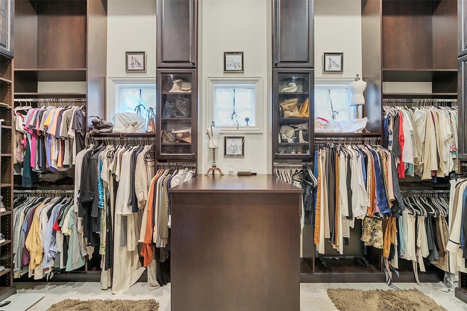 - Built-in Features, Ceiling Fans(s), Coffered Ceiling(s), Crown Molding, Dumbwaiter, Eat-in Kitchen, Elevator, High Ceilings, Kitchen/Family Room Combo, Primary Bedroom Main Floor, Smart Home, Solid Wood Cabinets, Split Bedroom, Thermostat, Vaulted Ceiling(s), Walk-In Closet(s), Wet Bar