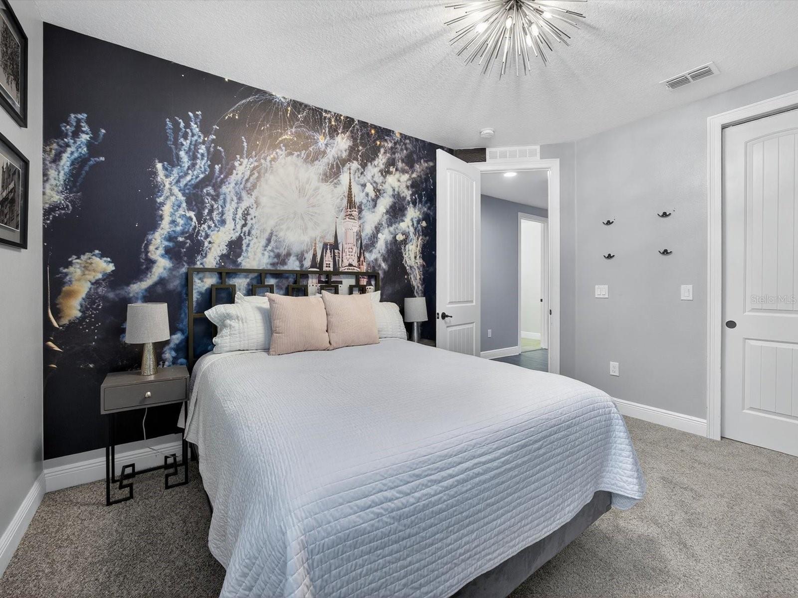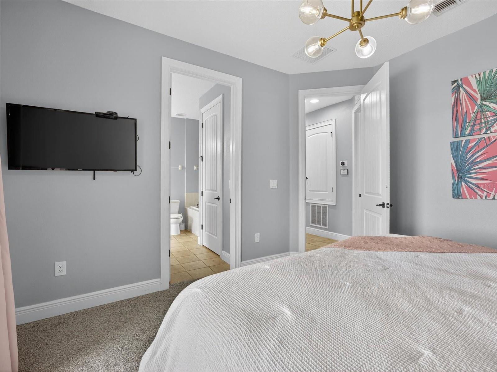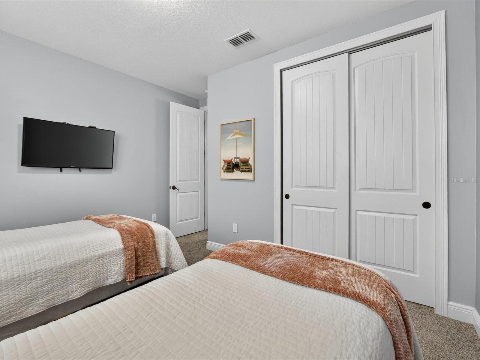 Price Reduction! Located in the gated Reunion community, this fully furnished and beautifully themed single-family home is the perfect addition to any short-term rental portfolio. Designed with both comfort and profitability in mind, every bedroom features its own attached full bathroom, maximizing guest privacy and appeal for larger rental groups. The open-concept kitchen comes equipped with granite countertops, stainless steel appliances, and flows seamlessly into the living and dining area—an ideal setup for entertaining and group gatherings. Step outside to the private pool and spa, complete with a covered lanai and no rear neighbors, offering an attractive outdoor experience for guests. Upstairs, the loft serves as an entertainment center, while the converted garage provides an additional family room for more usable living space. Full-size washer and dryer sets on both floors add extra convenience for turnovers and extended stays. Owners and guests also enjoy access to the Encore Resort at Reunion, featuring a clubhouse, water park, fitness center, playground, volleyball and basketball courts, community grills, and on-site restaurant—all of which enhance rental demand and guest satisfaction. Situated close to major theme parks, multiple golf courses, and a variety of restaurants and shops, this home has plenty to offer. With its turnkey setup, and resort-style amenities, this property is ready for investors looking for short-term rental potential or families looking for a resort-style retreat.