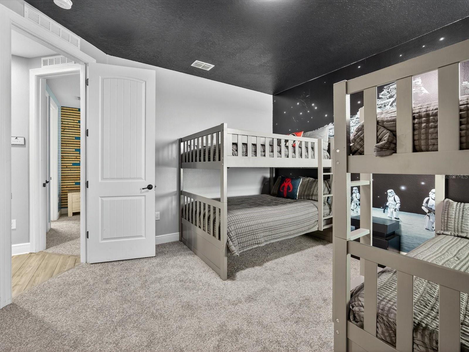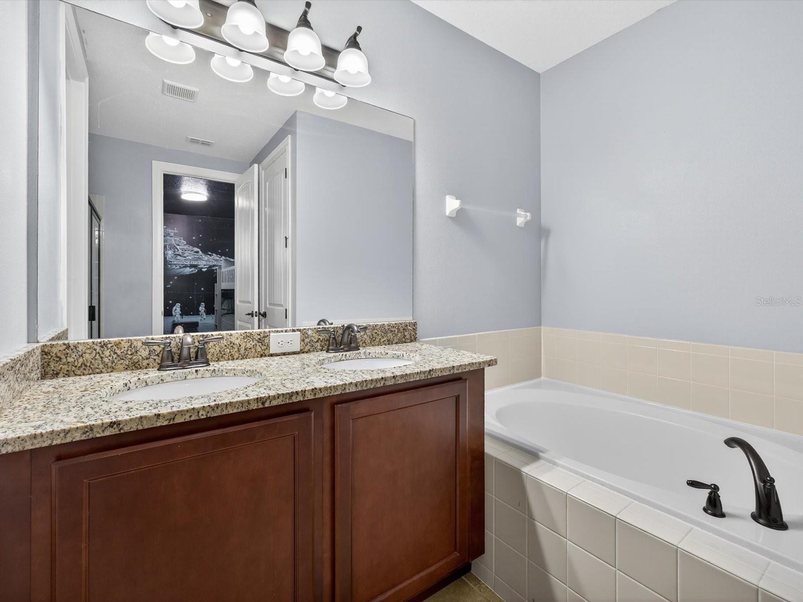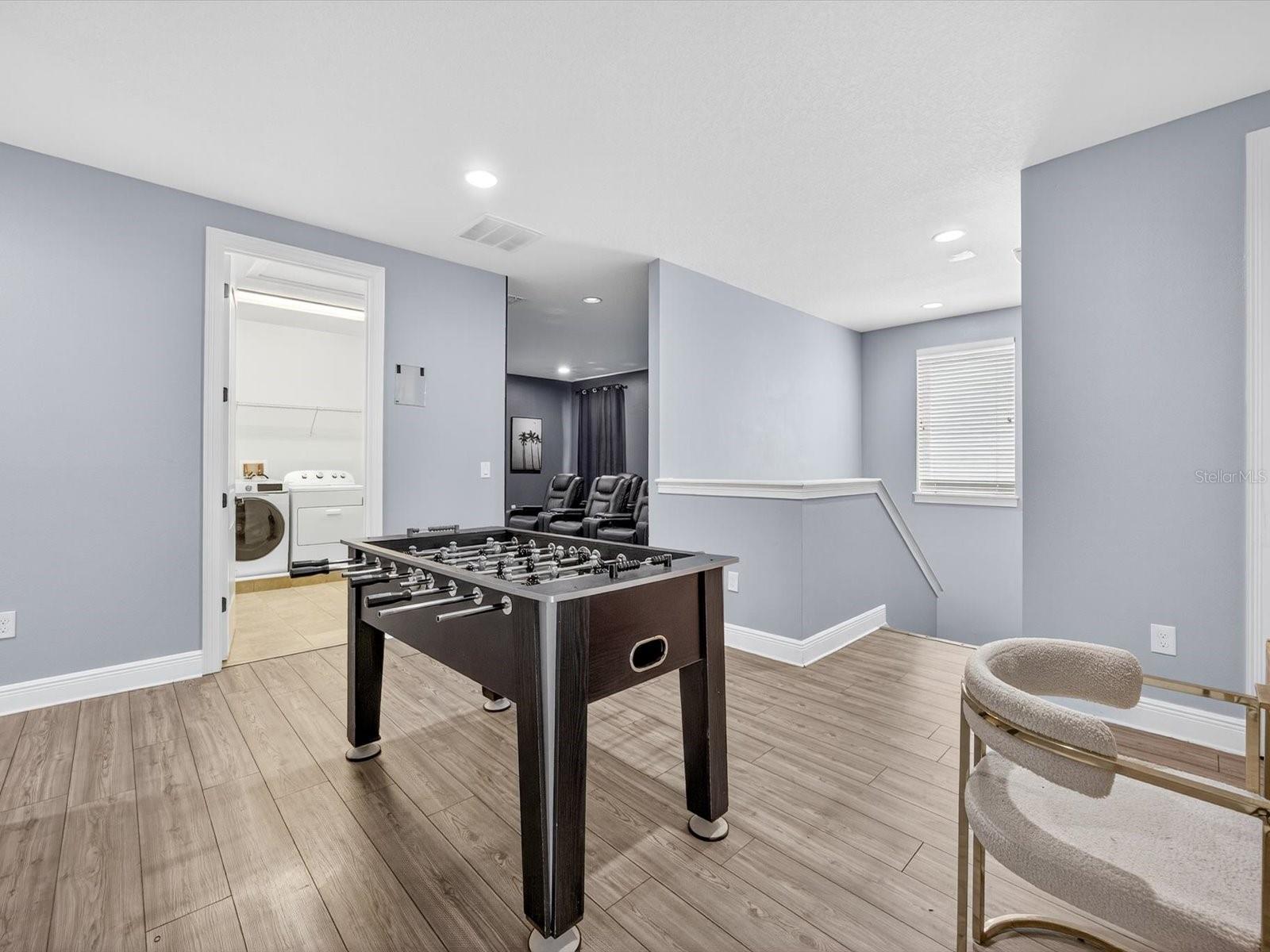 Price Reduction! Located in the gated Reunion community, this fully furnished and beautifully themed single-family home is the perfect addition to any short-term rental portfolio. Designed with both comfort and profitability in mind, every bedroom features its own attached full bathroom, maximizing guest privacy and appeal for larger rental groups. The open-concept kitchen comes equipped with granite countertops, stainless steel appliances, and flows seamlessly into the living and dining area—an ideal setup for entertaining and group gatherings. Step outside to the private pool and spa, complete with a covered lanai and no rear neighbors, offering an attractive outdoor experience for guests. Upstairs, the loft serves as an entertainment center, while the converted garage provides an additional family room for more usable living space. Full-size washer and dryer sets on both floors add extra convenience for turnovers and extended stays. Owners and guests also enjoy access to the Encore Resort at Reunion, featuring a clubhouse, water park, fitness center, playground, volleyball and basketball courts, community grills, and on-site restaurant—all of which enhance rental demand and guest satisfaction. Situated close to major theme parks, multiple golf courses, and a variety of restaurants and shops, this home has plenty to offer. With its turnkey setup, and resort-style amenities, this property is ready for investors looking for short-term rental potential or families looking for a resort-style retreat.