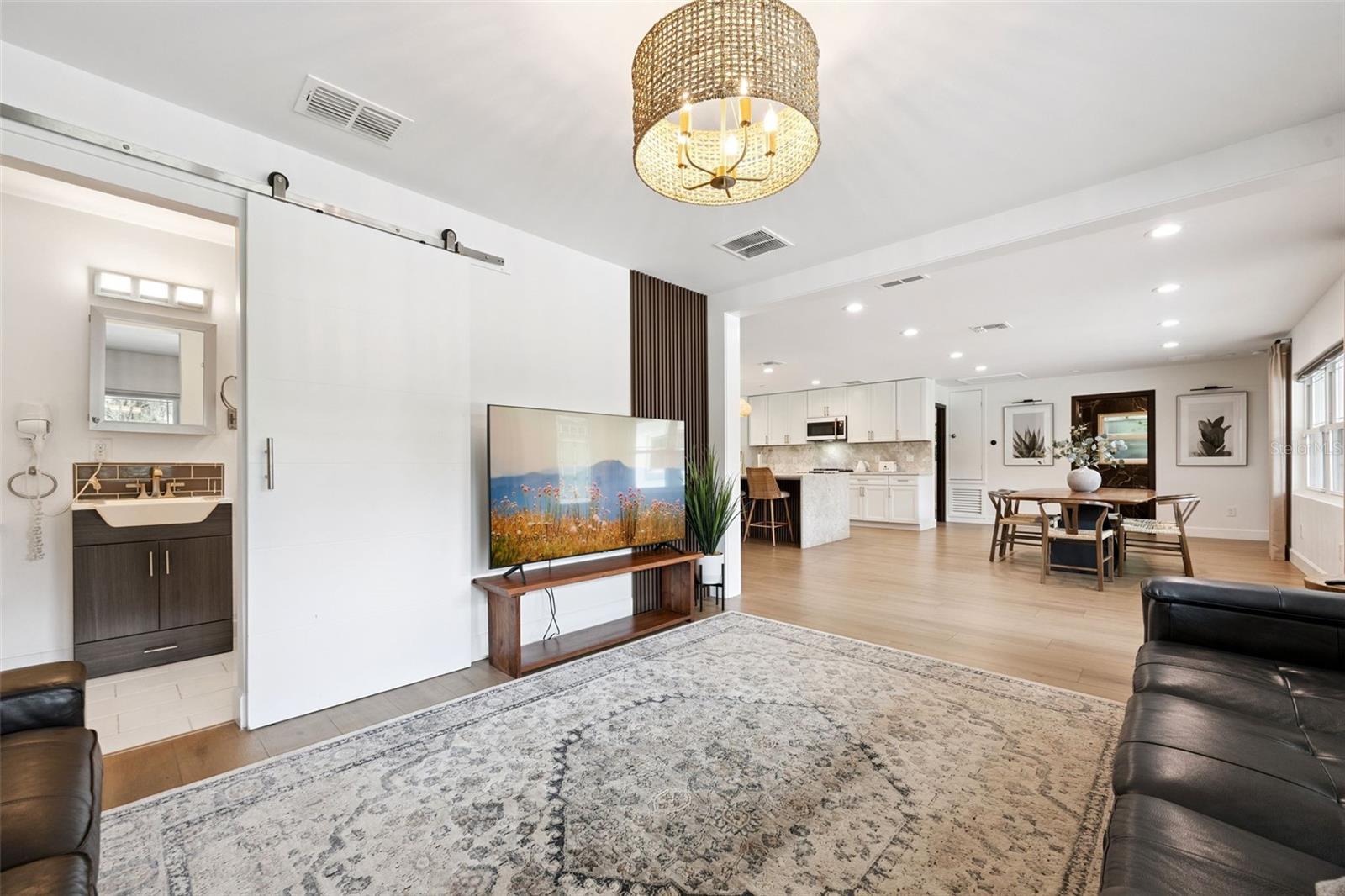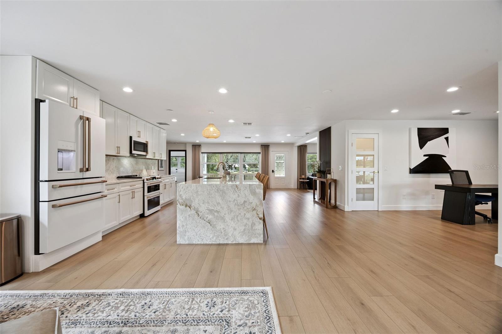 Located in the Rare Lake Avalon Rural Settlement where oversized lots and protected rural zoning create one of Winter Garden’s last truly rare, low-density communities. Welcome to this fully remodeled, modern lakefront retreat on the shores of Lake Avalon, offering the perfect balance of sophistication, privacy, and convenience. Situated on almost 1.5 acres of fenced, irrigated land, this stunning single-story home features 3 bedrooms, 3.5 baths, and approximately 2,400 sq. ft. of living space with an attached 2-car garage—all meticulously updated with high-end finishes throughout. Step inside to an open, airy floor plan filled with natural light and luxury vinyl wood flooring that flows seamlessly from room to room. The gourmet kitchen is the heart of the home, featuring a dramatic quartz waterfall island, soft-close cabinetry, elegant gold accent hardware, and premium GE Cafe Matte white kitchen appliances, all included, along with washer and dryer. The kitchen overlooks a spacious dining area and family room, perfect for entertaining or relaxing by the wood-burning fireplace while taking in serene views of the backyard and lake beyond. The primary suite is a luxurious private retreat with two walk-in closets, direct access to the back porch, and a spa-style bathroom featuring double vanities, a beautifully tiled walk-in shower, and a freestanding soaking tub. The two additional bedrooms each have their own custom; modern bathrooms designed with premium tile and fixtures. Outside, the possibilities are endless. Enjoy the peaceful setting surrounded by mature trees, a large fire pit area, and a private pathway leading to your own dock—perfect for skiing, fishing, kayaking, or simply watching the sunset over Lake Avalon. Lake Avalon is a freshwater lake of about 184 acres in size and the lake supports fish species including largemouth bass and blue catfish. The property offers ample space for a boat, RV, or multiple vehicles along the extended paved driveway, with no HOA restrictions, allowing you the freedom to add a guest house, barn, or workshop if desired. Major updates include: Roof (2021), A/C (2021), Plumbing (2019), Water Heater (2020), Windows (2019), Septic (2019 and clean out 2025), Well Pump (2025), Water Softener & Purification System (2021). The home operates on well and septic, ensuring low utility costs and self-sufficiency. Located just minutes from Historic Downtown Winter Garden, Fowler’s Grove, and Hamlin Town Center, you’ll enjoy the best of both worlds—city conveniences with a peaceful, country feel. This home truly has it all: acreage, lake access, privacy, and luxurious modern design—all move-in ready for the holidays. There’s simply nothing else like it on the market. Come experience lakefront living at its finest in one of Central Florida’s most desirable locations. Call for your private tour today!