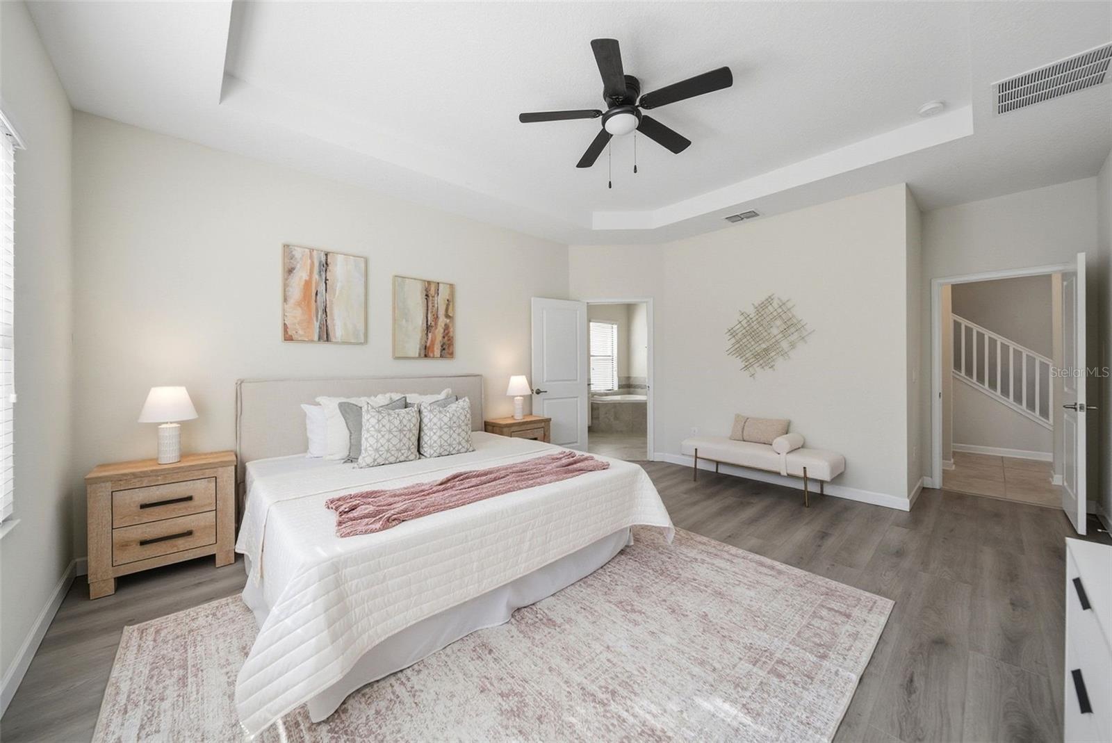 Welcome to this stunning 5-bedroom home with a spacious loft, perfectly positioned on a corner lot in the highly sought-after Summerlake community of Winter Garden. This beautifully designed residence features a bright and open floor plan, offering both comfort and functionality. At the heart of the home, the kitchen impresses with a large center island, sleek quartz countertops, stainless steel appliances (including a natural gas cooktop), and an oversized walk-in pantry—ideal for those who love to cook and entertain. The first-floor master suite provides a peaceful retreat with a full bathroom and a large walk-in closet, both recently upgraded with elegant vinyl flooring for added style and durability. A three-car tandem garage adds convenience and ample storage space. The exterior walls were just freshly painted May 2024, enhancing the home's curb appeal. With a low HOA fee, residents enjoy comprehensive maintenance services such as lawn care, fertilization, exterior pest control, and front hedge trimming. The community also offers resort-style amenities, including a pool, clubhouse, fitness center, parks, playground, zip line, and scenic walking trails. Located in the vibrant Horizon West area, this home is minutes away from top-rated schools, dining, shopping, and entertainment. Its proximity to Walt Disney World and major highways like 429 ensures easy access to all of Central Florida’s attractions. Combining luxury finishes, a prime location, and a welcoming community, this home truly has it all. Welcome to your new home in Summerlake!