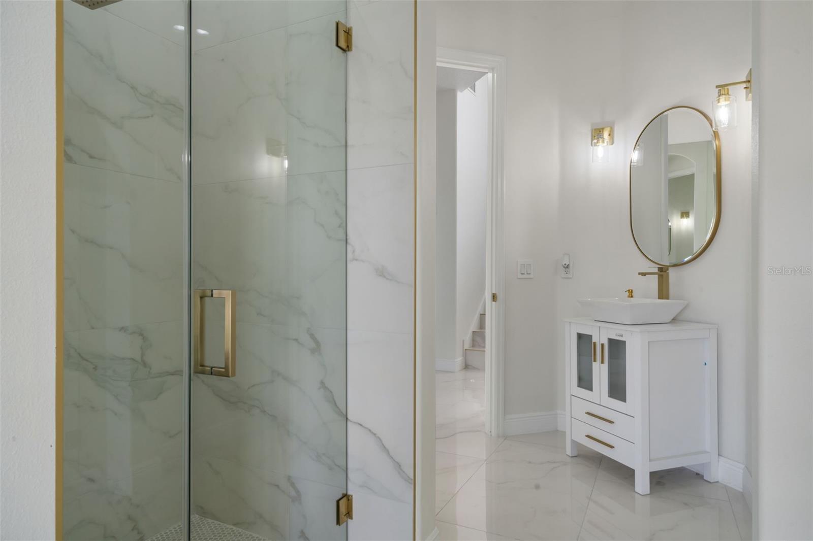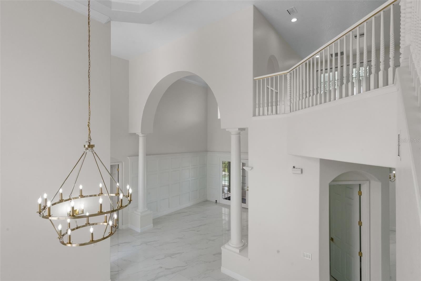 Discover luxury living at its finest in this fully renovated, never-lived-in smart home located in the prestigious Providence Golf and Country Club, one of Central Florida's most exclusive gated communities. This stunning five-bedroom, four-bathroom residence offers an impressive 4,136 sq. ft. of space, featuring a rare climate-controlled three-car garage, making it perfect for luxury vehicles, a home gym, or additional storage. Step inside to experience an elegant modern open layout adorned with premium finishes and smart appliances. The gourmet kitchen is a chef's dream, complete with a wine fridge, custom cabinetry, designer lighting, and tasteful gold accent touches. The main living area boasts soaring ceilings and an abundance of natural light, creating a warm and inviting atmosphere. Retreat to the owner's master suite, designed for relaxation, featuring a luxurious soaking tub for two, a spacious walk-in shower, dual vanities, and picturesque views of the stunning outdoor pool area. The oversized guest bathroom also includes a generous walk-in shower for added convenience. Upstairs, you'll find four well-appointed bedrooms, a open loft area with a huge balcony overlooking the backyard. A dedicated office space is conveniently located downstairs off the kitchen. Step outside to your private luxury pool, framed by palm trees and modern tile features. The deck is perfect for entertaining or unwinding, while the screened-in lanai seamlessly blends indoor and outdoor living, providing a tranquil space for year-round enjoyment and privacy. Renovations were completed in 2024, ensuring a fresh and modern experience. This home is just 3 miles from the highly-rated Davenport School of the Arts, and approximately 20-30 minutes from the magical attractions of Disney World. Enjoy the peace of mind that comes with 24-hour gated security, and take advantage of community amenities, including an 18-hole championship golf course, resort-style pools, fitness centers, tennis courts, playgrounds, nature trails, and a clubhouse with dining and social events. This property offers an unparalleled lifestyle and is an unbelievable deal for the area. Don’t miss your chance to make this luxury home your own!