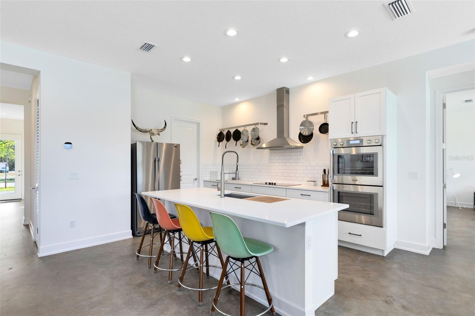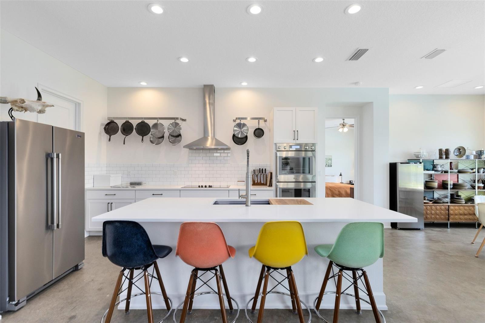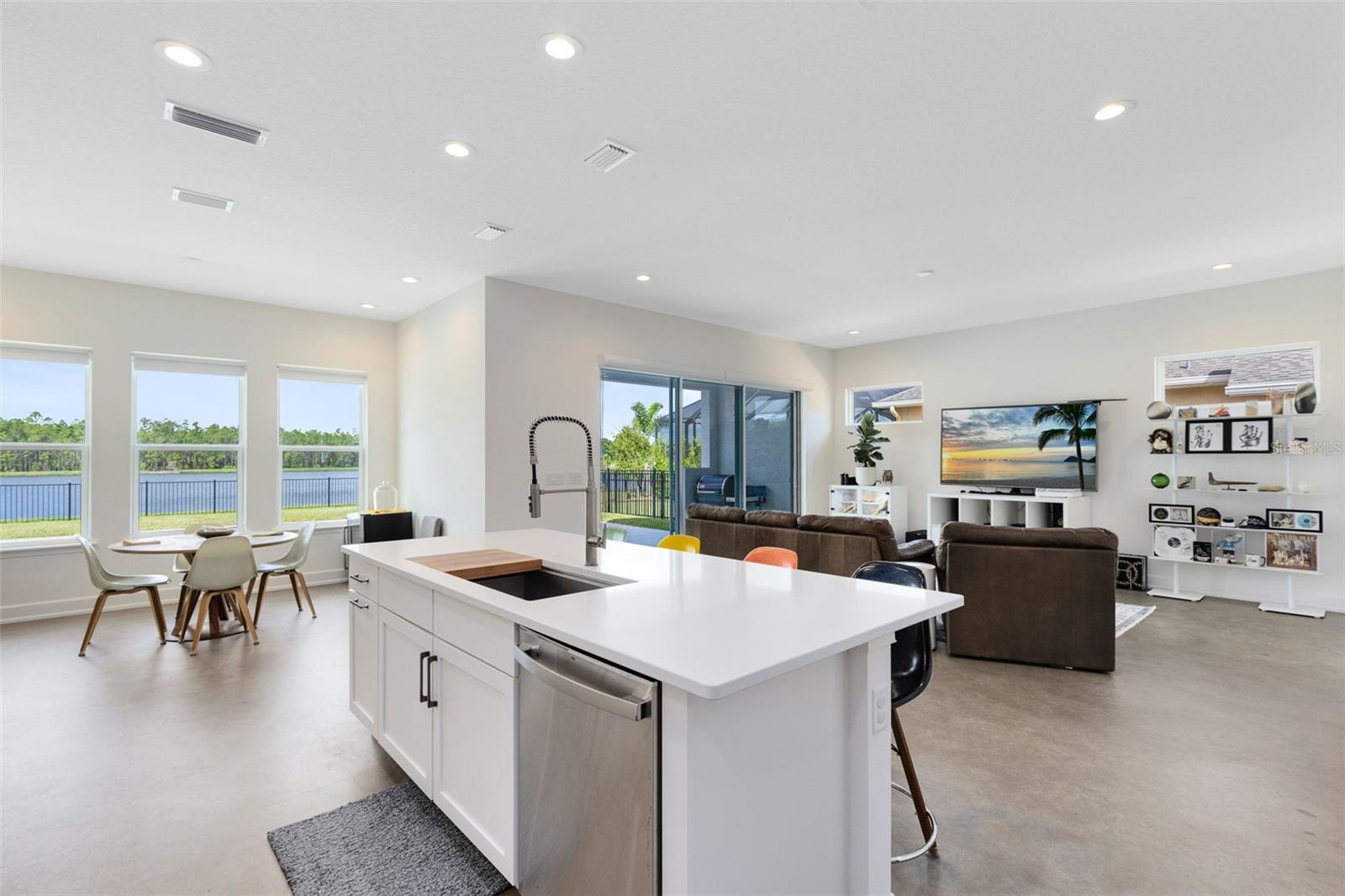 - Eat-in Kitchen, High Ceilings, Kitchen/Family Room Combo, Open Floorplan, Solid Surface Counters, Split Bedroom, Walk-In Closet(s), Window Treatments