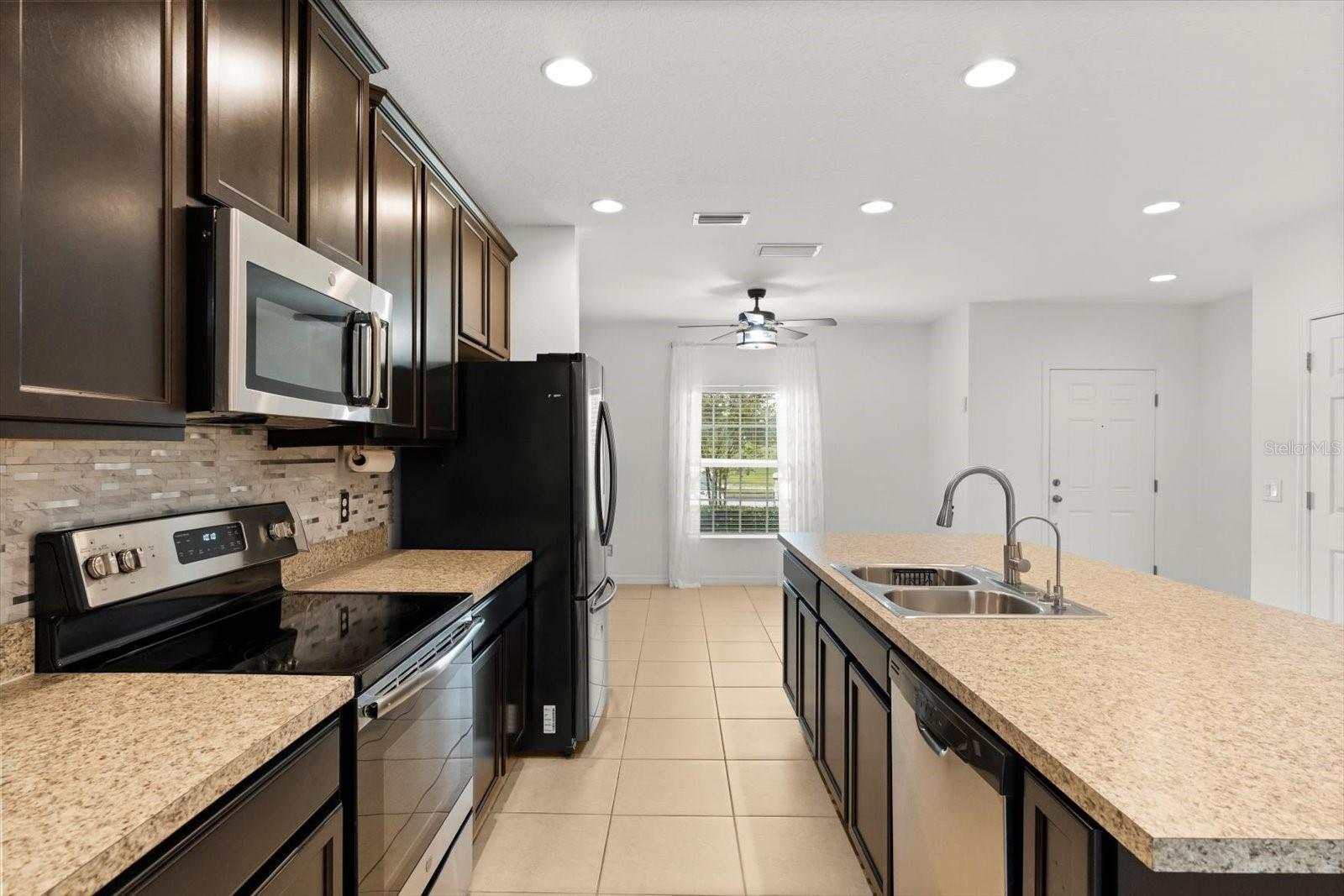 - Ceiling Fans(s), Kitchen/Family Room Combo, Open Floorplan, Solid Wood Cabinets, Thermostat