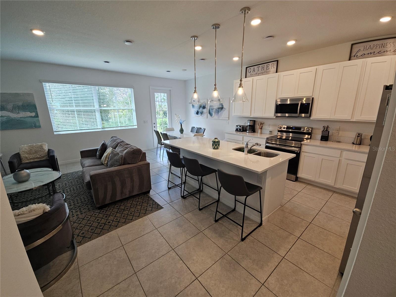 Enjoy the comfort and convenience of this beautiful, fully furnished, renovated, and well-maintained townhome located in the desirable Festiva community. This spacious 3-bedroom, 2.5 bathroom unit is move-in ready and thoughtfully designed for comfortable living. It features an open-concept layout with a kitchen overlooking a combined living and dining area, ideal for entertaining. Quality furnishings throughout the home include a spacious master suite with a walk-in closet and private bathroom with dual sinks and a walk-in shower. Guest bedrooms are comfortably furnished and versatile for guests or as a home office. Tenant is responsible for water, electricity, and internet. Festiva's resort-style amenities include a sparkling community pool with a splash pad, miniature golf, a fully equipped fitness center, a fun-filled game room, and a charming ice cream shop. Location: Conveniently located in Davenport, close to shopping, restaurants, attractions, and easy access to I-4. Whether you're relocating or simply looking for a carefree living experience, this townhome has everything you need. Just bring your suitcase and settle in!