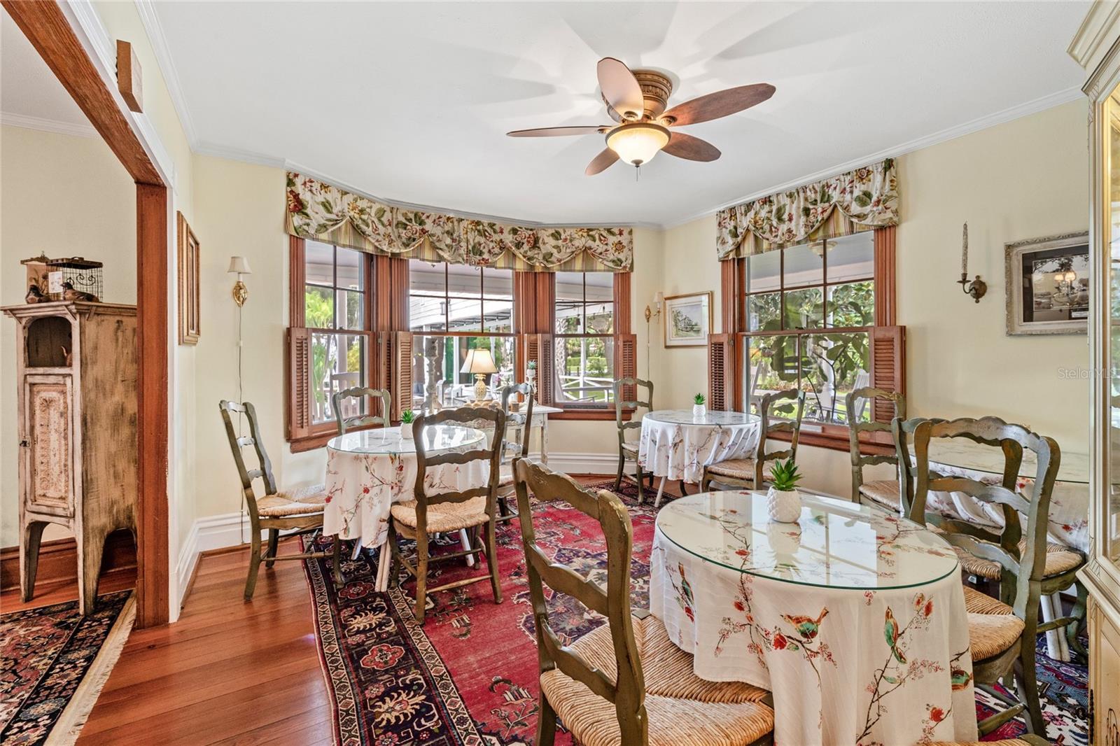 Welcome to your opportunity to continue the tradition as an admired bed and breakfast, or write your own story as a private family estate only steps from historic Downtown Mount Dora. The historic William Watt House, circa 1906, is currently operating as the Grandview Bed and Breakfast. This residence has been meticulously cared for, and all of the original features have been preserved throughout the residence. A large and inviting front porch, built with Cypress Wood from the local mill, welcomes you into the 3-bedroom, 3-full bathroom and 1-half bathroom main home. Original yellow heart pine floors, custom millwork, built-in bookcases, and two fireplaces, one being a Tiger Oak fireplace, creates a warm and inviting ambiance. The remodeled kitchen features historically inspired cabinetry, spacious countertops, and upgraded stainless steel appliances. The dining room overlooks the wrap around porch into the pool and extended patio area, which is ideal for entertaining and additional outdoor living. Upstairs, you will discover more of the historic charm, such as original light fixtures and cedar closets. The bedrooms offer beautiful views of the oversized pool and patio area, as well as incredible sunset views. Beyond the main residence, the brick paver patio leads to the 2-bedroom, 2-bathroom Windmill Cottage, a cherished Mount Dora landmark with Juniper white cedar vaulted ceilings, French doors, and bamboo floors. The Windmill’s 1930’s original frame remains intact, serving as both a nostalgic centerpiece and a unique architectural detail that you cannot find anywhere else. The Carriage House, built in 1996, adds exceptional flexibility with a ground-level guest suite with its own private entrance. Additionally, the upstairs of the Carriage house features a bedroom, living room, full kitchen and full bathroom, all with original bamboo flooring. This space is ideal as the Owner’s Quarters, or serves as an additional space for multi-generational living within a family estate. This building features a 3-car garage, and is steps away from the large outdoor parking area tucked behind the long driveway. Arches, and charming outdoor spaces create an ideal setting for relaxation or grand-scale entertaining, all situated courtyard style around the private saltwater pool. Just a short stroll from Downtown Mount Dora’s boutiques, restaurants, galleries, parks, and Lake Dora, this property captures the essence of history and all of the characteristics that make Mount Dora special. Offered turn-key furnished in the Main Home and the Windmill Cottage, this is an extraordinary opportunity to own one of Mount Dora’s most admired historic homes. In addition to its unique location in Mount Dora, known as the #1 festival city in all of the United States, The Grandview is also located only 45 minutes from Disney, Universal Studios, Seaworld, The Airport and The City of Orlando. This property is unique, because it is zoned for both commercial and residential. Call today to schedule a private tour.