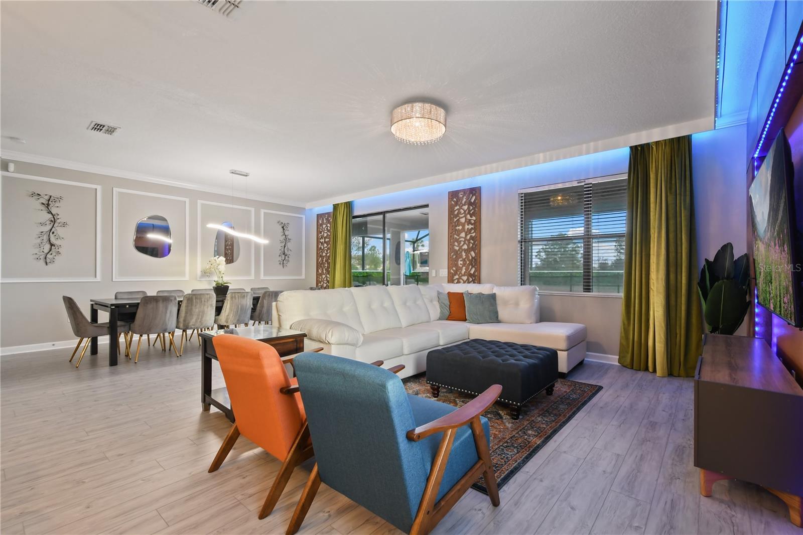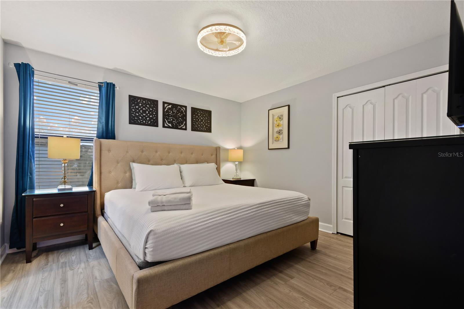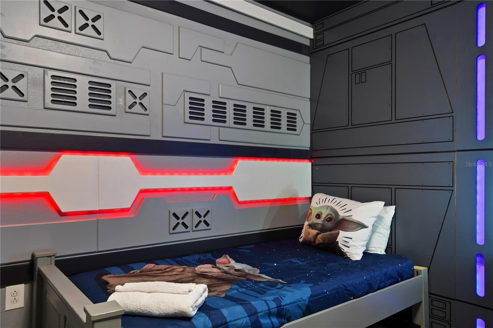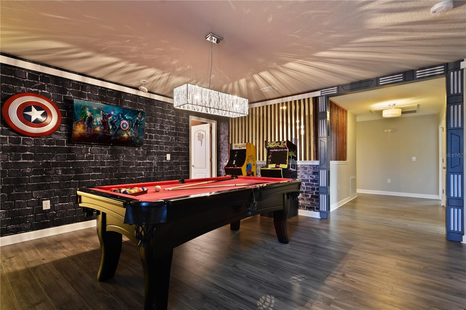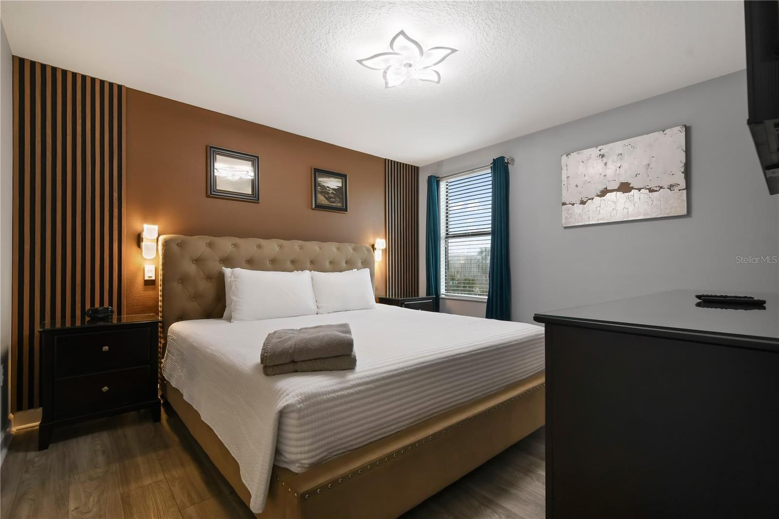 Welcome to your dream vacation home in ChampionsGate Resort—one of Central Florida’s most sought-after gated communities. This luxurious 8-bedroom, 5-bath villa was fully renovated in November 2022 and shines with elegant finishes, modern comforts, and an unbeatable location—just a short walk to the Oasis Clubhouse, yet offering complete backyard privacy with no rear neighbors. Step inside to discover brand-new luxury vinyl flooring (installed in 2024) throughout (except in the bathrooms which feature tile, and carpet in the theater room) , two new AC systems installed in 2022, and a custom Avatar-themed theatre room that turns every movie night into an unforgettable experience. On the main floor, you’ll find a spacious primary suite and an additional guest bedroom, perfect for multi-generational stays. Upstairs, a large loft has been converted into a vibrant game room, while each bedroom is generously sized and uniquely themed to delight guests of all ages—featuring Star Wars, Frozen, Harry Potter and Mickey Mouse designs. Designed for both comfort and performance, this property is being offered fully furnished and turn-key ready, making it an excellent choice for a second home or successful short-term rental investment. The open-concept floor plan seamlessly connects the expansive living area to a chef-inspired kitchen with stainless steel appliances, quartz countertops, and direct access to the screened-in private pool and spa overlooking peaceful open views. Residents and guests enjoy access to the world-class ChampionsGate Oasis Clubhouse, featuring a lazy river, water slides, fitness center, restaurant & bar, movie theatre, and golf course access—all just minutes from your door. Whether you’re searching for a profitable investment or a personal luxury retreat near Disney, this home checks every box.