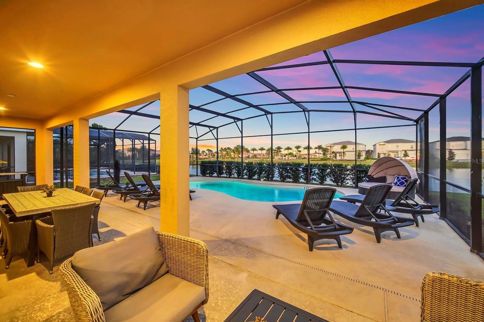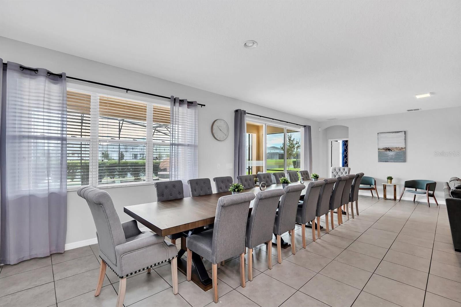 Step into SOLTERRA ESCAPE, a show-stopping 15-bedroom, 12-bathroom estate with a PRIVATE POOL and LAKE VIEWS in the exclusive gated community of Solterra Resort! Over $200k of Upgrades Invested into the Property! High Functioning STR with Magical Vacation Homes! This fully furnished, turn-key home combines elegance, comfort, and high-end entertainment with its EPIC GAME ROOMS, perfect as a private retreat or a top-performing short-term rental investment. Property Highlights Include: Expansive 7,000 sq. ft. floor plan designed for large families or vacation groups, Open-concept living area with a grand dining table for 18 and breakfast bar seating, Chef’s kitchen featuring granite counters, stainless steel appliances, and custom cabinetry, Private screened-in pool with tranquil lake views, covered lanai, loungers, and outdoor dining, Two first-floor king master suites plus 12 additional themed bedrooms, including Lego, Disney, and adventure-inspired designs everyone will adore, Arcade & theater combo room with NBA Hoops, Terminator, Pac-Man, and 12 recliners for movie nights, Upstairs entertainment loft with poker table, pool table, shuffleboard, dry bar, and lounge seating, Lego-themed playroom with twisting slide and creative build area, Two laundry rooms, ensuring convenience for large groups. Turnkey and rental-ready, offered fully furnished and professionally decorated! Enjoy the resort lifestyle every day with Solterra’s world-class amenities: Resort pool with lazy river & water slide, Clubhouse with café & fitness center, Tennis courts, playground, and 24-hour gated security. Ideally situated near Disney, Universal, shopping, and dining, this property blends luxury and proximity—making it a guest favorite and a proven income-producing vacation home. Whether you’re expanding your investment portfolio or creating a family haven, Solterra Escape offers unparalleled space, resort-style luxury, and entertainment that keeps guests returning year after year.