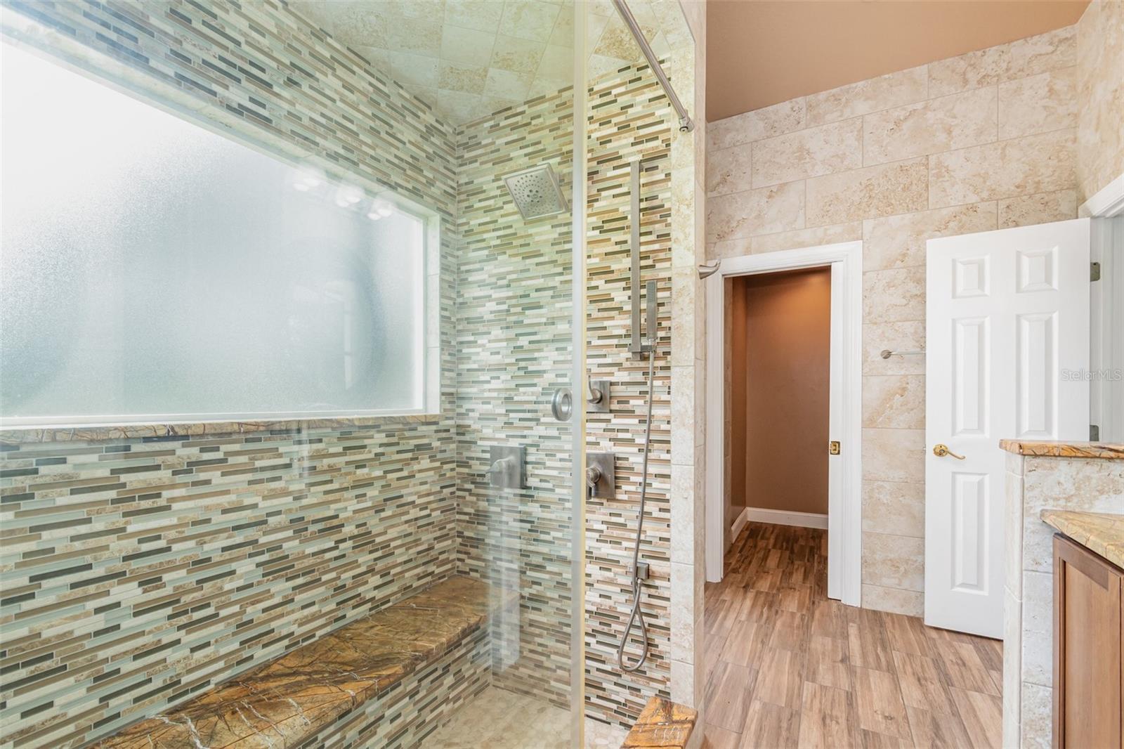 - Built-in Features, Ceiling Fans(s), Crown Molding, Eat-in Kitchen, High Ceilings, Primary Bedroom Main Floor, Stone Counters, Thermostat, Walk-In Closet(s), Window Treatments