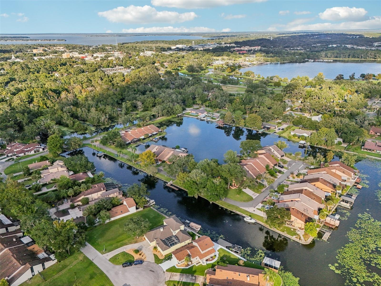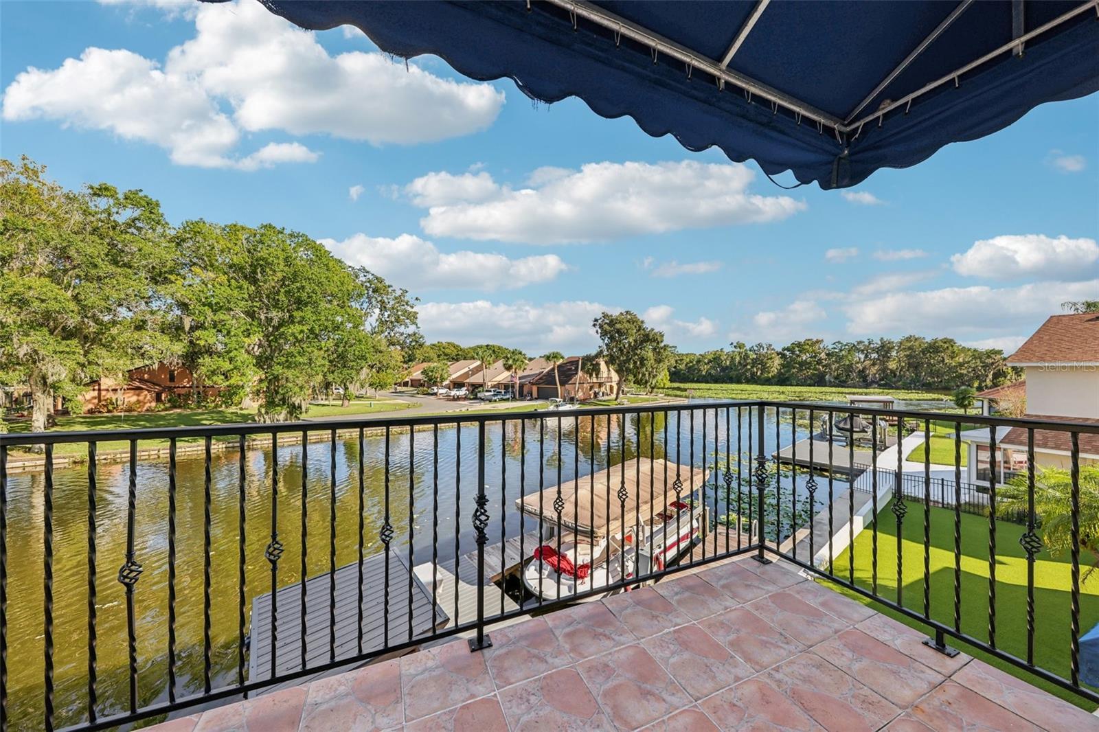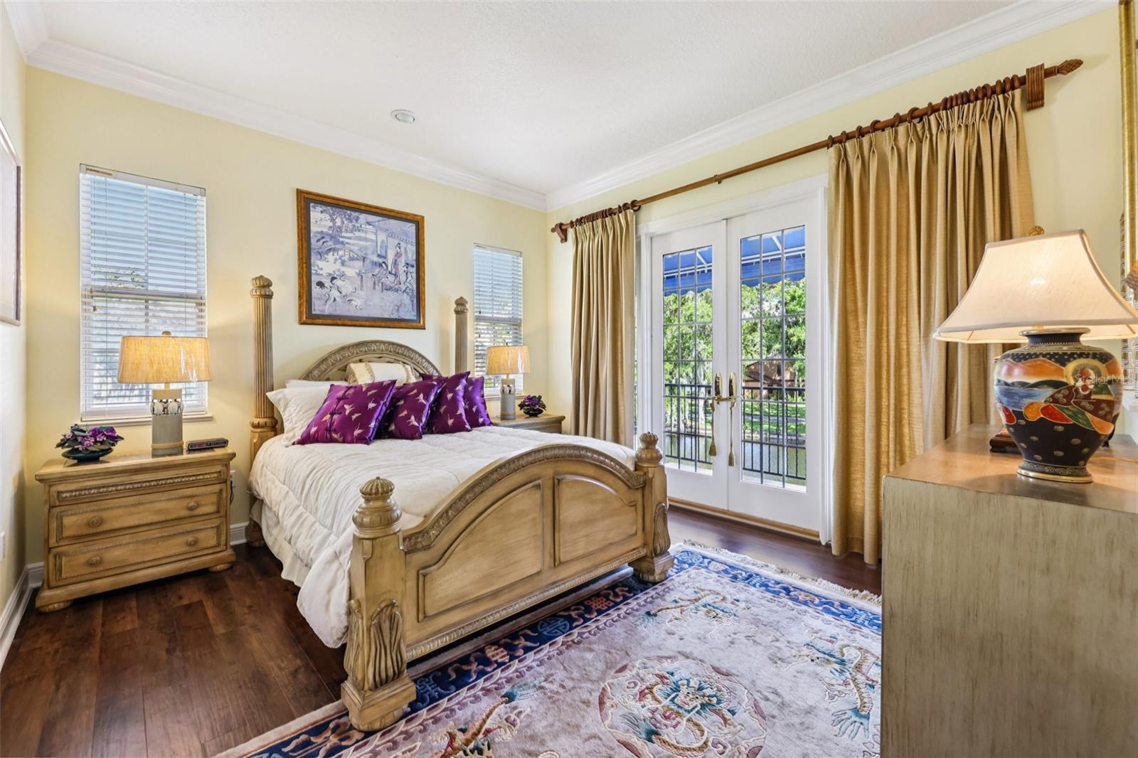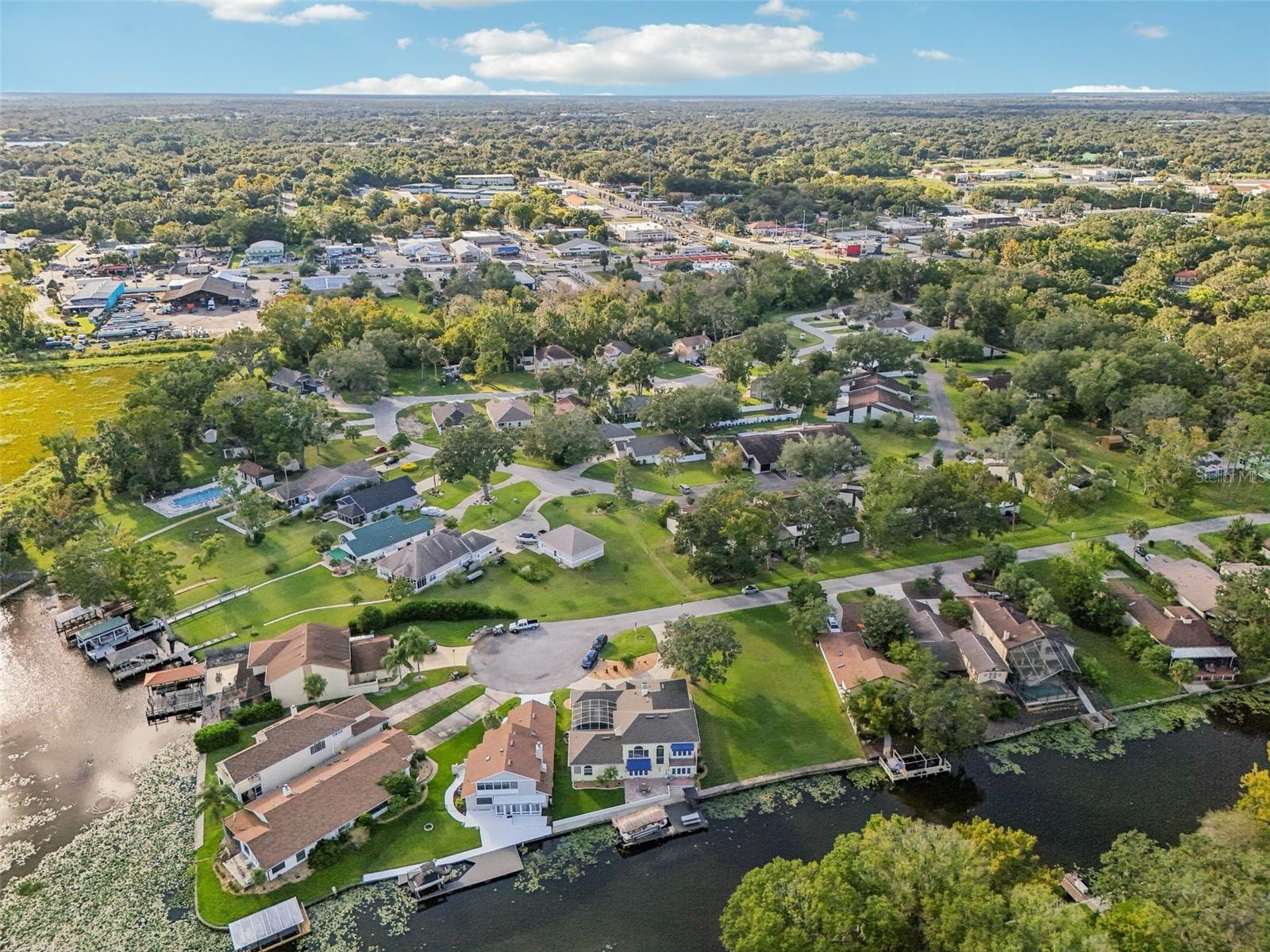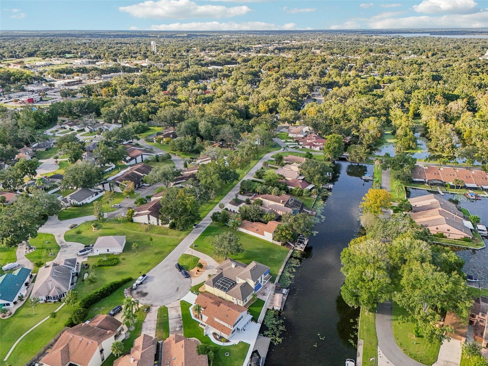 Exceptional opportunity to own a spacious waterfront retreat on a quiet cul-de-sac with NO HOA. Located on a wide canal - you have direct access to Big Lake Harris and the Harris Chain of Lakes. This 4-bedroom, 3.5-bathroom home boasts 3,296 sq ft of living space and a 2-car garage. Step inside to be greeted by soaring ceilings, hardwood floors, and natural light streaming through large windows. The seamless, flowing layout offers incredible water views from almost every room. The main level features spacious living areas, including a family room has a gas fireplace with panoramic water vistas and a cozy living room with direct pool access. The kitchen comes complete with Corian countertops, custom cabinetry, bar seating and breakfast nook. Enjoy memorable meals in the formal dining room with its captivating waterfront backdrop. The main-floor primary suite offers poolside views, two large walk-in closets, and an en-suite bathroom featuring dual vanities, a separate shower, and a jetted tub with a water view. Upstairs, the second and third bedrooms are connected with a jack and jill en-suite bath, each with a large walk-in closet. The front bedroom offers a balcony with amazing water views. A separate first floor casita provides the fourth bedroom and full bath—perfect for a private home office or guest suite. Enjoy the Florida sunshine by your private pool, featuring a built-in gas grill area. The backyard has been opened up to allow for sweeping water views. Enjoy peace of mind with Major Updates including NEW ROOF 2019 - Seawall Reinforced 2025 - Both AC Units NEW 2025 - Water Heater 2021 - Freshly painted inside - Professionally Installed Astroturf added in the backyard - Concrete sealed - Dock updated in 2023 - New pool pump - New dishwasher. Truly an unbeatable location- cruise by boat with ease to waterfront restaurants, local boutiques, and festivals while also having easy access to highways, shopping, schools, dining and more. Schedule a tour to see this beautiful waterfront home in person today!