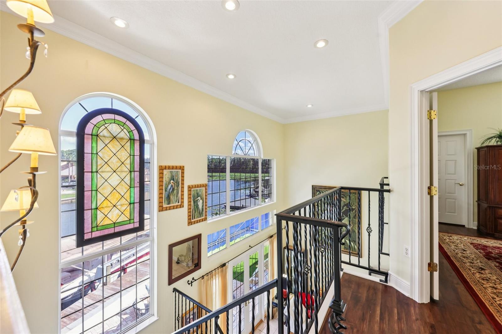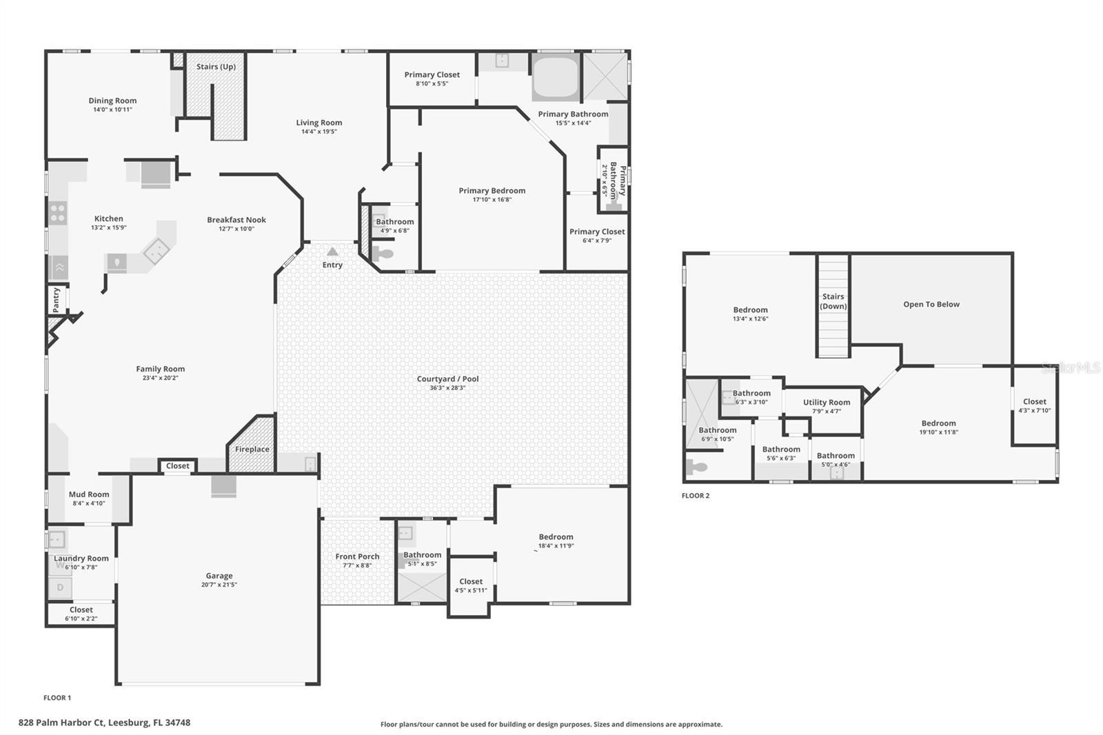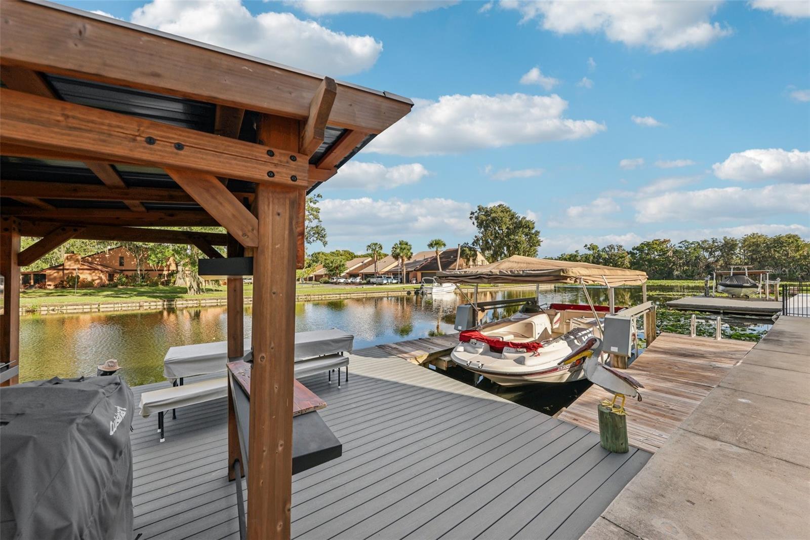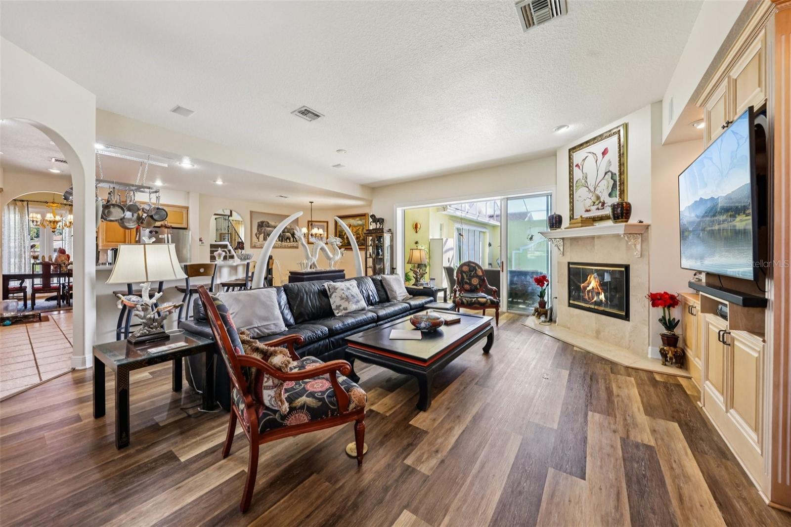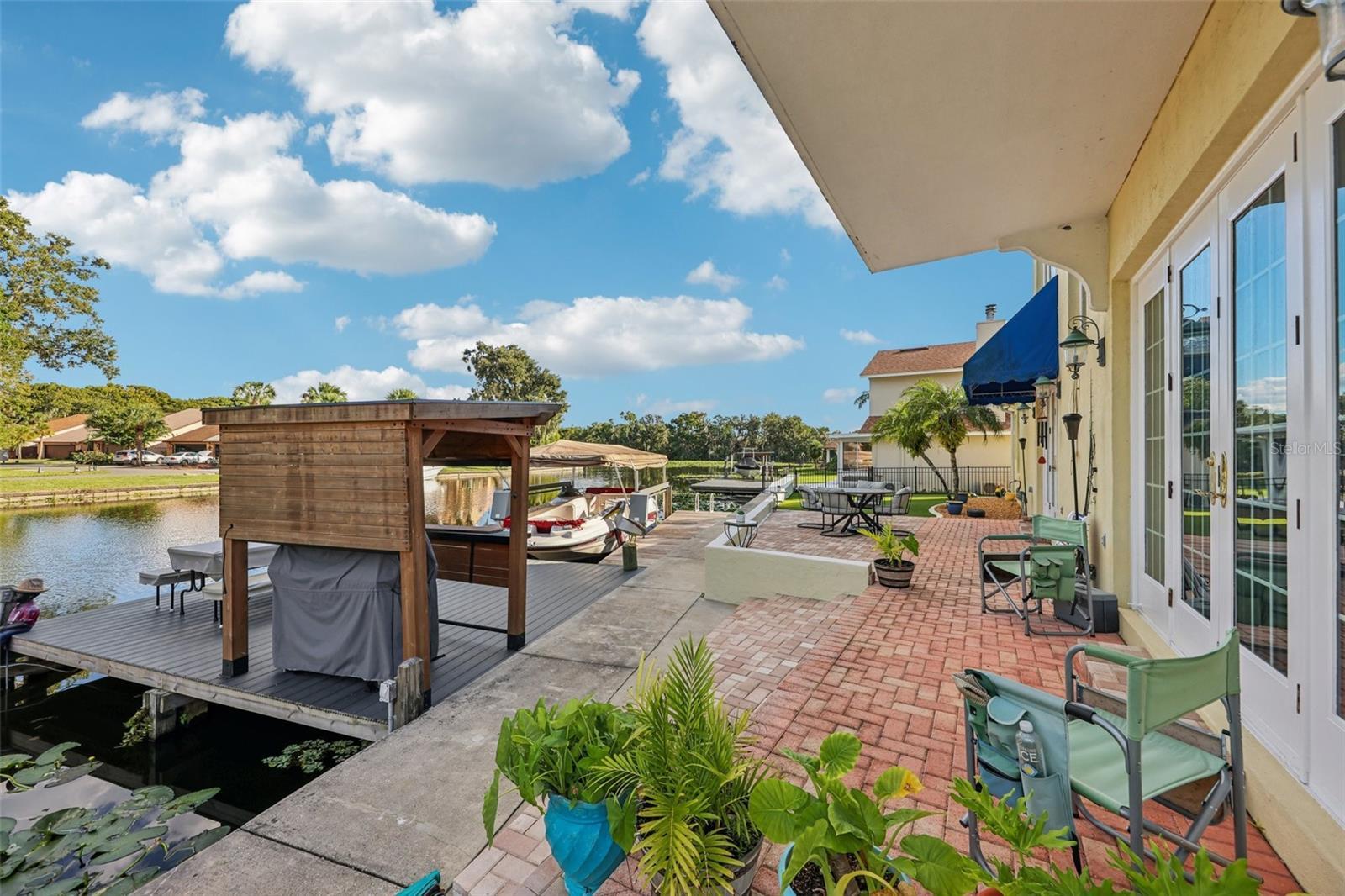 Exceptional opportunity to own a spacious waterfront retreat on a quiet cul-de-sac with NO HOA. Located on a wide canal - you have direct access to Big Lake Harris and the Harris Chain of Lakes. This 4-bedroom, 3.5-bathroom home boasts 3,296 sq ft of living space and a 2-car garage. Step inside to be greeted by soaring ceilings, hardwood floors, and natural light streaming through large windows. The seamless, flowing layout offers incredible water views from almost every room. The main level features spacious living areas, including a family room has a gas fireplace with panoramic water vistas and a cozy living room with direct pool access. The kitchen comes complete with Corian countertops, custom cabinetry, bar seating and breakfast nook. Enjoy memorable meals in the formal dining room with its captivating waterfront backdrop. The main-floor primary suite offers poolside views, two large walk-in closets, and an en-suite bathroom featuring dual vanities, a separate shower, and a jetted tub with a water view. Upstairs, the second and third bedrooms are connected with a jack and jill en-suite bath, each with a large walk-in closet. The front bedroom offers a balcony with amazing water views. A separate first floor casita provides the fourth bedroom and full bath—perfect for a private home office or guest suite. Enjoy the Florida sunshine by your private pool, featuring a built-in gas grill area. The backyard has been opened up to allow for sweeping water views. Enjoy peace of mind with Major Updates including NEW ROOF 2019 - Seawall Reinforced 2025 - Both AC Units NEW 2025 - Water Heater 2021 - Freshly painted inside - Professionally Installed Astroturf added in the backyard - Concrete sealed - Dock updated in 2023 - New pool pump - New dishwasher. Truly an unbeatable location- cruise by boat with ease to waterfront restaurants, local boutiques, and festivals while also having easy access to highways, shopping, schools, dining and more. Schedule a tour to see this beautiful waterfront home in person today!