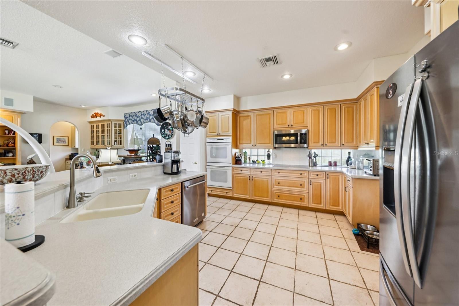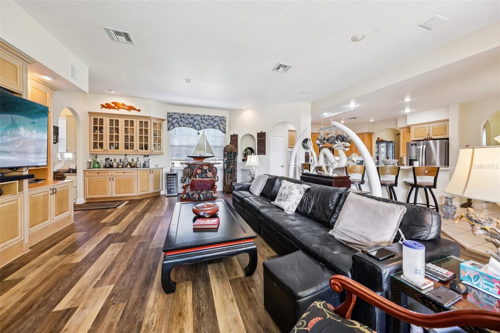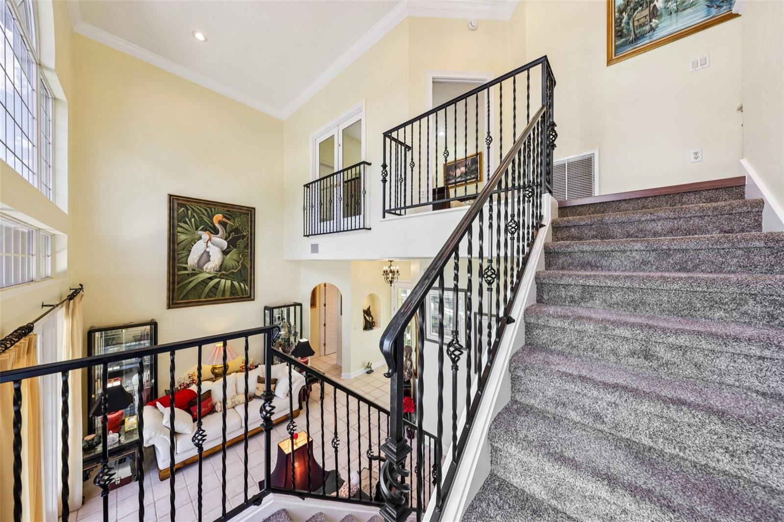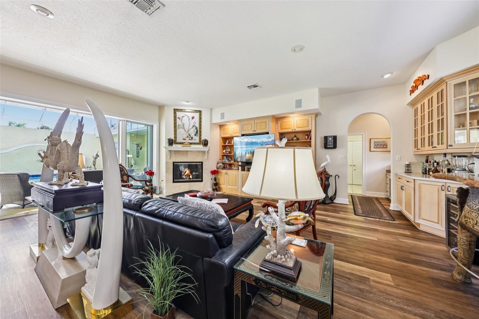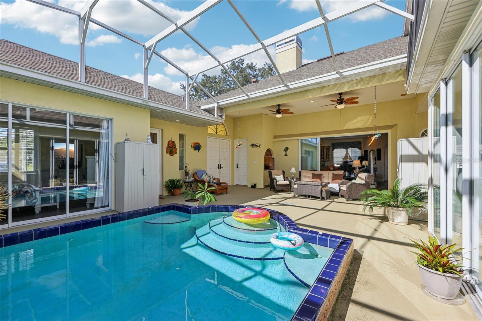 Exceptional opportunity to own a spacious waterfront retreat on a quiet cul-de-sac with NO HOA. Located on a wide canal - you have direct access to Big Lake Harris and the Harris Chain of Lakes. This 4-bedroom, 3.5-bathroom home boasts 3,296 sq ft of living space and a 2-car garage. Step inside to be greeted by soaring ceilings, hardwood floors, and natural light streaming through large windows. The seamless, flowing layout offers incredible water views from almost every room. The main level features spacious living areas, including a family room has a gas fireplace with panoramic water vistas and a cozy living room with direct pool access. The kitchen comes complete with Corian countertops, custom cabinetry, bar seating and breakfast nook. Enjoy memorable meals in the formal dining room with its captivating waterfront backdrop. The main-floor primary suite offers poolside views, two large walk-in closets, and an en-suite bathroom featuring dual vanities, a separate shower, and a jetted tub with a water view. Upstairs, the second and third bedrooms are connected with a jack and jill en-suite bath, each with a large walk-in closet. The front bedroom offers a balcony with amazing water views. A separate first floor casita provides the fourth bedroom and full bath—perfect for a private home office or guest suite. Enjoy the Florida sunshine by your private pool, featuring a built-in gas grill area. The backyard has been opened up to allow for sweeping water views. Enjoy peace of mind with Major Updates including NEW ROOF 2019 - Seawall Reinforced 2025 - Both AC Units NEW 2025 - Water Heater 2021 - Freshly painted inside - Professionally Installed Astroturf added in the backyard - Concrete sealed - Dock updated in 2023 - New pool pump - New dishwasher. Truly an unbeatable location- cruise by boat with ease to waterfront restaurants, local boutiques, and festivals while also having easy access to highways, shopping, schools, dining and more. Schedule a tour to see this beautiful waterfront home in person today!
