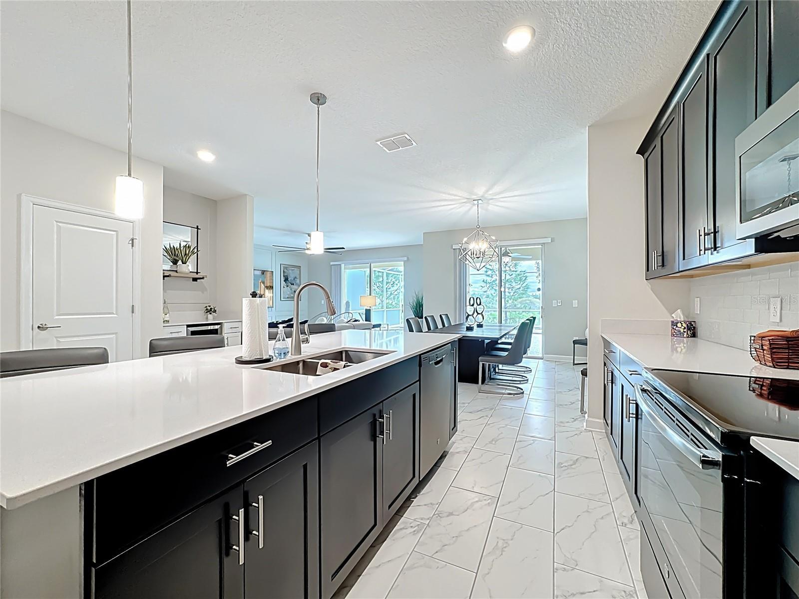 - Eat-in Kitchen, Kitchen/Family Room Combo, Open Floorplan, Solid Surface Counters, Window Treatments