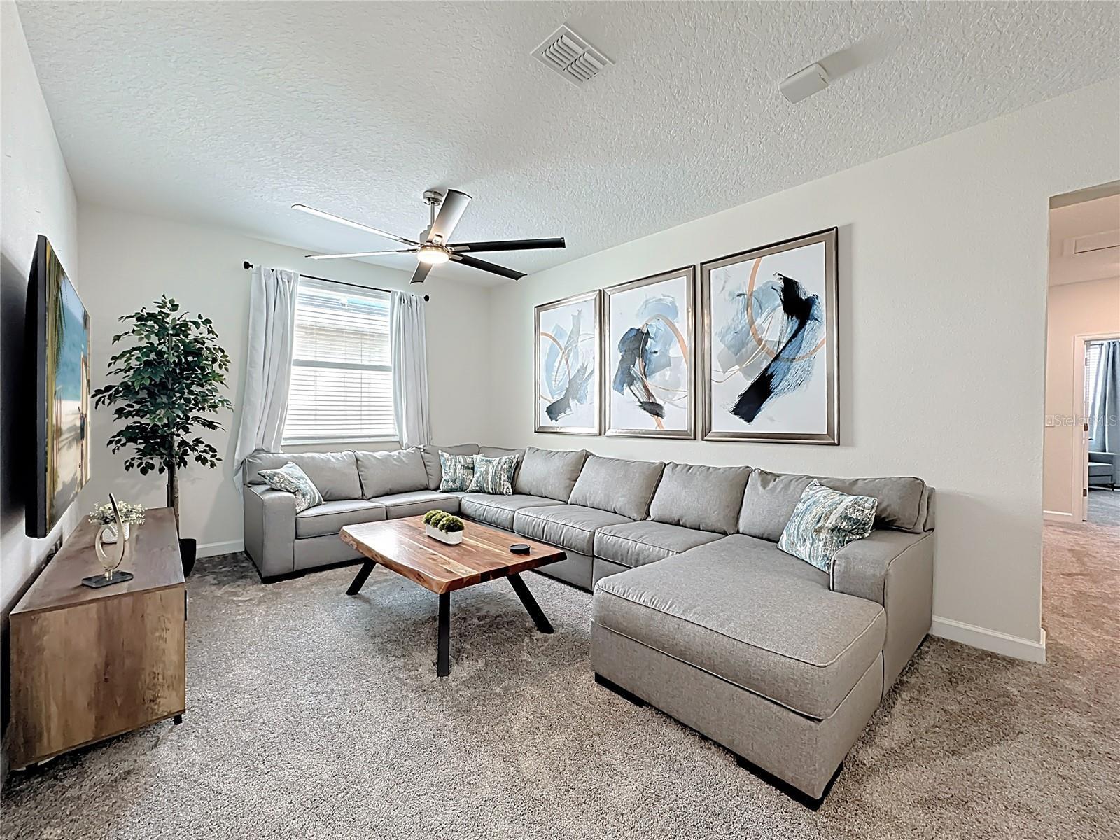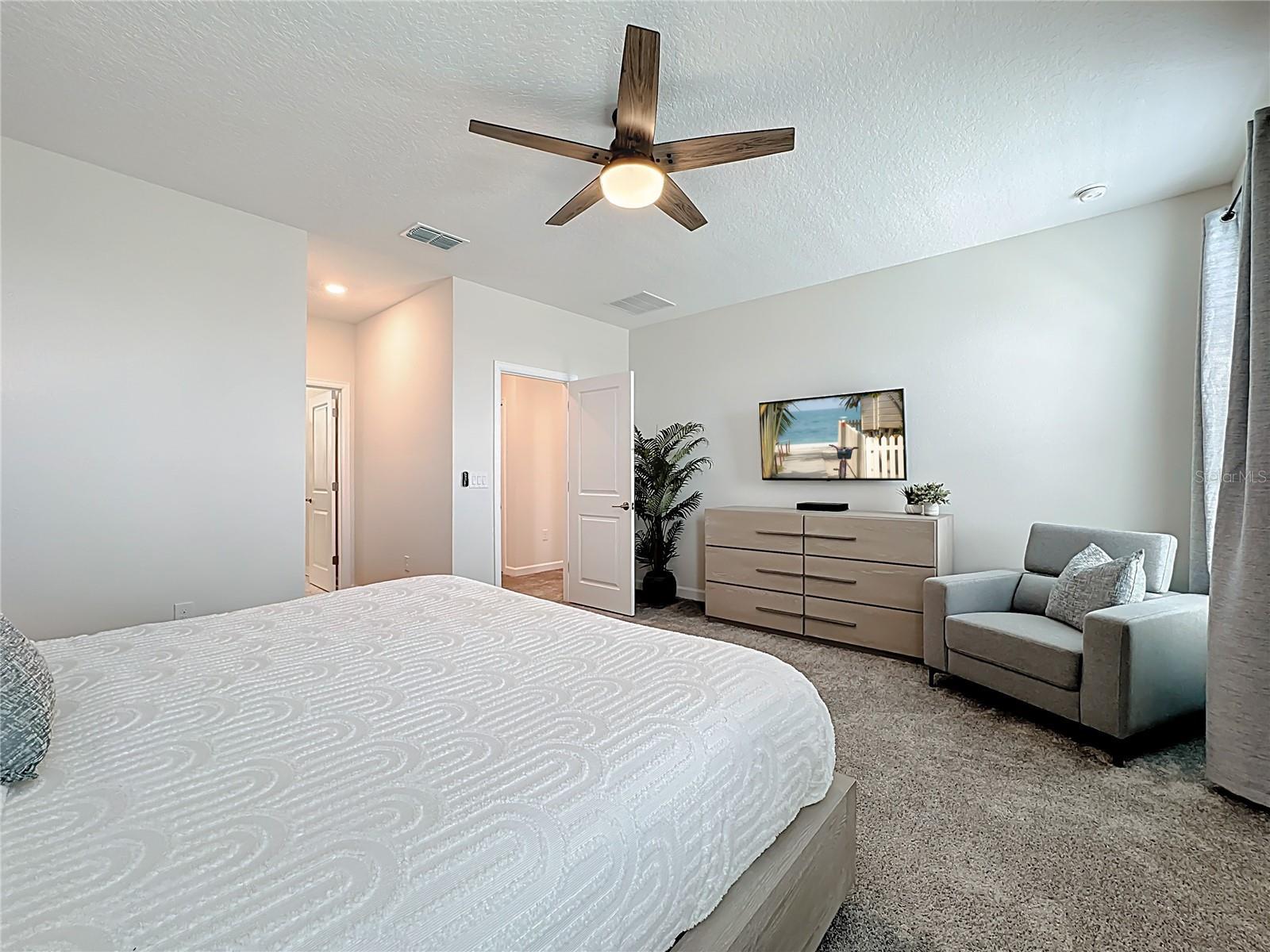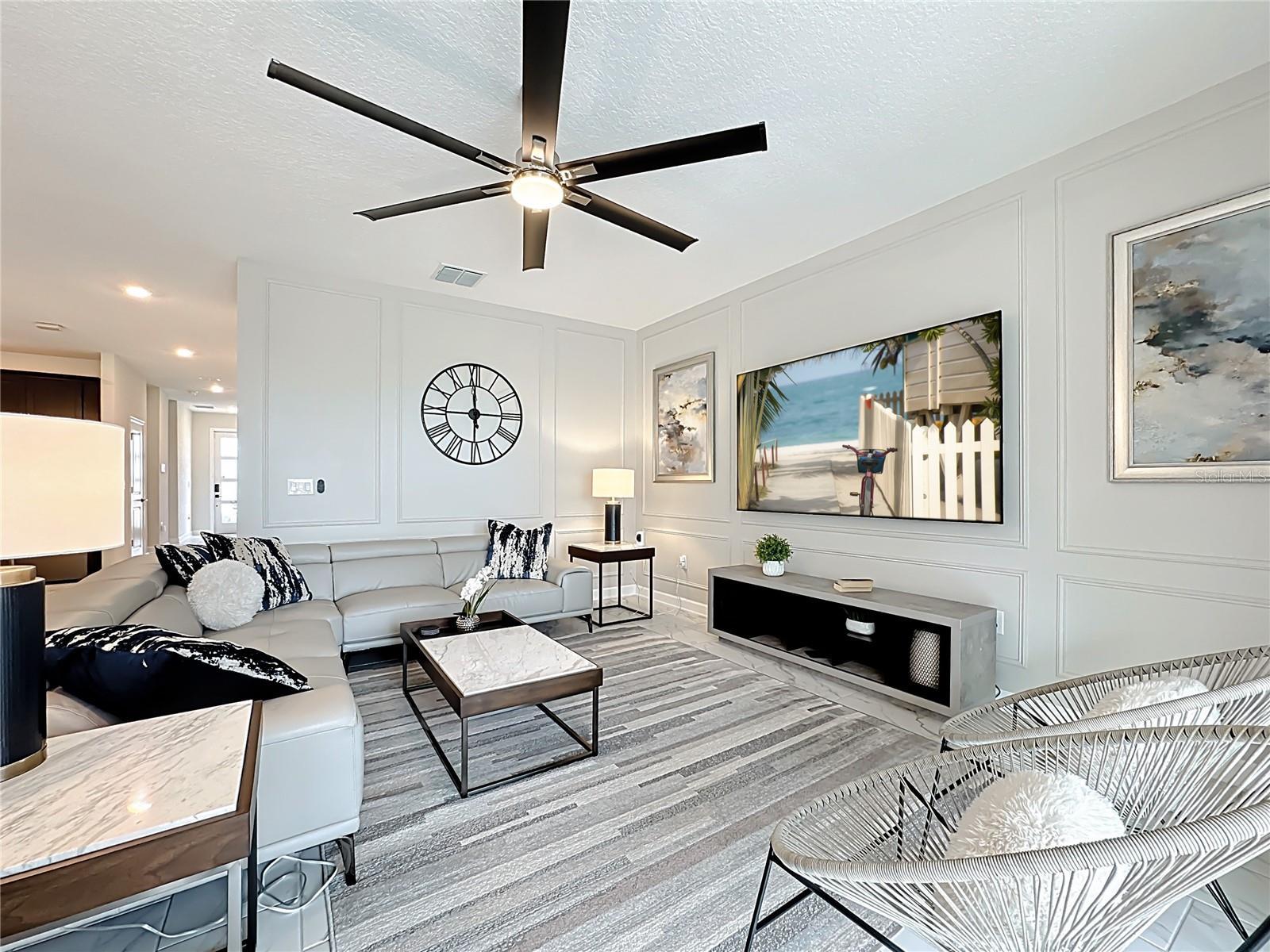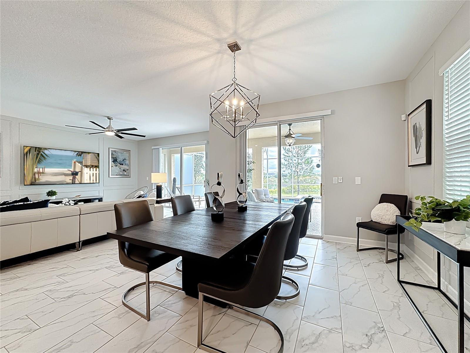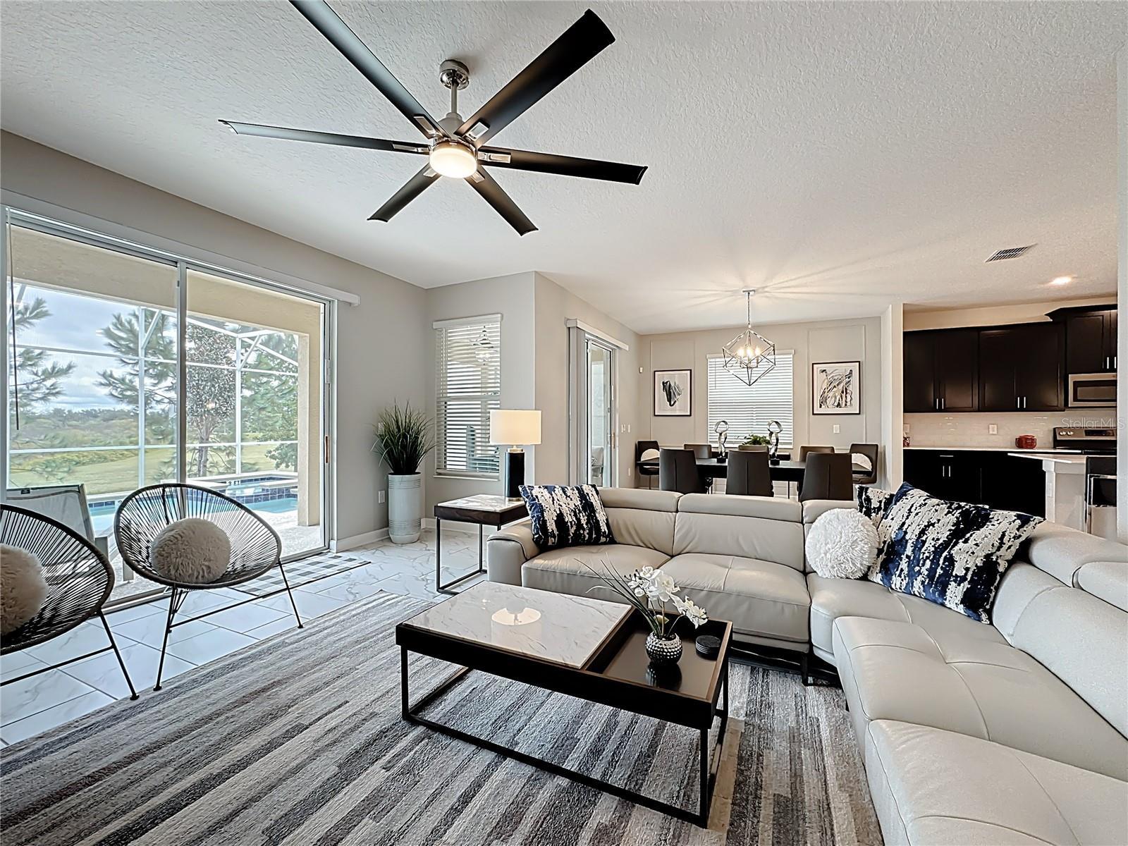Experience prime luxury living in Champions Gate Resort with this turnkey sanctuary located in the highly coveted Luxury Resort community. Enjoy unparalleled access to major theme parks, dining, shopping, and major roadways, plus a 16,000 sq ft clubhouse and an array of resort amenities right at your doorstep. This home comes fully furnished in a sleek, modern aesthetic and features a private backyard that backs up to a tranquil pond, providing added privacy as you soak up the Florida sunshine. Boasting 3,291 sq ft of living space, it offers 6 bedrooms and 5 baths, an ideal layout for large families, groups, or short-term rental guests seeking space and comfort. The bright, open design welcomes you with a generous living area and a dedicated dining space, perfect for entertaining or family gatherings. The chef-ready kitchen is equipped with stainless steel appliances, an island, pendant lighting, and abundant prep and storage space. Upstairs, a large loft provides versatility for a theater room or extra living space, while the tranquil master suite features a spacious bedroom and a bath with a double vanity, garden tub, and a separate walk-in shower. Outside, you can swim in the pool or relax on the screened lanai, making the most of Florida’s sunny days. Currently used as a second home, this property is zoned for short-term rental as well. In addition to the private, pond-adjacent setting, residents gain access to Champions Gate’s world-class amenities, including pools, a lazy river, waterslides, golf, a fitness center, a splash pad, tennis, basketball, a theater, a game room, and 24-hour guard-gated security. Its superb location is minutes from theme parks and major roads, ensuring convenient access to all the action. This property stands out for its privacy, turnkey convenience, a versatile 6-bedroom layout with a flexible upstairs loft, STR zoning, and unrivaled resort amenities in a premier community.