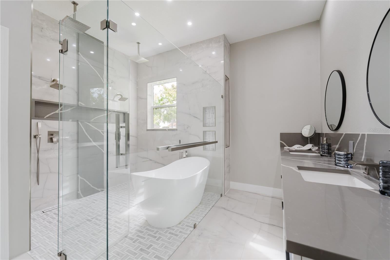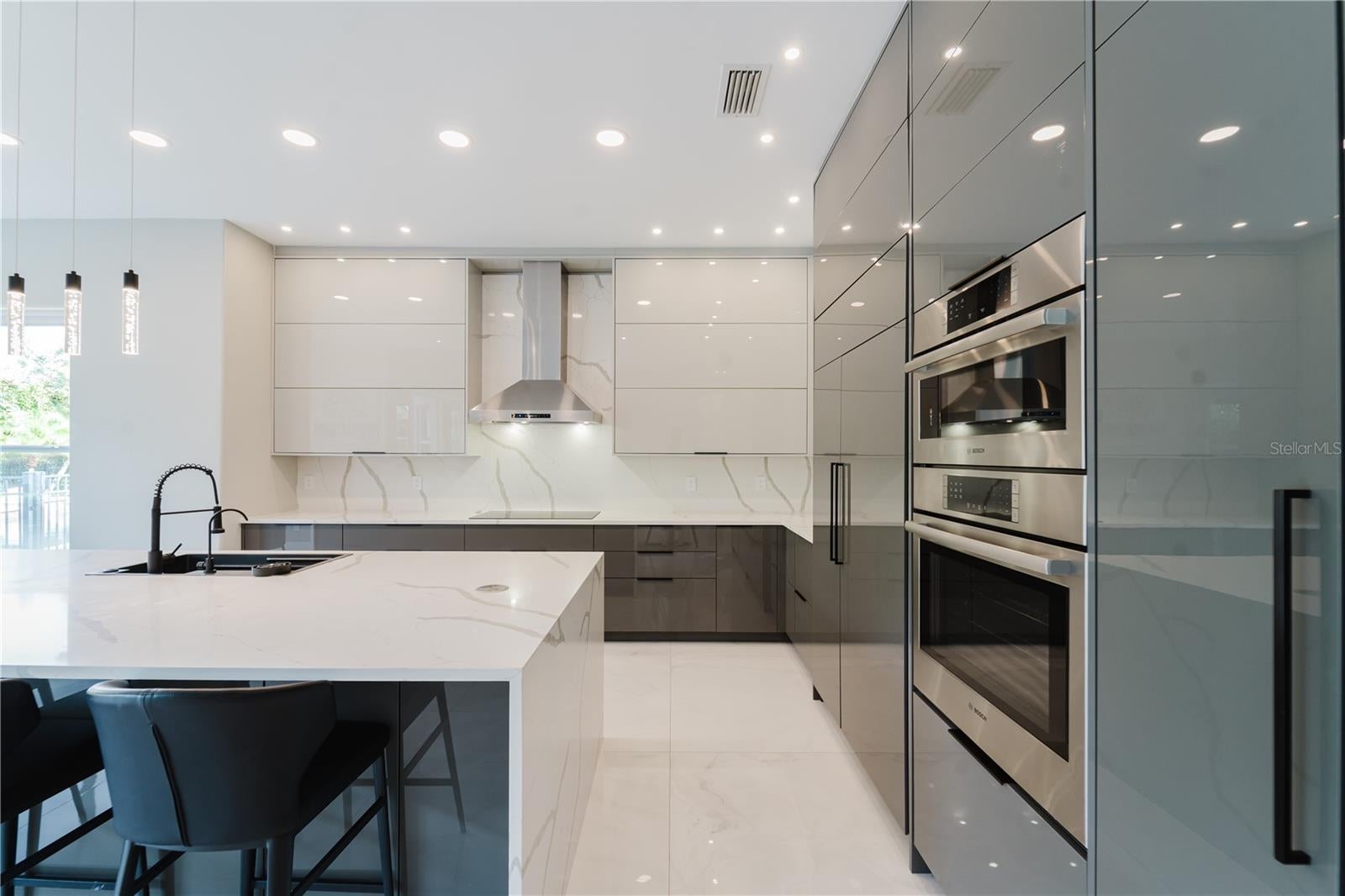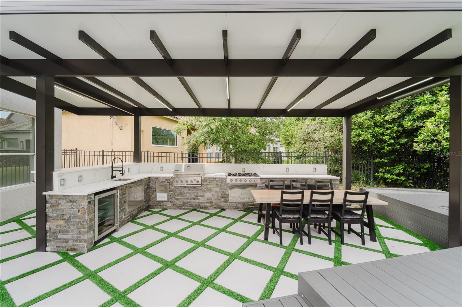 Stunning residence with a private fenced backyard, located in the highly sought-after gated community of Belmere in Windermere, just minutes from the town center. Featuring 4 bedrooms, 4 bathrooms, and approximately 2,800 sq. ft. of air-conditioned living space, this home immediately captivates with its elegant Mediterranean architecture and lush tropical landscaping. Fully renovated this year, the home features new flooring, a kitchen, bathrooms, and both interior and exterior paint, perfectly combining technology, comfort, and sophistication. The integrated sound system extends throughout the house, while the gourmet kitchen impresses with a ceramic range, built-in refrigerator, quartz countertops, and LED lighting. Motorized cabinets, a built-in oven and microwave, a large pantry, and a sink with a glass washer complete this space designed for culinary enthusiasts. Also, a state-of-the-art whole-house water filtration system is installed at the main water line, treating all the water that enters the house. A newly constructed deck is ready for the installation of an oversized jacuzzi, with all plumbing already in place. Additional features such as touch-activated LED stair lighting and vitrified epoxy-coated garage flooring further elevate the living experience. The home offers spacious, bright, and contemporary living areas. The family room, filled with natural light, opens directly to the outdoor area, creating a seamless connection between indoor and garden spaces. The expansive and elegant kitchen serves as the heart of the home, ideal for family gatherings around the central island. The master suite is a true private retreat, offering serene garden views and a luxurious bathroom featuring a soaking tub, the perfect spot to unwind after a long day. The outdoor area provides a tranquil and inviting setting, ideal for family gatherings or moments of peace surrounded by nature. The outdoor kitchen also provides a 6-burner gas stove, gas grill, sink, and a mini refrigerator.