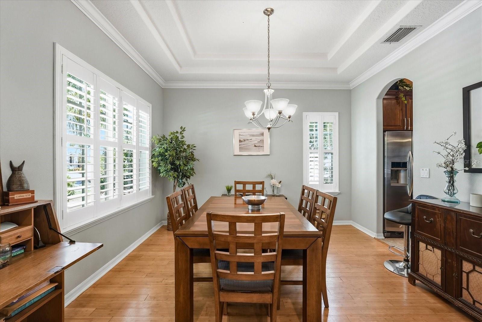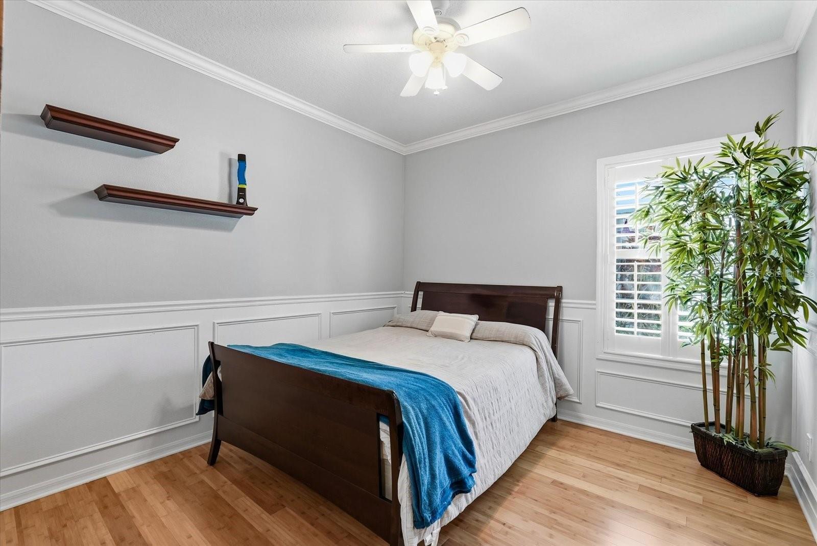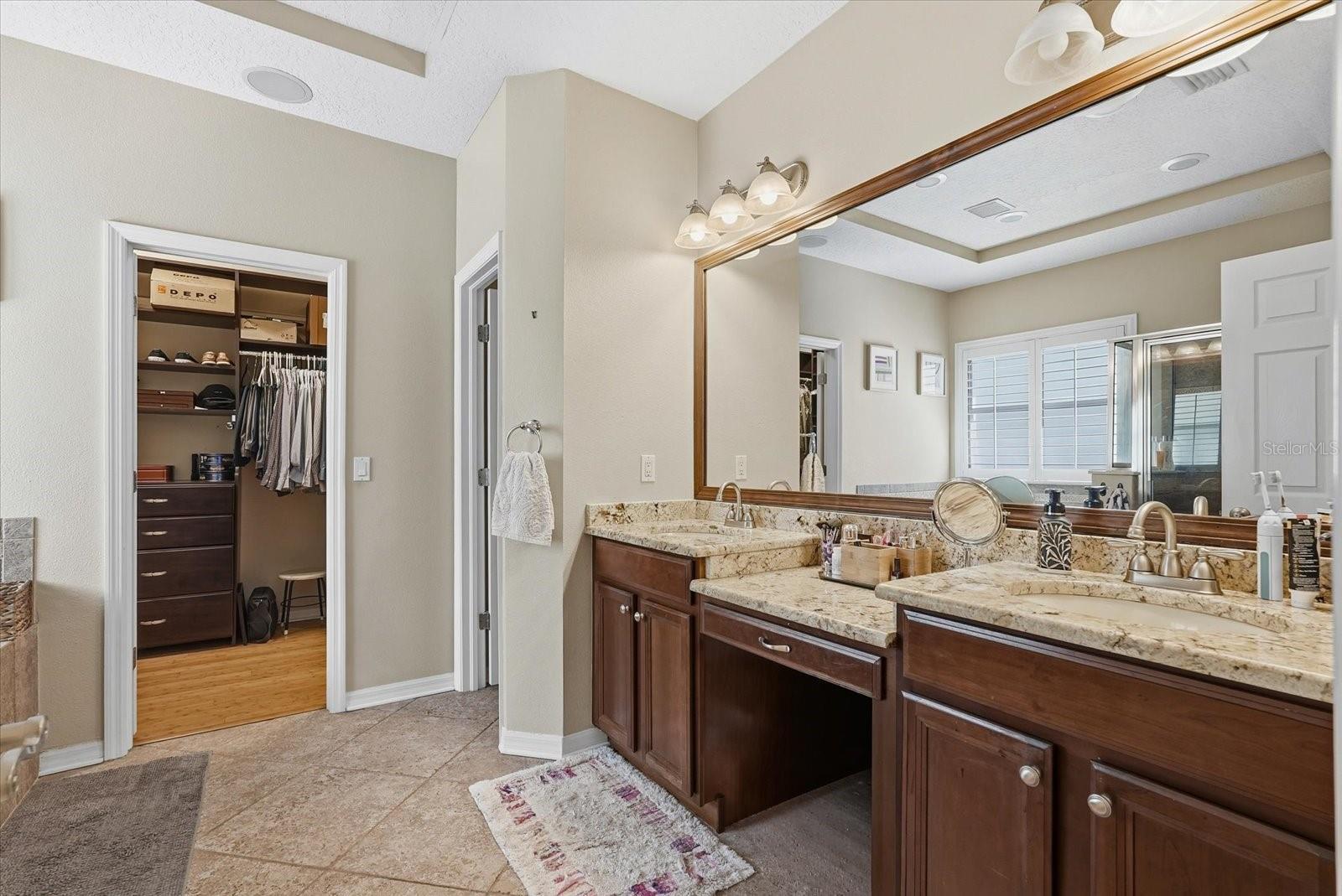 - Ceiling Fans(s), Crown Molding, Eat-in Kitchen, Primary Bedroom Main Floor, Solid Wood Cabinets, Stone Counters, Tray Ceiling(s), Walk-In Closet(s)