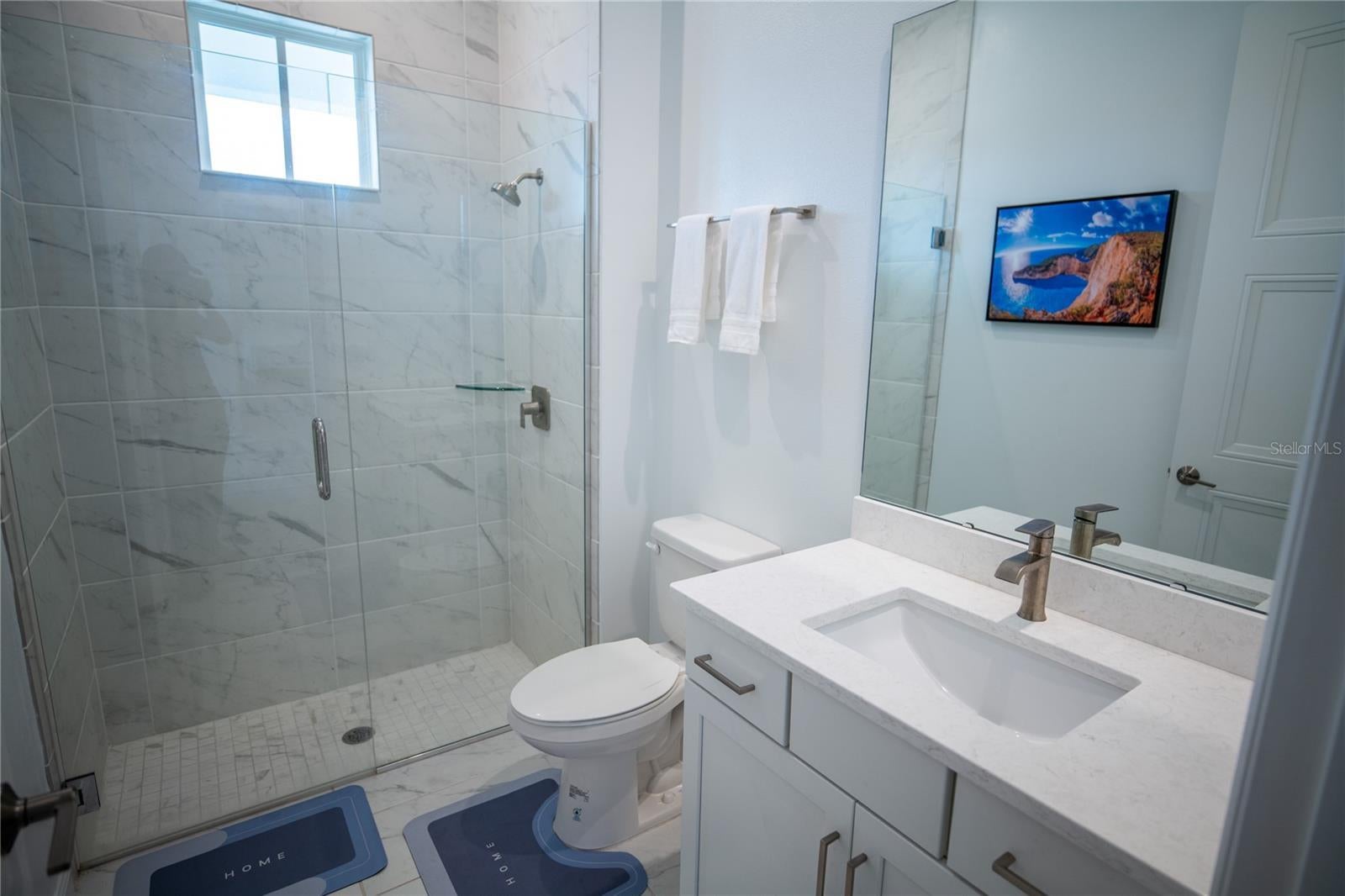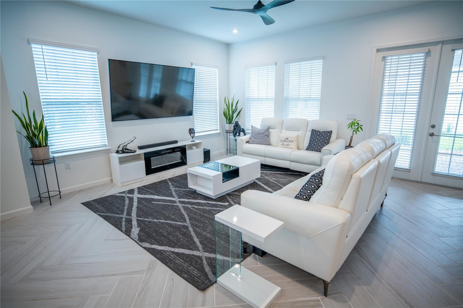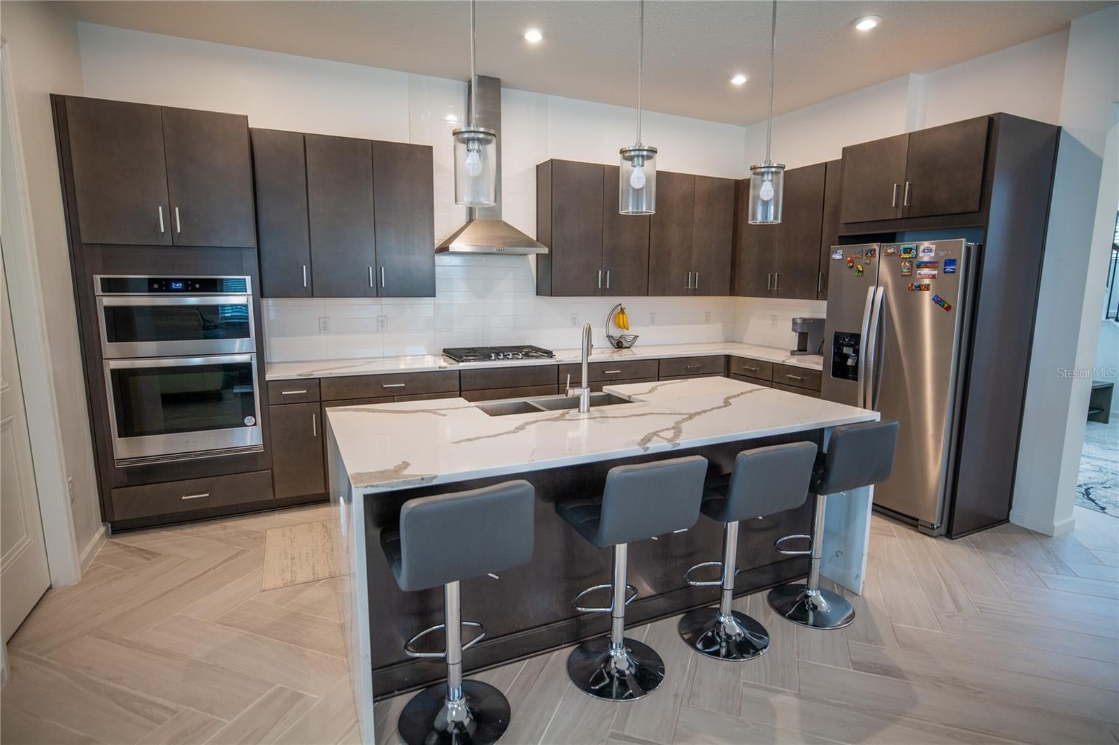 Step inside this home from anywhere! To experience a fully immersive walk-through of this home click on the Video or Virtual Tour button on this page. Exquisite Luxury Residence in Celebration’s Coveted Island Village. Perfectly positioned on a premium corner lot, this meticulously maintained luxury residence embodies refined elegance and timeless design. Nestled within the highly sought-after community of Celebration, renowned for its picturesque tree-lined streets and vibrant, resort-style lifestyle, this home offers an exceptional blend of sophistication, comfort, and convenience. As you arrive, you’re greeted by a gracious wrap-around porch and inviting entryway — a true statement of Southern charm and architectural craftsmanship. Step inside to a grand foyer with soaring ceilings, abundant natural light, and a thoughtfully designed open layout that flows effortlessly from room to room. The wood-look tile floors laid in an elegant herringbone pattern set the stage for modern luxury and warmth throughout the first level. The living and dining areas seamlessly blend, creating an ideal space for intimate gatherings or elegant entertaining. The designer kitchen is a chef’s dream, boasting espresso 42” cabinetry, a dramatic waterfall island with bar seating, veined quartz countertops, stainless steel Whirlpool appliances, including a gas cooktop with range hood, custom tile backsplash, and a walk-in pantry for additional storage. The primary suite is a private sanctuary featuring a tray ceiling, spa-inspired ensuite bath with a long dual quartz vanity, frameless glass shower with floor-to-ceiling tile, and a generous walk-in closet. A versatile guest suite or home office is conveniently located on the main level, complemented by a luxurious full bath featuring a walk-in tile shower and quartz-topped vanity. Upstairs, a spacious loft provides endless possibilities — perfect for a media lounge, game room, or private retreat. You’ll find three additional bedrooms, two connected by a Jack and Jill bath with dual vanities and a designer-tiled tub-shower combination, and a fifth bedroom with a double-door closet and generous proportions. Step outside to your pavered lanai and partially fenced backyard, the perfect setting for alfresco dining, morning coffee, or relaxing under the Florida sun. Living in Island Village at Celebration offers a truly elevated lifestyle. Residents enjoy resort-style amenities, including a state-of-the-art clubhouse with a full fitness center, a spectacular resort pool, quaint cafés, boutique shops, fine dining, and miles of scenic walking and biking trails surrounded by pristine lakes and natural beauty. Top-rated schools lie within the community, and the iconic Downtown Celebration — with its charming restaurants and seasonal events — is just minutes away. This is more than a home — it’s a refined retreat designed for those who appreciate beauty, privacy, and an unparalleled standard of living in one of Central Florida’s most prestigious neighborhoods.