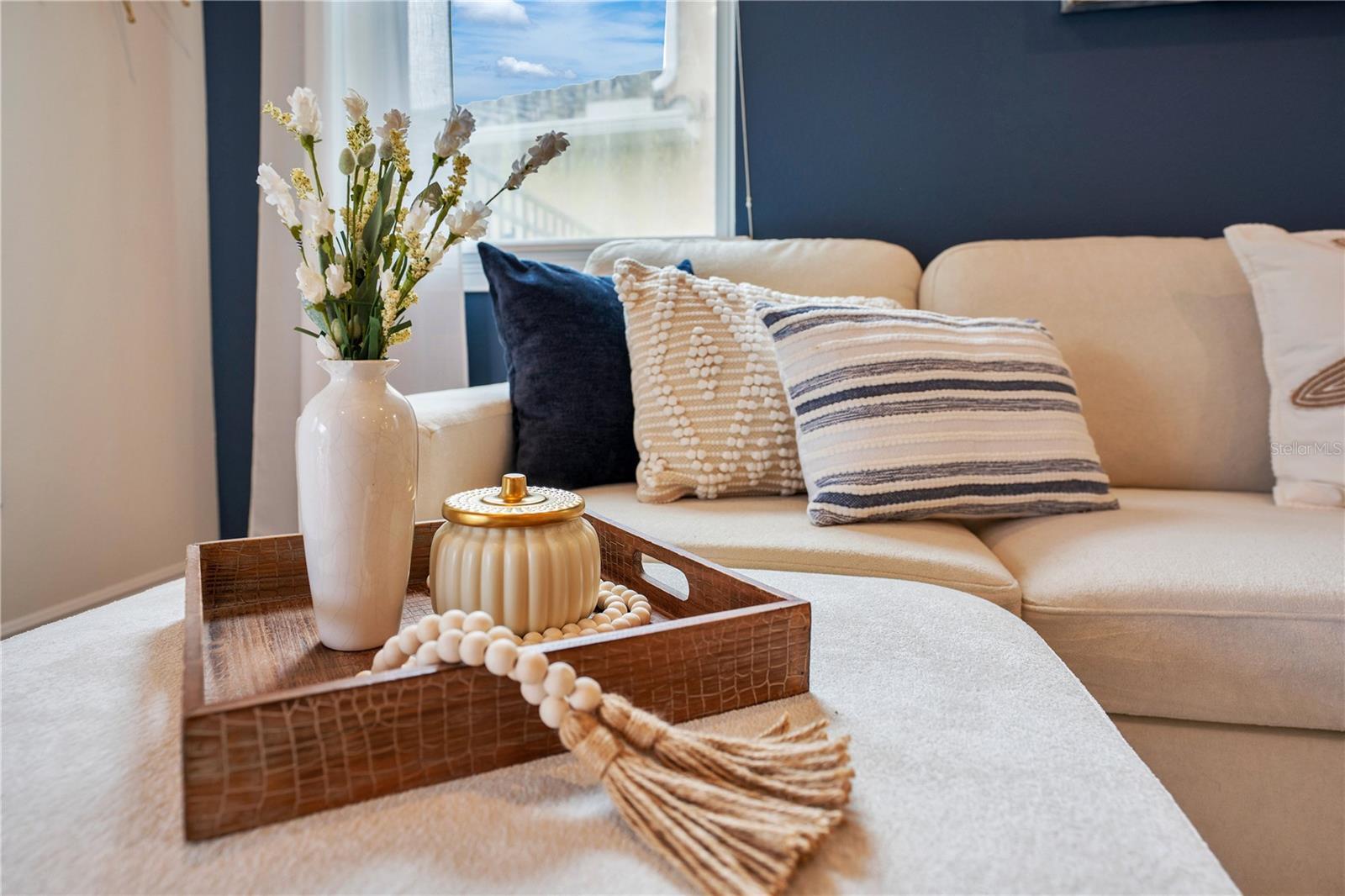 - Accessibility Features, Ceiling Fans(s), Dry Bar, Eat-in Kitchen, High Ceilings, Kitchen/Family Room Combo, L Dining, Living Room/Dining Room Combo, Open Floorplan, Primary Bedroom Main Floor, PrimaryBedroom Upstairs, Solid Wood Cabinets, Split Bedroom, Stone Counters, Thermostat, Walk-In Closet(s), Window Treatments