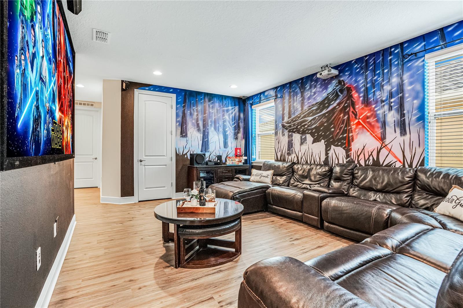 Under contract-accepting backup offers. PRICE IMPROVEMENT! SELLER IS NOW OFFERING $10,000 CONCESSION for garage game roomconversion, curb-appeal enhancements, or other buyer-preferred upgrades or closing costs. Exceptional opportunity to personalize the home while benefiting from immediate value. This spectacular 10-BEDROOM, 10-BATHROOM property located in highly sought after ENCORE AT REUNION RESORT, minutes from Orlando's world-famous theme parks, delivers the seamless blend of MAGICAL VACATION MEMORIES and UNPARALLELED INVESTMENT OPPORTUNITY. A rare chance to acquire a high-quality asset at an exceptional price with potential for $128K in annual rental income. With IMMERSIVE MURALS, PROFESSIONALLY DESIGNED THEMED ROOMS, desirable BRIGHT COASTAL INTERIORS, and luxurious AMENITIES, this dream VACATION HOME is an upscale resort-style retreat positioned to capitalize on anticipated tourism from newly opened EPIC UNIVERSE and DISNEY PARKS significant expansions. FRESHLY PAINTED INTERIORS AND EXTERIORS (Oct2025) create a bright, refreshed atmosphere complemented by NEW FURNISHINGS, NEWLY EPOXIED GARAGE FLOOR, & FRESHLY CLEANED TILE. With its FULLY FURNISHED, TURN-KEY DESIGN, this home is ready for immediate enjoyment or effortless short-term rental success. Designed to host large gatherings, the floor plan is impressive & functional. THREE PRIMARY SUITES; two located downstairs & one upstairs, offer luxurious retreats while ENSUITE SPA-LIKE baths provide ultimate privacy. Many with dual sinks, garden tubs, & natural light. The OPEN-CONCEPT great room & dining area flow into the kitchen with GRANITE COUNTERS, 42-inch shaker style cabinetry, coffee bar, DUAL STAINLESS-STEEL REFRIGERATORS and DISHWASHERS, and Breakfast Bar. Dual Laundry Rooms upstairs & down offer further convenience. Upstairs, the experience grows even more enchanting. IMMERSIVE THEMED ROOMS bring childhood dreams to life; HARRY POTTER'S CHAMBER OF SECRETS, ELSA'S ENCHANTED LOFT, and the SUPERHERO SANCTUARY are professionally designed with 360-degree murals and custom loftstyle beds. The STAR WARS SCREENING ROOM offers a cinematic escape with projector, surround sound, and reclining leather sectional. A nearby ENTERTAINMENT LOFT with foosball and TV adds extra fun. Floor to ceiling sliding doors open to your PRIVATE OUTDOOR OASIS featuring large covered lanai, spacious paver patio and lawn, HEATED POOL AND SPA surrounded by tropical landscaping, fenced yard, NO REAR NEIGHBORS, and SERENE POND VIEWS. Located a short walk from Encore's exclusive amenities, you'll enjoy access to a 10-acre waterpark with exhilarating slides, splash pad, poolside cabanas, fitness center, courts for tennis, volleyball, and basketball, a full soccer field, casual on-site dining & bar, concierge desk, and complimentary transportation to Disney, Universal & SeaWorld. The HOA covers internet, cable, landscaping, irrigation, pest control, community maintenance, and 24-hour manned security-simplifying ownership while maximizing returns. This home is COMPLETELY TURN-KEY, ready to start generating income from day one. With high occupancy potential, strong nightly rate projections, and prime location this home offers exceptional earning capacity for investors. Whether you're looking to generate income or create a personal retreat that pays for itself, this property provides the best of both worlds. Don't miss your chance to own a proven income-generating property! Schedule your private showing today and start enjoying returns the day you close!