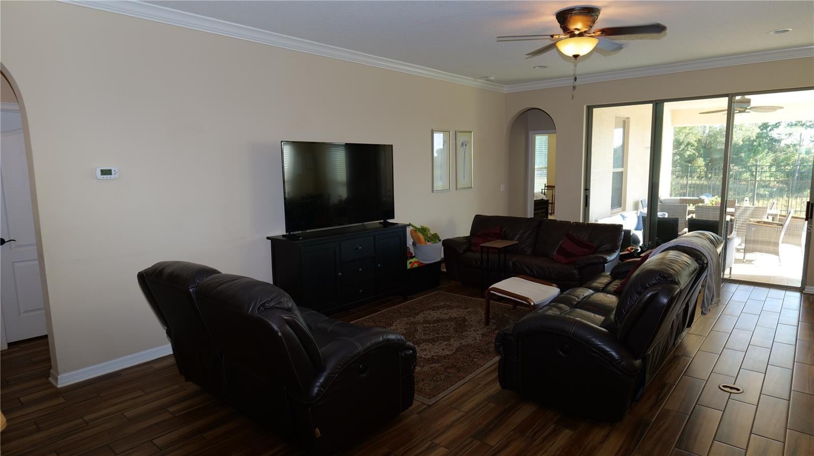Welcome to this stunning custom pool home built in 2016 and perfectly situated with no rear neighbors in the highly desirable Reserve at Lake Minneola community! This Beautiful 5 bedroom, 3.5 bathroom residence offers two spacious master bedrooms , one conveniently located on first floor with full wheelchair accessibility and another upstairs providing additional privacy and comfort ideal for multi generational living or guest privacy. Step inside to find an open concept design filled with natural light, high coffered ceilings, and elegant wood look tile flooring. The gourmet kitchen features a large island, granite countertops, stainless steel appliances, a huge walk-in pantry, and plenty of cabinet space perfect for entertaining and family gatherings.The downstairs primary suite includes a luxurious bath with dual sinks, granite counters a stand-up shower, and garden tub. Upstairs, the second suite boasts its own walk-in closet and double sink bath, plus additional bedrooms and a loft/flex space.Enjoy Florida living at its best with a covered patio, pool, and metal safety fence, surround by a beautifully maintained yard and tranquil privacy. Residents of The Reserve at Lake Minneola enjoy access to a community pool,playground, and low HOA fees all just minutes from shopping, dining, top rated schools and major highways for easy commuting. Schedule your private showing today and experience the perfect blend of comfort, style and location!!!