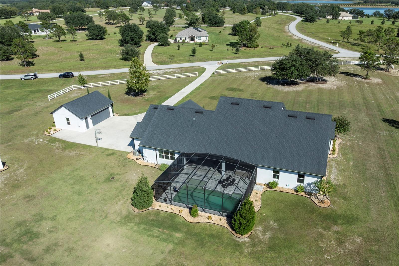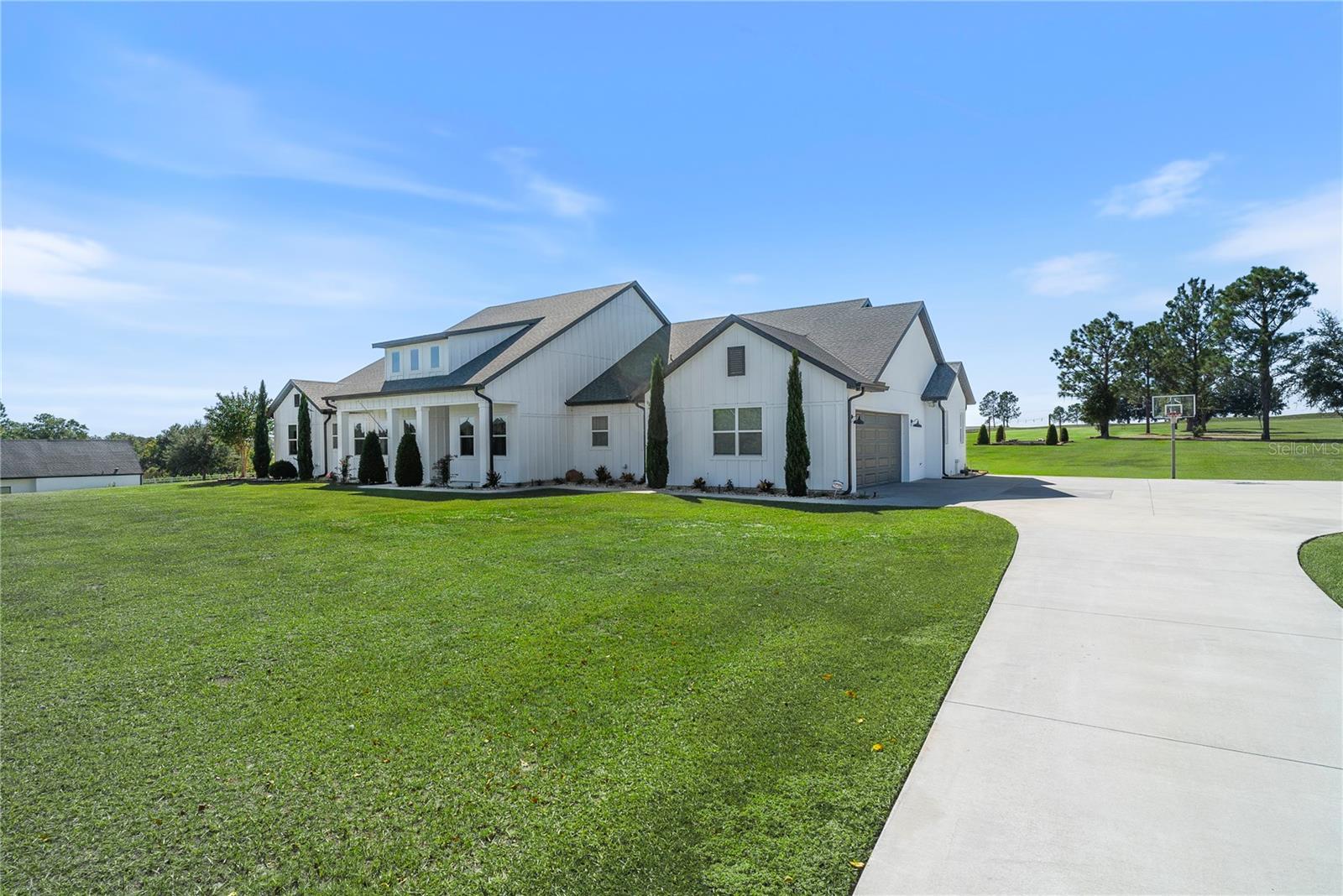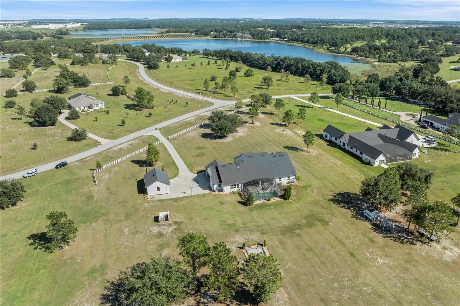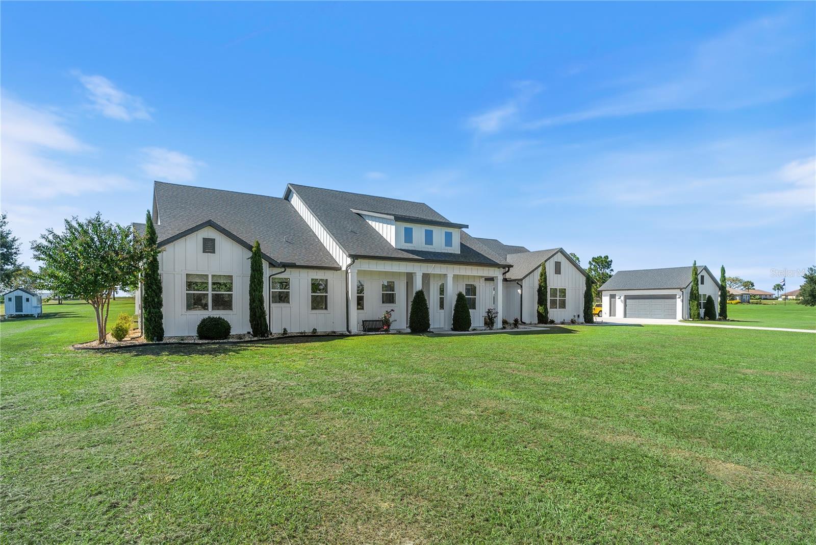 Under contract-accepting backup offers. Tucked away on 5.25 peaceful acres, this breathtaking 5-bedroom, 5-bathroom estate in this quit gated community invites you to live with comfort, beauty, and lots of space at every turn. Make sure you bring your boat with you when you call the Ranch Club community home because this community offers access to the Clermont Chain of lakes where your family will share memories for years to come. From the moment you arrive, you're welcomed by soaring 10' ceilings, 8' doors, and warm wood-look tile flowing throughout, setting the stage for relaxed elegance. Oversized bedrooms—most with luxurious en-suite baths and walk-in closets—offer peaceful retreats, while the heart of the home, a chef’s dream kitchen, features a propane 6-burner cooktop with griddle, double-stacked custom cabinetry, and a walk-in pantry with built-ins, all framed by light and space. Entertain under the stars with a brand-new summer kitchen, propane outdoor kitchen, saltwater pool, and a glowing fire pit surrounded by pavers, perfect for gathering with loved ones. A spacious game room, custom-built mudroom and office, and tile-to-ceiling bathrooms add both function and style. With an oversized attached garage, 2.5-car detached garage, and fully accessible attic spaces in both—this home has room for everything, including your dreams. It's more than a home—it's a place to belong, to unwind, and to truly live