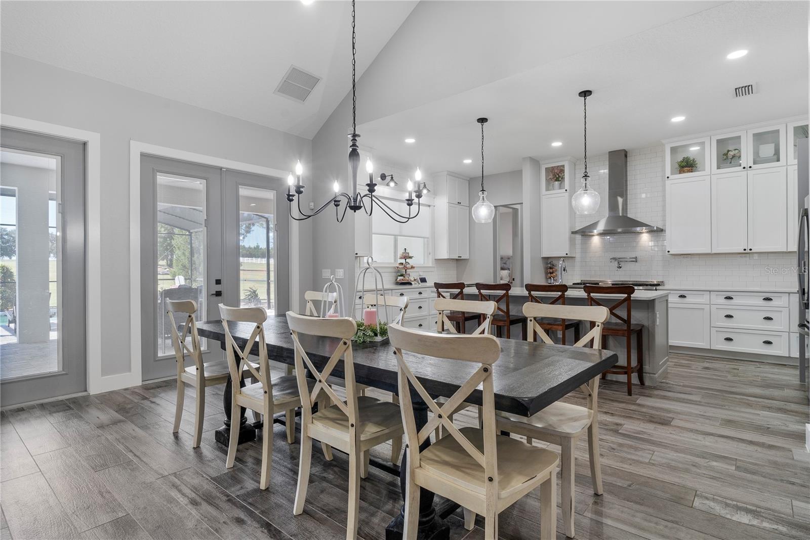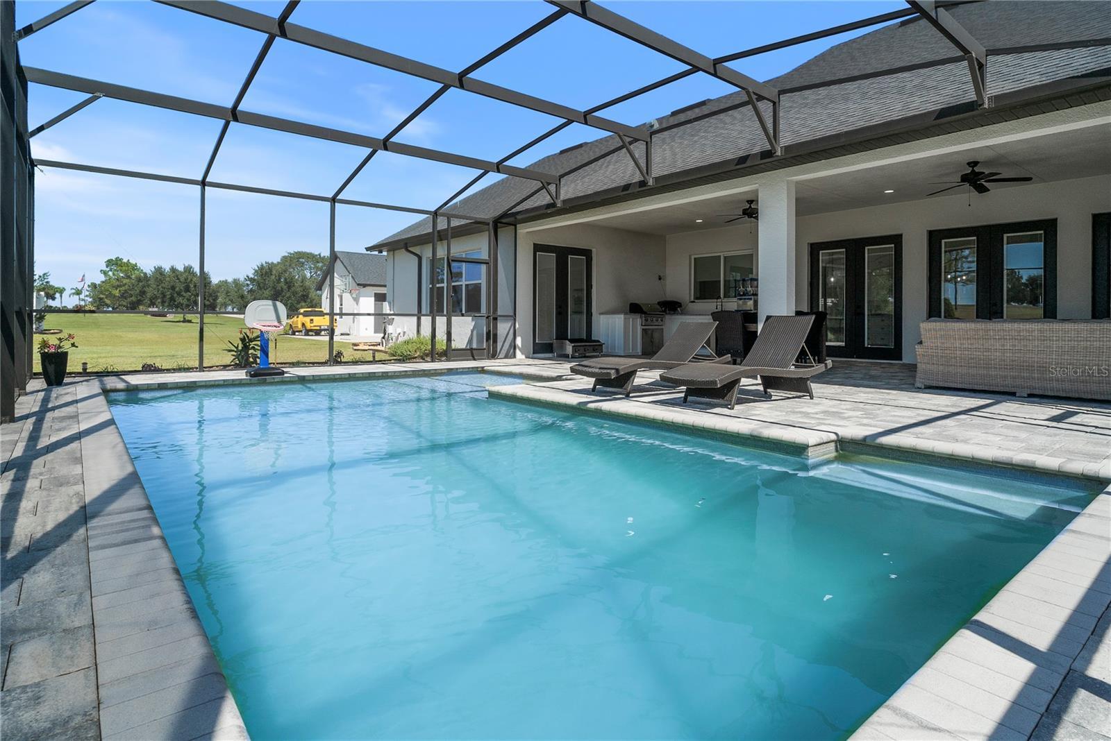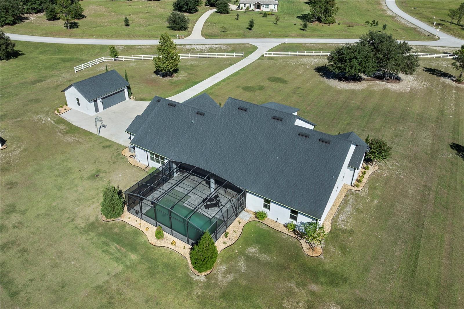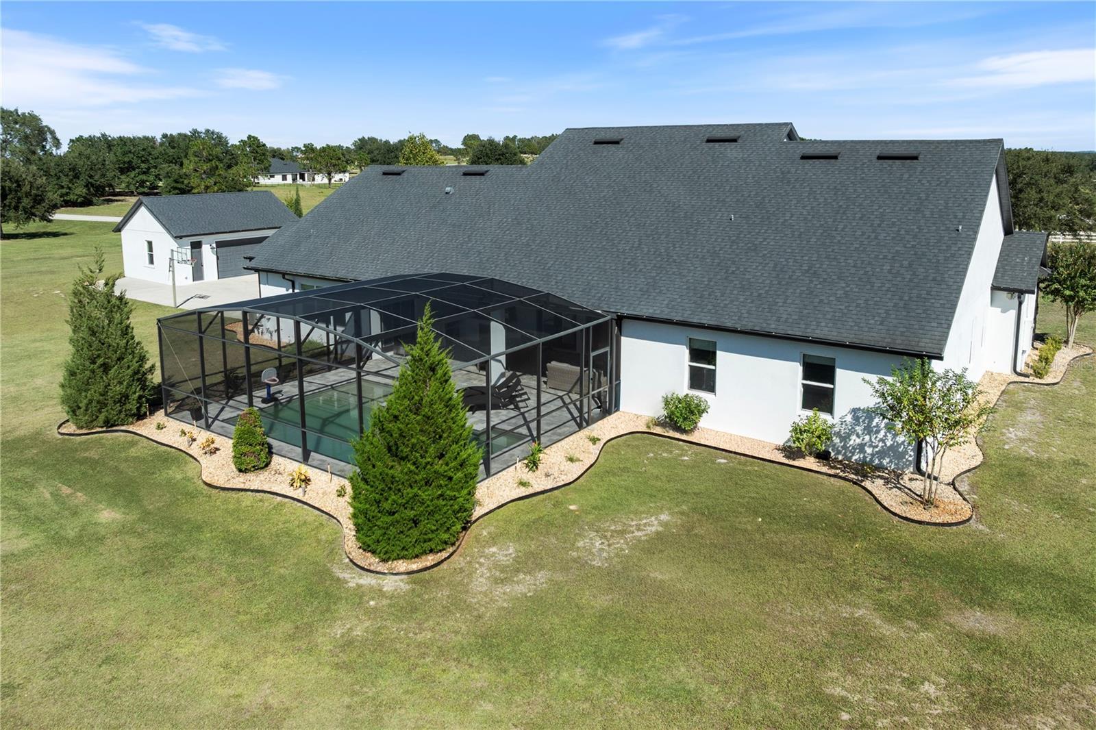 Under contract-accepting backup offers. Tucked away on 5.25 peaceful acres, this breathtaking 5-bedroom, 5-bathroom estate in this quit gated community invites you to live with comfort, beauty, and lots of space at every turn. Make sure you bring your boat with you when you call the Ranch Club community home because this community offers access to the Clermont Chain of lakes where your family will share memories for years to come. From the moment you arrive, you're welcomed by soaring 10' ceilings, 8' doors, and warm wood-look tile flowing throughout, setting the stage for relaxed elegance. Oversized bedrooms—most with luxurious en-suite baths and walk-in closets—offer peaceful retreats, while the heart of the home, a chef’s dream kitchen, features a propane 6-burner cooktop with griddle, double-stacked custom cabinetry, and a walk-in pantry with built-ins, all framed by light and space. Entertain under the stars with a brand-new summer kitchen, propane outdoor kitchen, saltwater pool, and a glowing fire pit surrounded by pavers, perfect for gathering with loved ones. A spacious game room, custom-built mudroom and office, and tile-to-ceiling bathrooms add both function and style. With an oversized attached garage, 2.5-car detached garage, and fully accessible attic spaces in both—this home has room for everything, including your dreams. It's more than a home—it's a place to belong, to unwind, and to truly live
