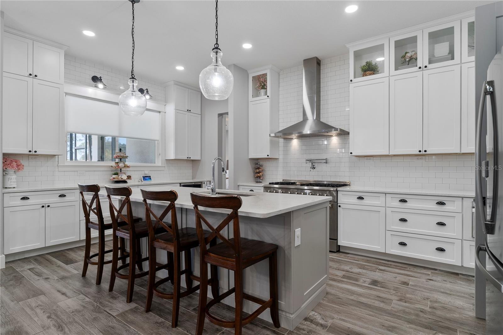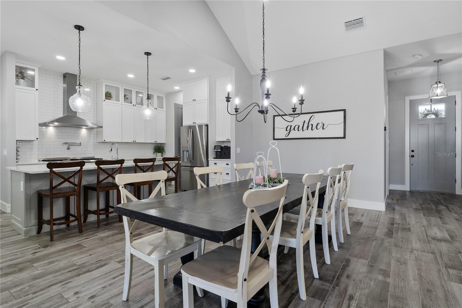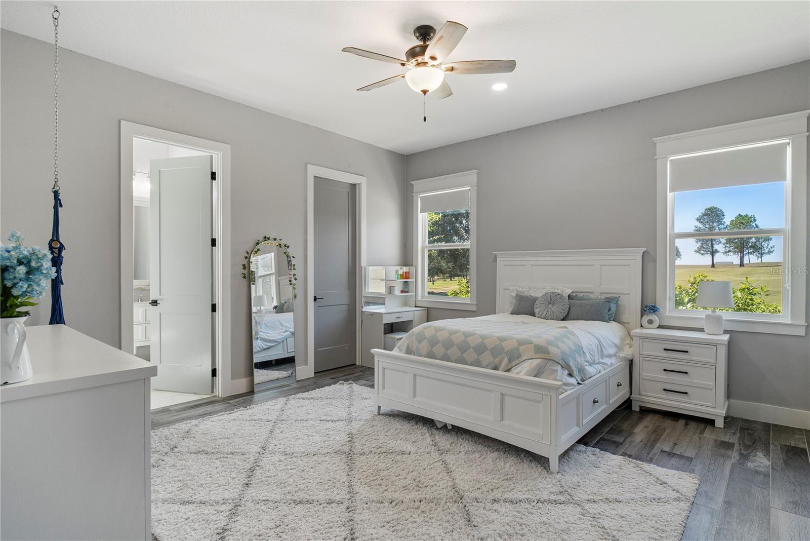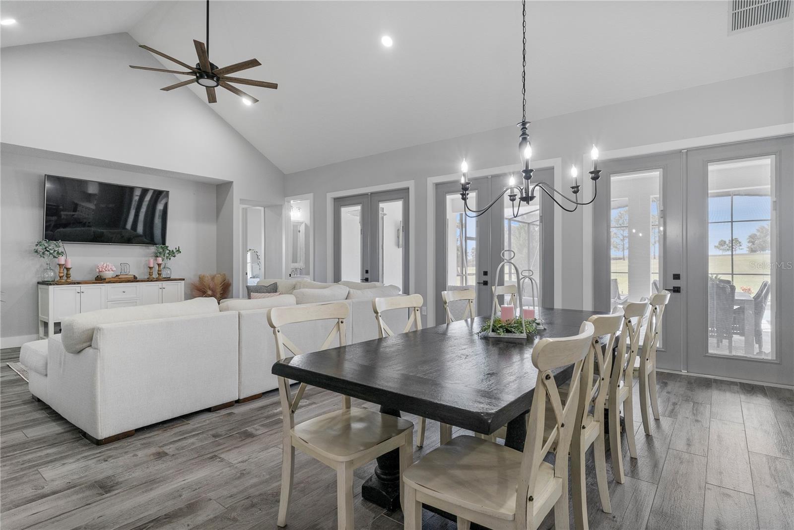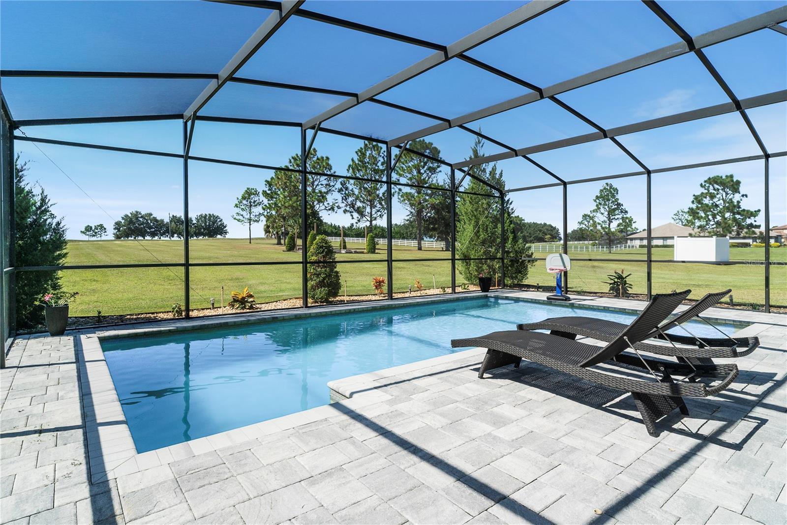 Under contract-accepting backup offers. Tucked away on 5.25 peaceful acres, this breathtaking 5-bedroom, 5-bathroom estate in this quit gated community invites you to live with comfort, beauty, and lots of space at every turn. Make sure you bring your boat with you when you call the Ranch Club community home because this community offers access to the Clermont Chain of lakes where your family will share memories for years to come. From the moment you arrive, you're welcomed by soaring 10' ceilings, 8' doors, and warm wood-look tile flowing throughout, setting the stage for relaxed elegance. Oversized bedrooms—most with luxurious en-suite baths and walk-in closets—offer peaceful retreats, while the heart of the home, a chef’s dream kitchen, features a propane 6-burner cooktop with griddle, double-stacked custom cabinetry, and a walk-in pantry with built-ins, all framed by light and space. Entertain under the stars with a brand-new summer kitchen, propane outdoor kitchen, saltwater pool, and a glowing fire pit surrounded by pavers, perfect for gathering with loved ones. A spacious game room, custom-built mudroom and office, and tile-to-ceiling bathrooms add both function and style. With an oversized attached garage, 2.5-car detached garage, and fully accessible attic spaces in both—this home has room for everything, including your dreams. It's more than a home—it's a place to belong, to unwind, and to truly live