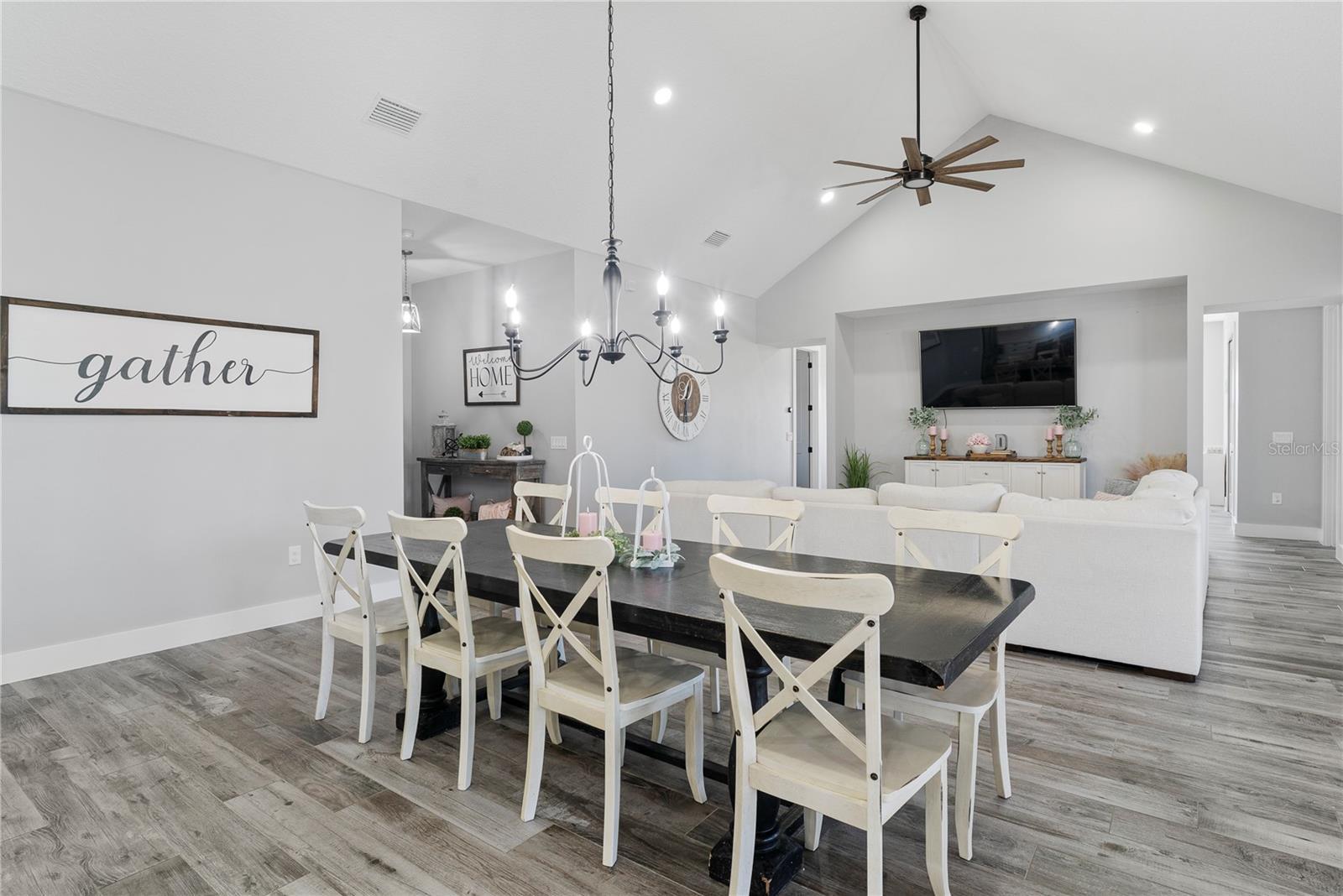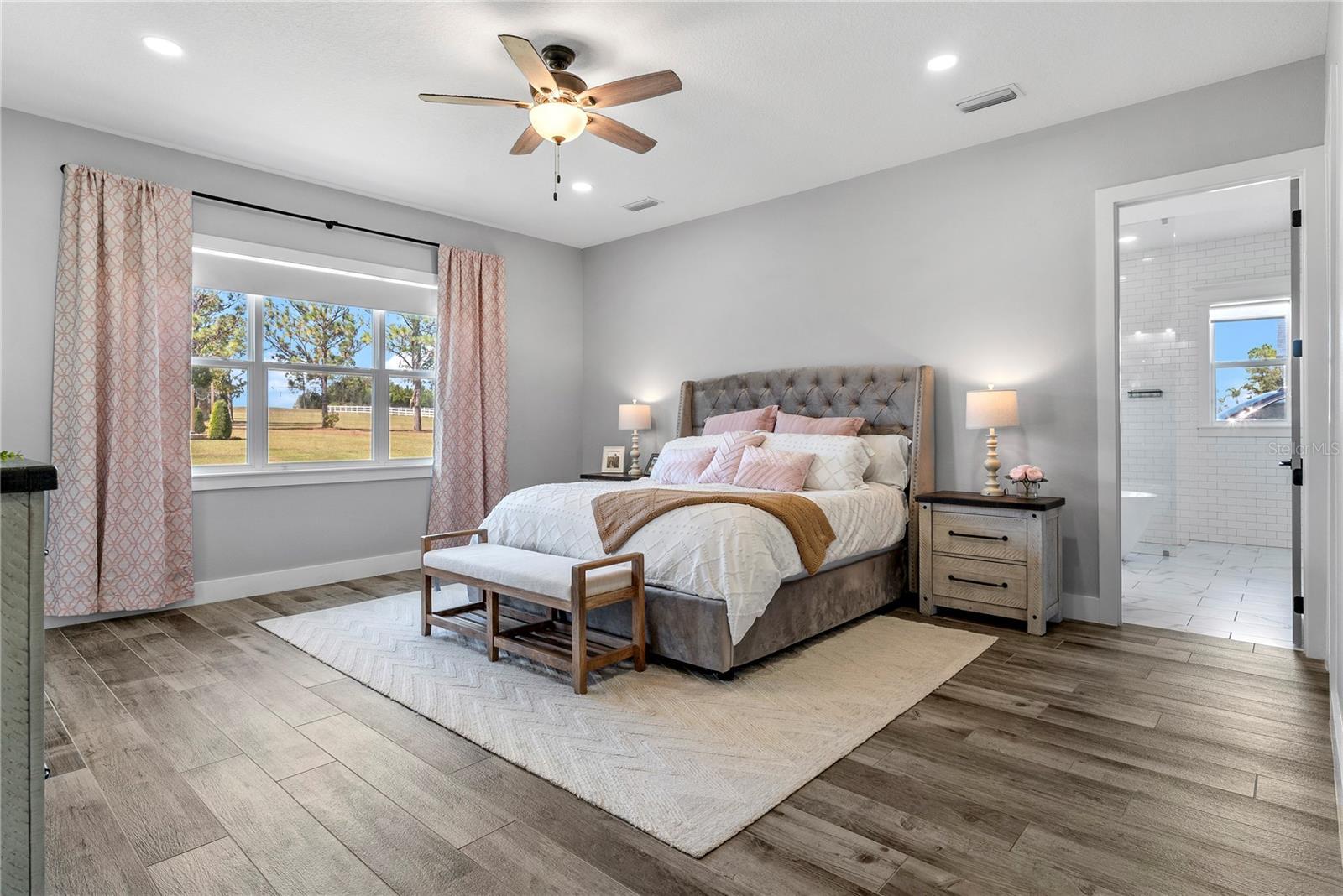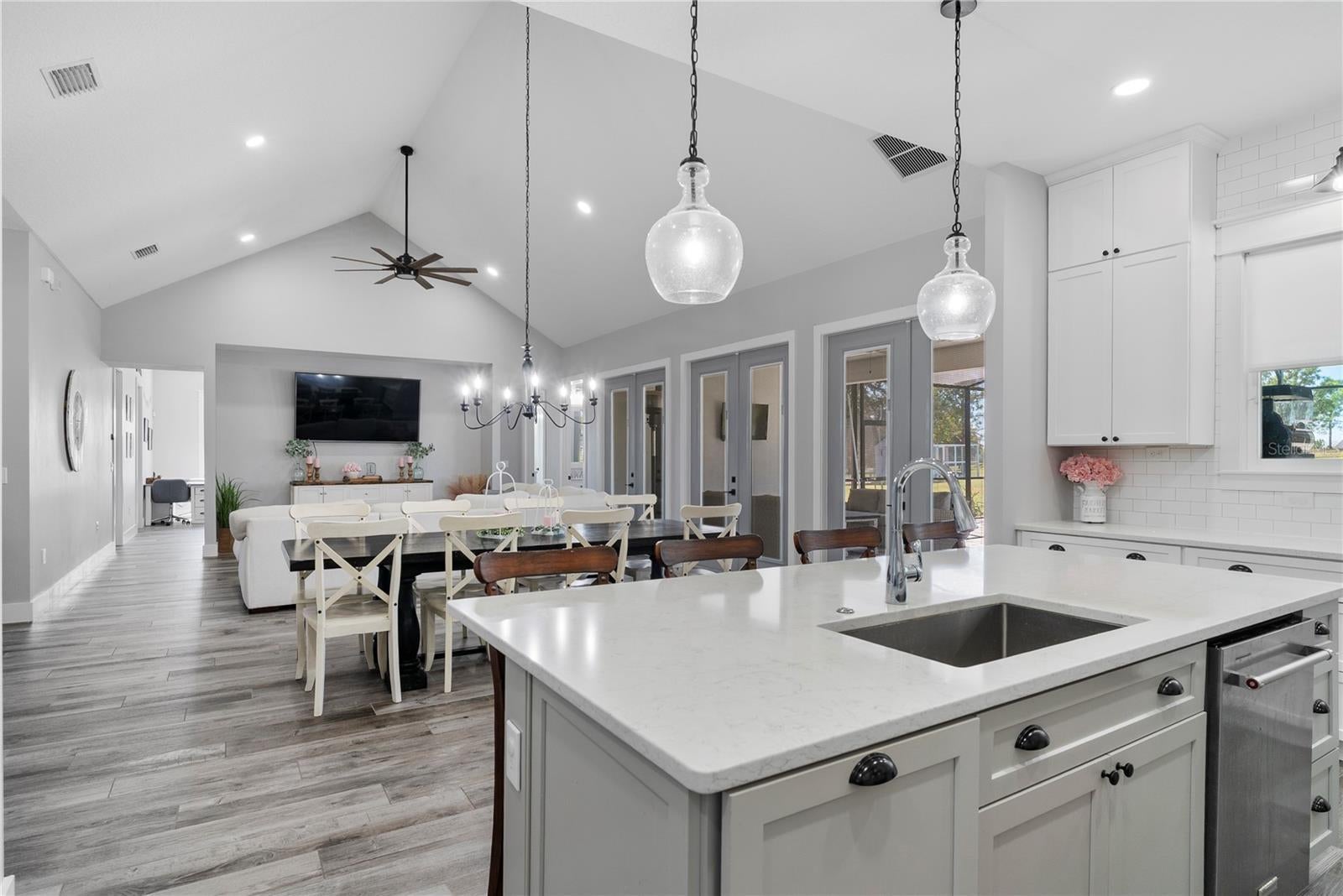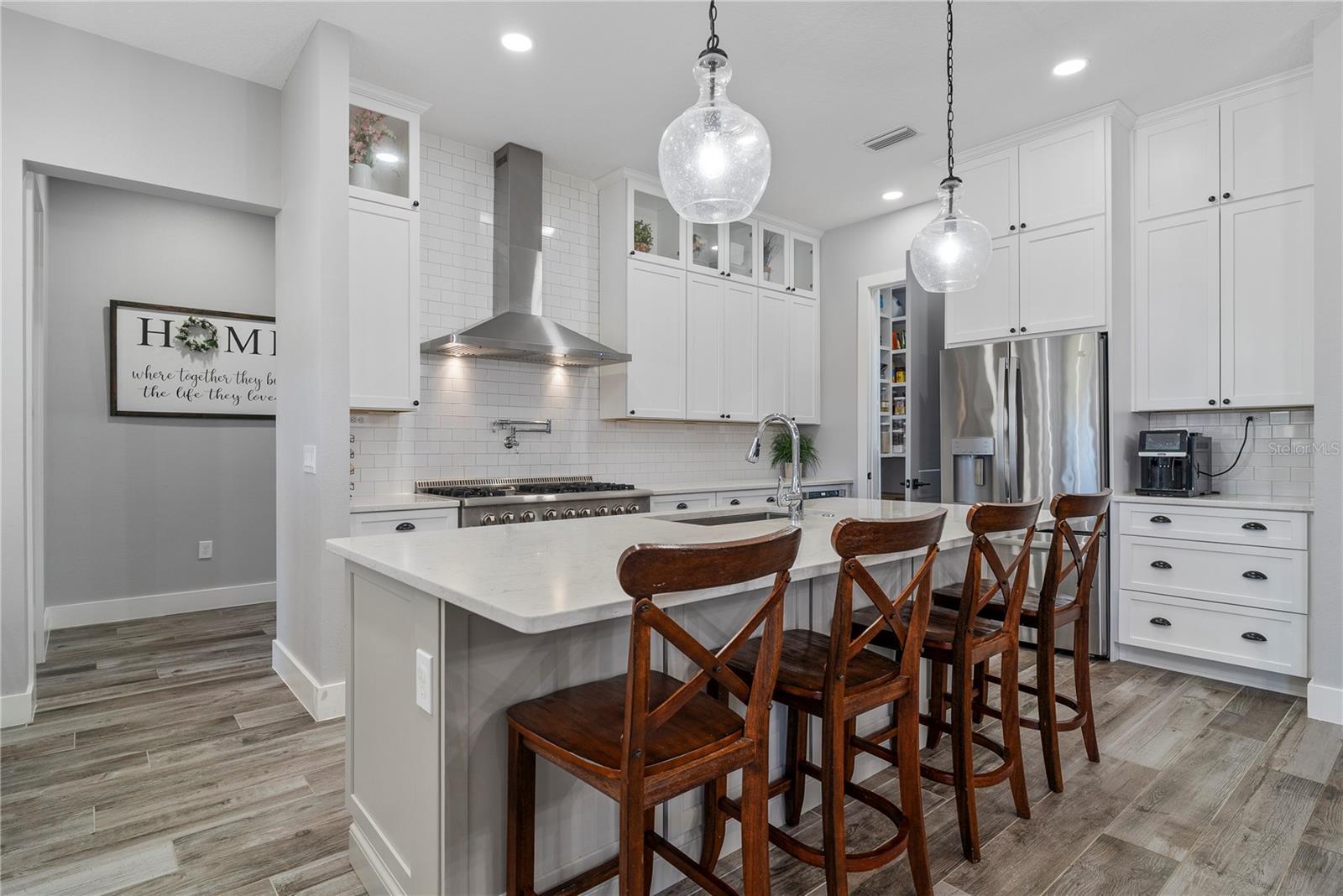 Under contract-accepting backup offers. Tucked away on 5.25 peaceful acres, this breathtaking 5-bedroom, 5-bathroom estate in this quit gated community invites you to live with comfort, beauty, and lots of space at every turn. Make sure you bring your boat with you when you call the Ranch Club community home because this community offers access to the Clermont Chain of lakes where your family will share memories for years to come. From the moment you arrive, you're welcomed by soaring 10' ceilings, 8' doors, and warm wood-look tile flowing throughout, setting the stage for relaxed elegance. Oversized bedrooms—most with luxurious en-suite baths and walk-in closets—offer peaceful retreats, while the heart of the home, a chef’s dream kitchen, features a propane 6-burner cooktop with griddle, double-stacked custom cabinetry, and a walk-in pantry with built-ins, all framed by light and space. Entertain under the stars with a brand-new summer kitchen, propane outdoor kitchen, saltwater pool, and a glowing fire pit surrounded by pavers, perfect for gathering with loved ones. A spacious game room, custom-built mudroom and office, and tile-to-ceiling bathrooms add both function and style. With an oversized attached garage, 2.5-car detached garage, and fully accessible attic spaces in both—this home has room for everything, including your dreams. It's more than a home—it's a place to belong, to unwind, and to truly live
