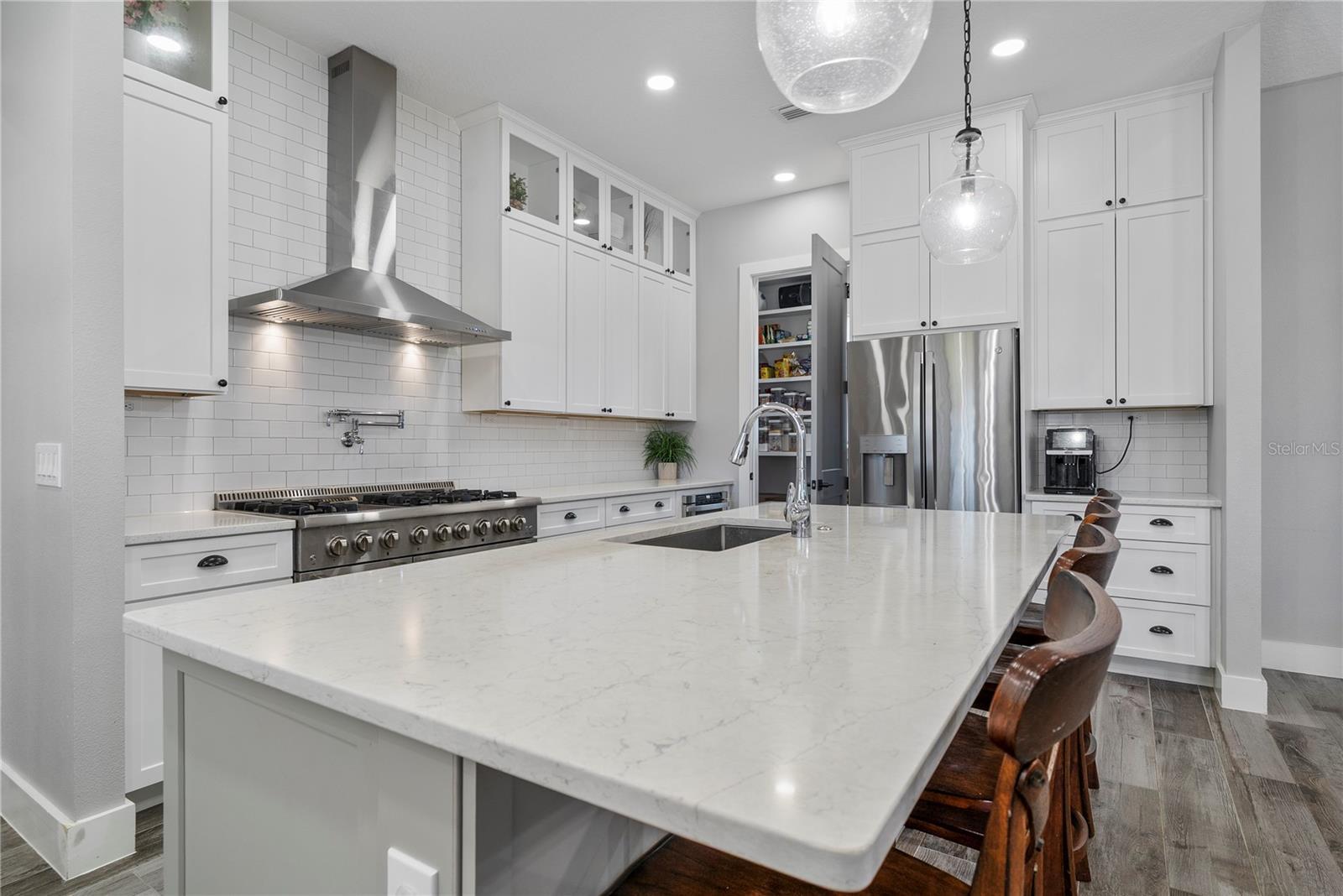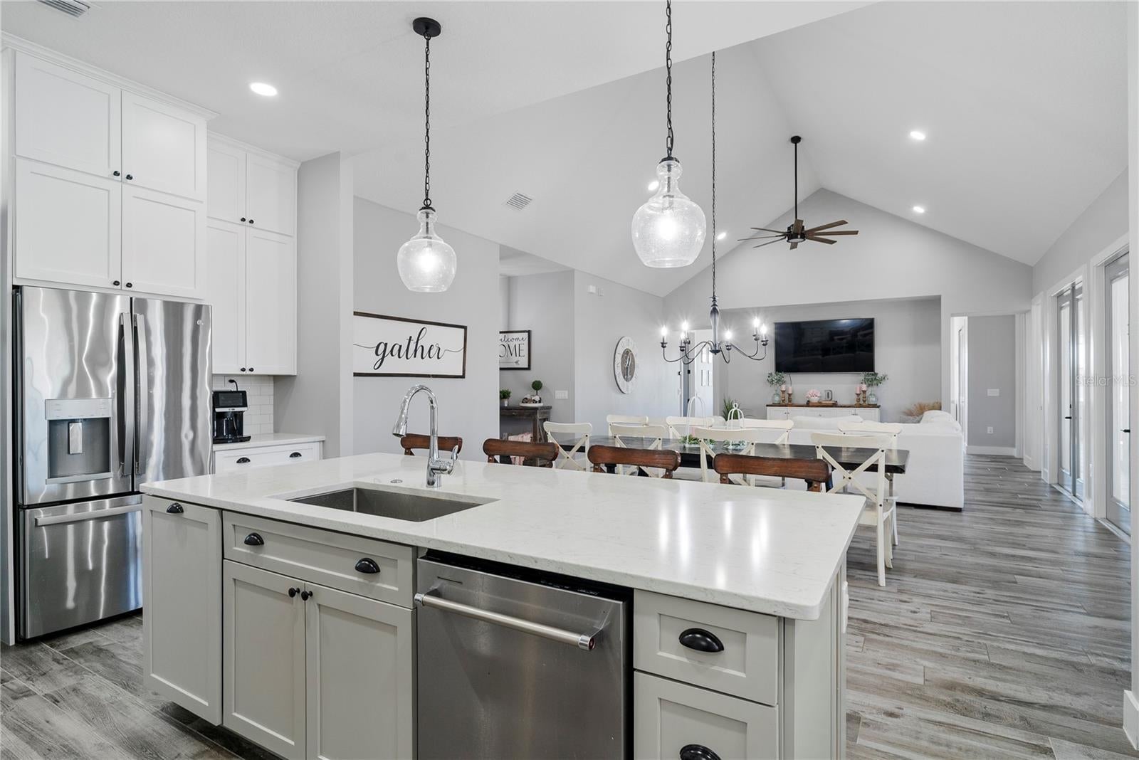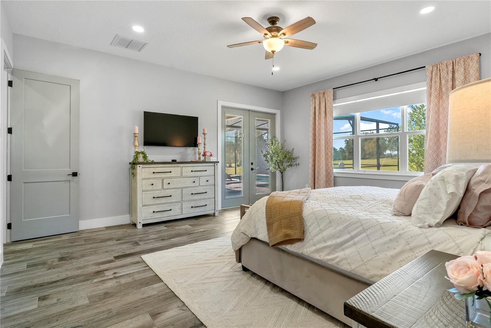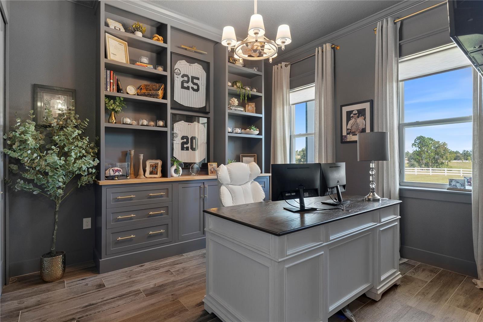 Under contract-accepting backup offers. Tucked away on 5.25 peaceful acres, this breathtaking 5-bedroom, 5-bathroom estate in this quit gated community invites you to live with comfort, beauty, and lots of space at every turn. Make sure you bring your boat with you when you call the Ranch Club community home because this community offers access to the Clermont Chain of lakes where your family will share memories for years to come. From the moment you arrive, you're welcomed by soaring 10' ceilings, 8' doors, and warm wood-look tile flowing throughout, setting the stage for relaxed elegance. Oversized bedrooms—most with luxurious en-suite baths and walk-in closets—offer peaceful retreats, while the heart of the home, a chef’s dream kitchen, features a propane 6-burner cooktop with griddle, double-stacked custom cabinetry, and a walk-in pantry with built-ins, all framed by light and space. Entertain under the stars with a brand-new summer kitchen, propane outdoor kitchen, saltwater pool, and a glowing fire pit surrounded by pavers, perfect for gathering with loved ones. A spacious game room, custom-built mudroom and office, and tile-to-ceiling bathrooms add both function and style. With an oversized attached garage, 2.5-car detached garage, and fully accessible attic spaces in both—this home has room for everything, including your dreams. It's more than a home—it's a place to belong, to unwind, and to truly live
