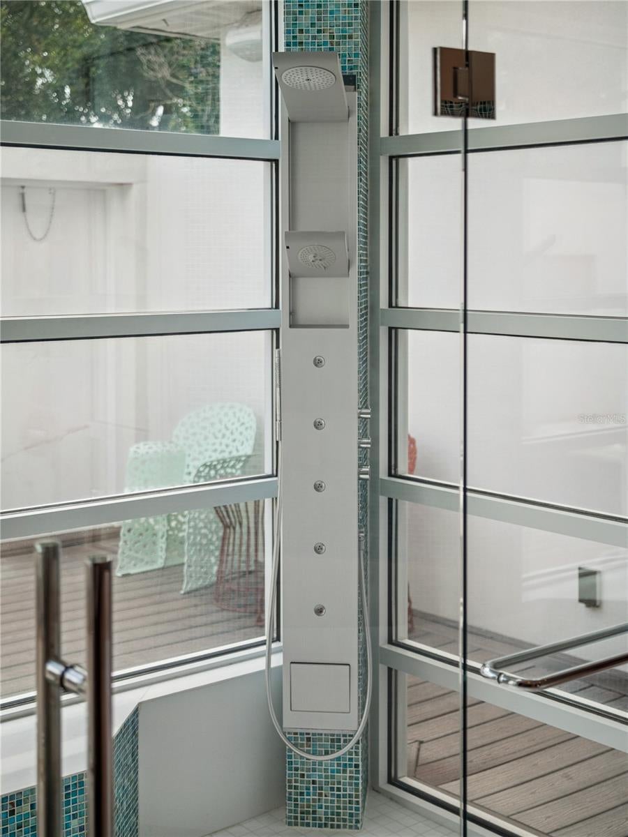 - Balcony, French Doors, Lighting, Outdoor Grill, Outdoor Kitchen, Outdoor Shower, Rain Gutters, Sauna, Storage