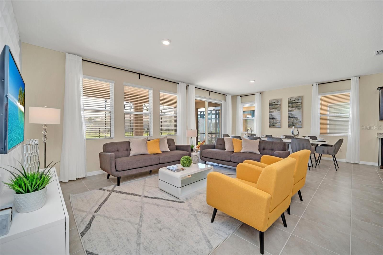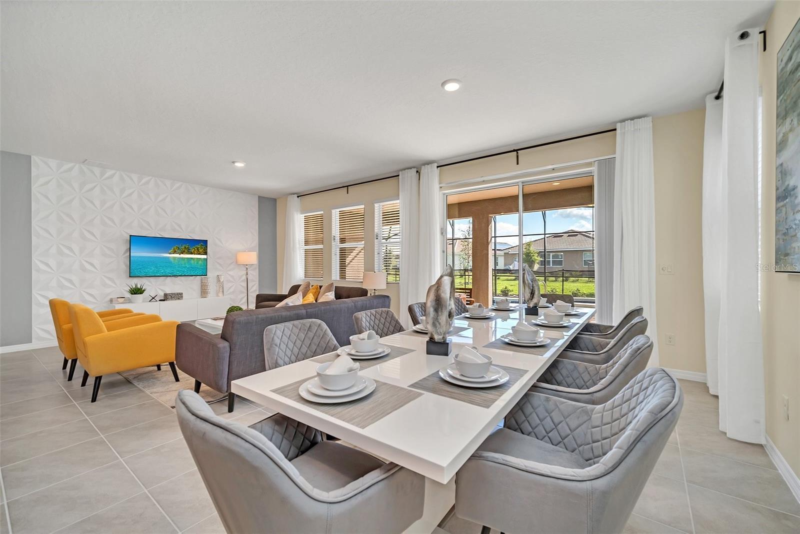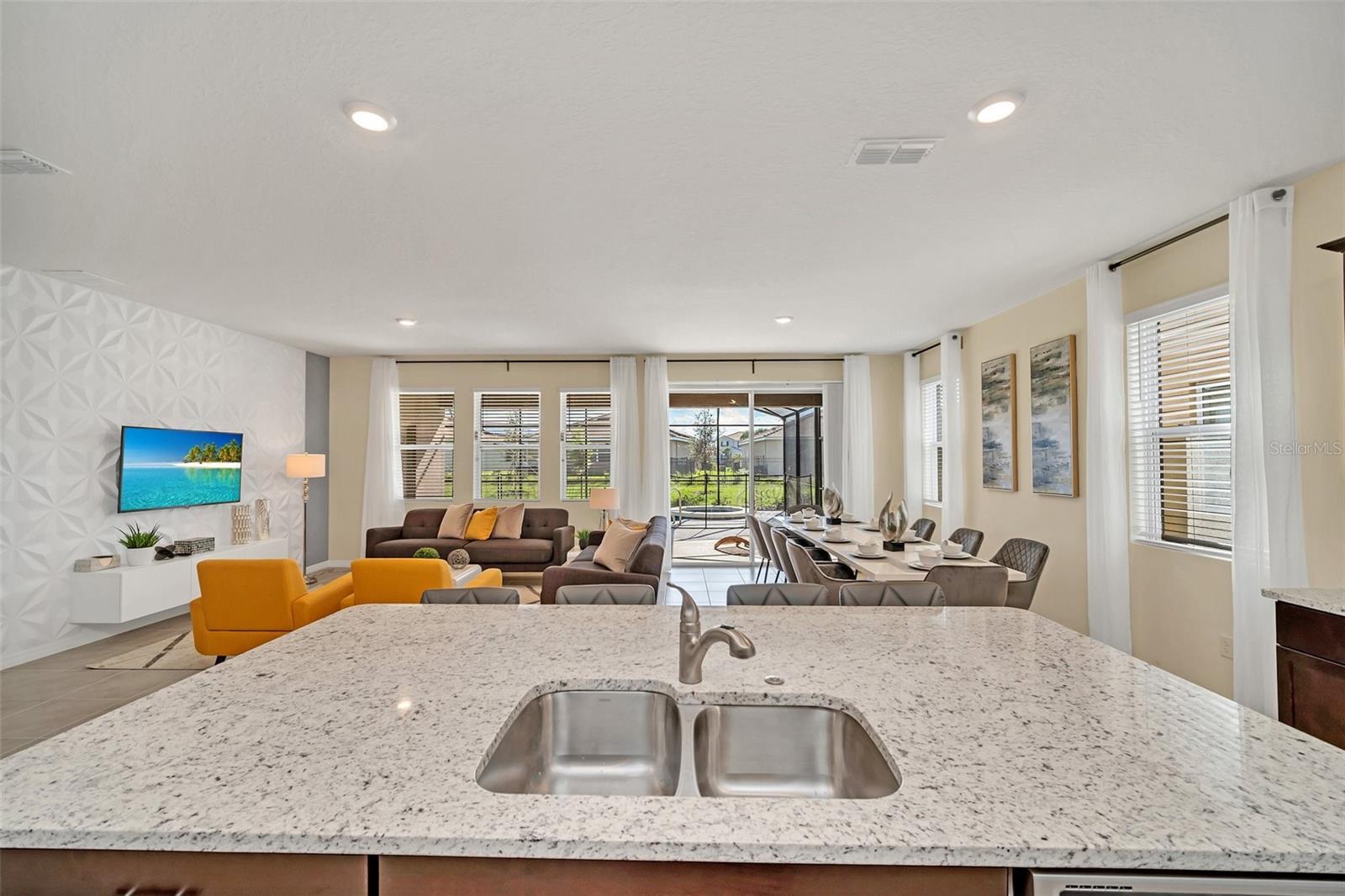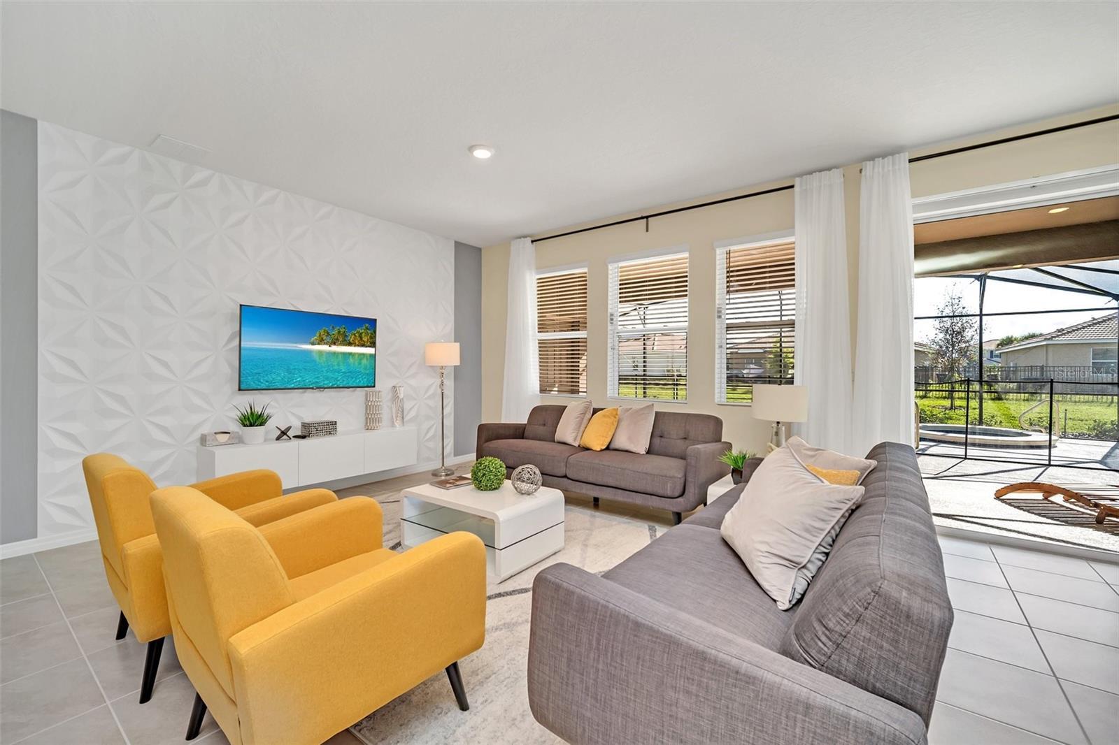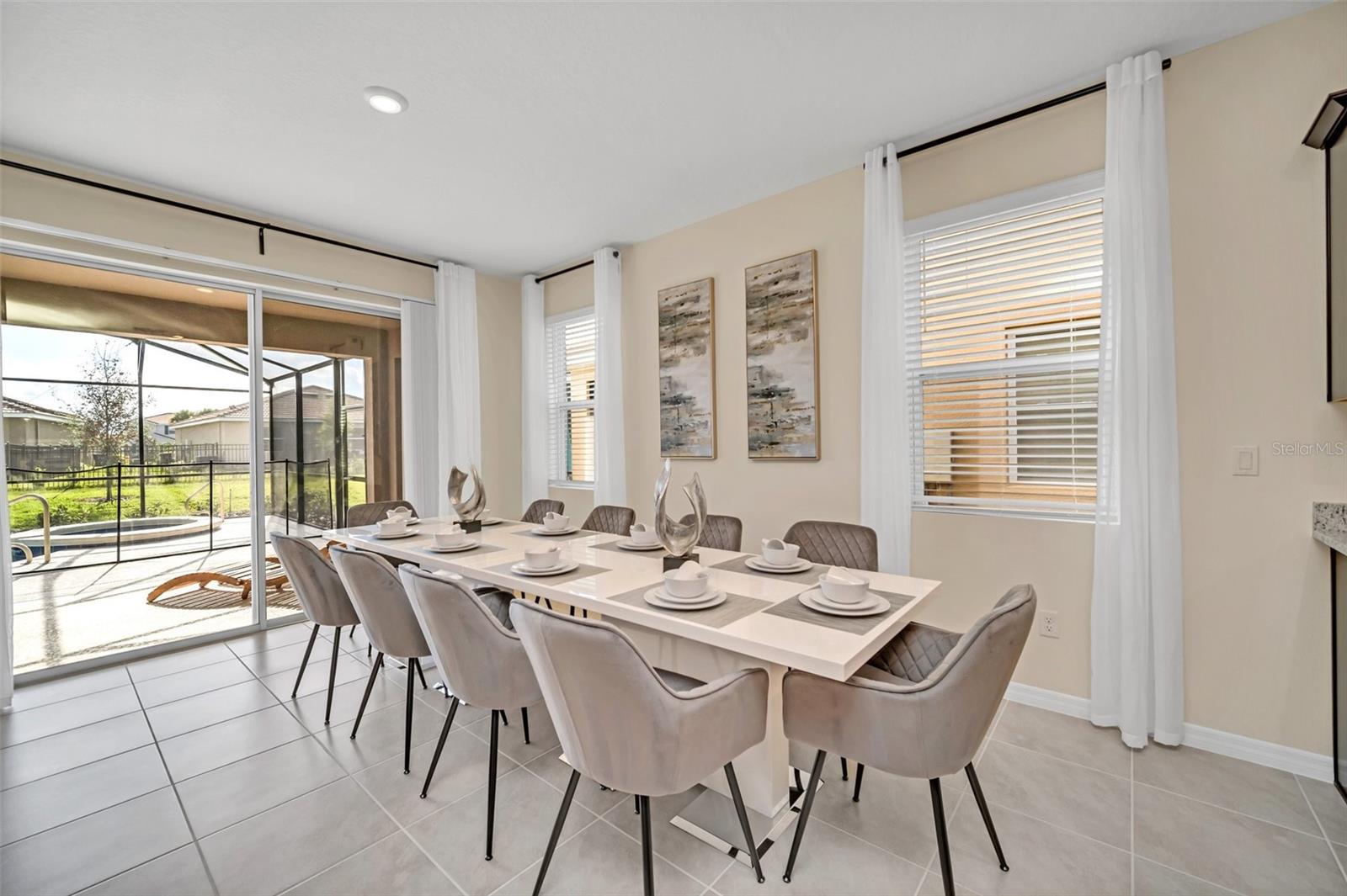 Welcome to your dream home in the sought-after resort style gated community! This stunning 2-story furnished home features 7 spacious bedrooms and 5.5 baths, offering plenty of room for family and friends. Step inside to find generous open living spaces, a modern kitchen with premium finishes, and tastefully furnished interiors. The private screened in pool and spa create the perfect retreat for relaxation and entertaining. Enjoy world class amenities including beach entry resort pool with water slide, lazy river, poolside bar & grill, fitness center, tennis courts, and an elegant clubhouse. This community is located near Walt Disney World,Universal Studios, and all of dining, shopping, and entertainment. Lawn care, internet, cable TV, and trash collection are all included in the rent. Come and see it today!!
