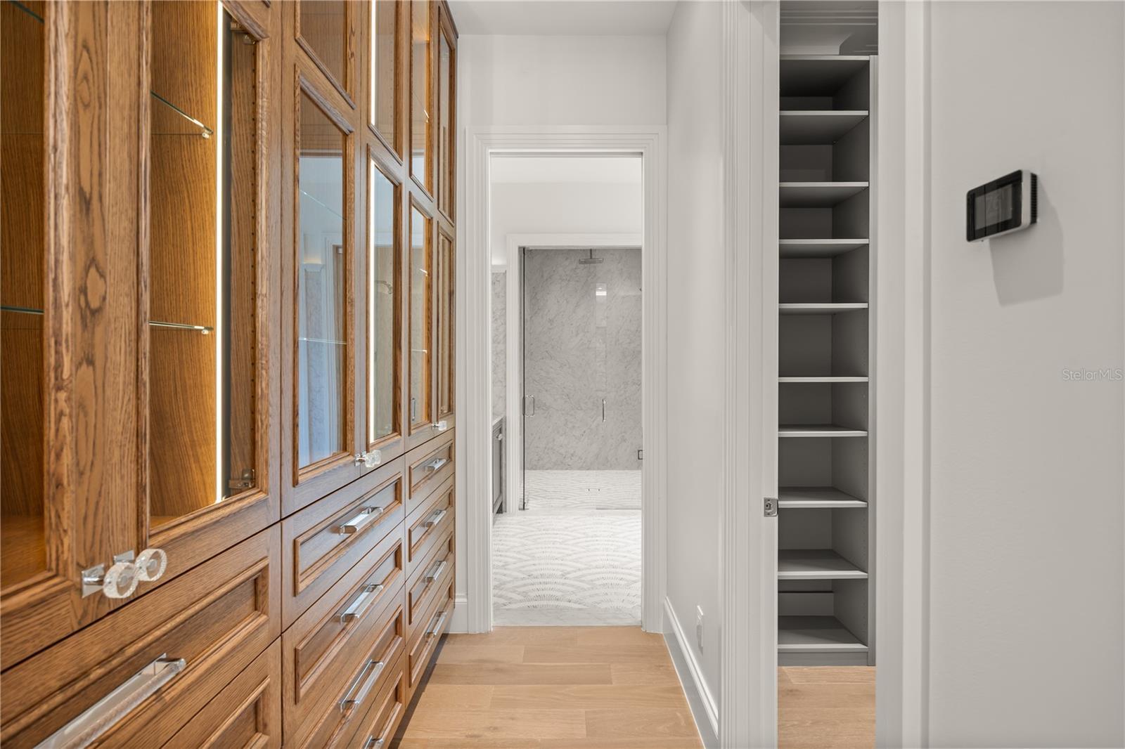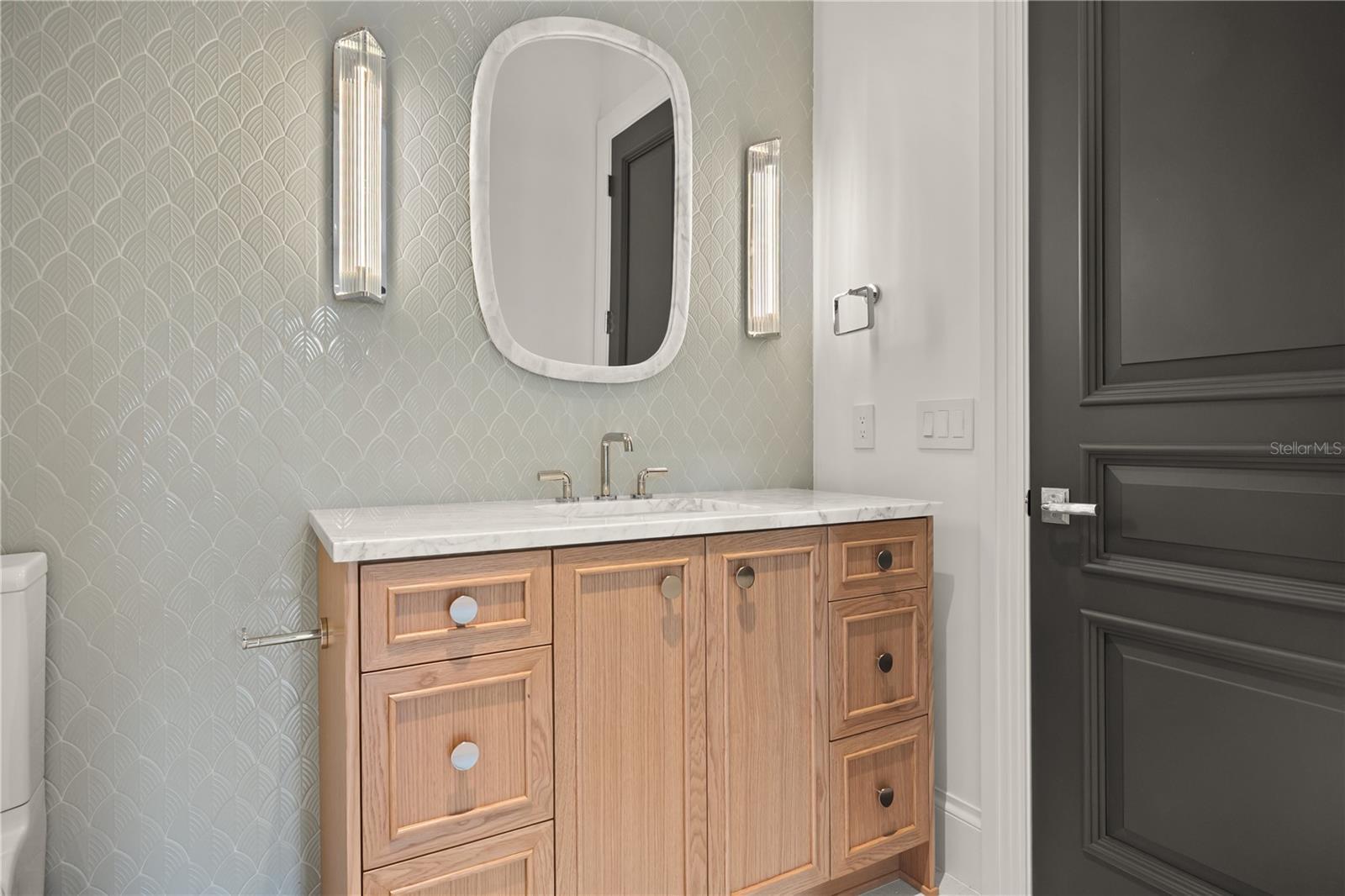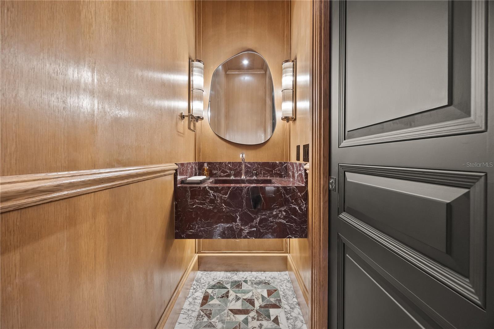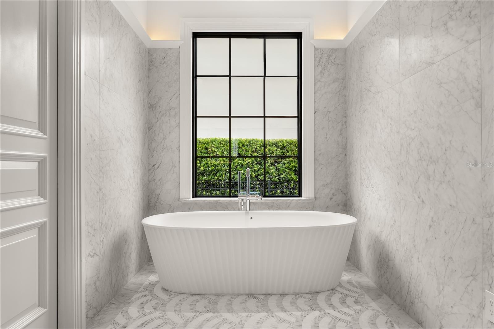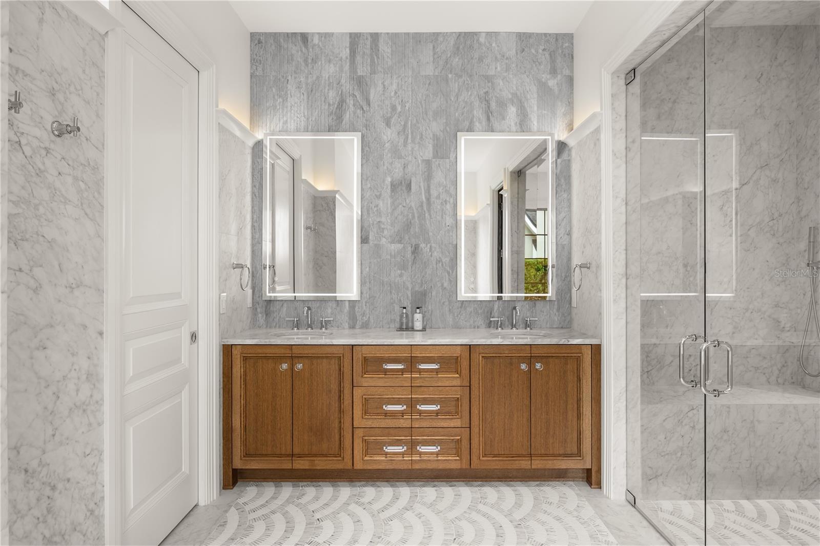An expression of modern luxury by SMRS Design and Cole Homes, The Maybourne masterfully blends Neoclassical elegance with Art Deco sophistication—all just steps from Winter Park’s iconic Park Avenue. A curved, manicured driveway leads to a grand entrance featuring bespoke double doors with electromagnetic privacy glass, setting the tone for the artistry within. Inside, a European hotel–inspired foyer greets guests with precast stone-clad walls, inlaid marble flooring, and a Murano-style polyhedral chandelier. Two first-floor guest suites, each with its own bath, are adorned with rift-cut white oak millwork, curved ceilings, and crystal chandeliers. At the heart of the home lies the main salon, where oak detailing and a deco-style stone fireplace with a holographic insert create an atmosphere of understated grandeur. The two-tone oak kitchen, wrapped in natural quartzite and anchored by a curved island and custom hood, features a curated suite of professional-grade appliances: • ILVE range • Miele refrigerator, freezer, and dishwasher • Sub-Zero wine and beverage preservation systems Adjacent, a dining area glows under a custom chandelier, while the powder bath impresses with wood and marble accents, an integrated stone sink, and a Saint Louis crystal faucet by Kallista. A scullery expands the culinary capability with a chef’s sink, Samsung Bespoke laundry and refrigeration, Wolf microwave drawer, and additional Miele dishwasher—ideal for both entertaining and daily ease. The first floor primary suite, discreetly hidden behind millwork, offers a serene retreat with an opulent closet system and a marble mosaic-clad bathing suite featuring Kohler digital shower technology and MTI tub. Upstairs, two additional ensuite bedrooms, a bonus room with walk-in closet, and a secondary laundry continue the home’s standard of refined luxury. Outdoors, the residence embraces resort-style living with a natural gas summer kitchen, infinity-edge pool, and 360-degree raised glass-tile spa. A two-car garage and porte cochere, both EV-ready, provide elegant utility. Modern conveniences include Lutron HomeWorks lighting and shade prewire, built-in SONOS audio zones, pre-installed speakers, and a commercial-grade Ubiquiti WiFi network ensuring flawless connectivity throughout. A feast for the senses, The Maybourne is more than a home—it’s a statement of artistry and craftsmanship, conceived for the most discerning Winter Park resident.