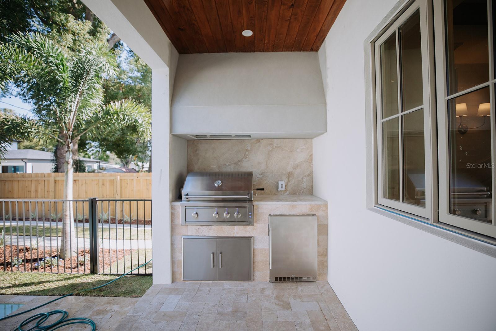 - Awning(s), French Doors, Outdoor Kitchen, Rain Gutters, Sidewalk