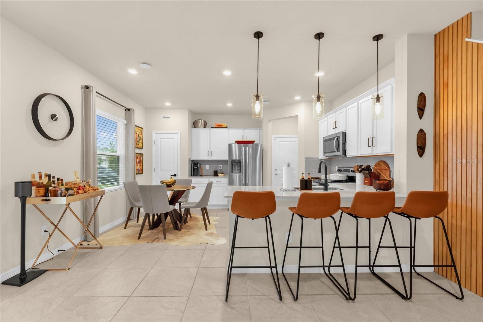 Built in 2023, this beautifully maintained 3-bedroom, 2 and a half-bathroom townhome offers modern style and comfort in a convenient location. This end unit features plenty of natural light, upgraded light fixtures, designer plumbing fixtures, and a custom accent wall feature. The open-concept living area creates a welcoming flow, complemented by a modern kitchen with stainless steel appliances. The kitchen is equipped with stainless steel appliances, a large island, and plenty of storage, perfect for everyday living and entertaining. The spacious primary suite includes a walk-in closet and a private en-suite bath equipped with dual vanities, and wash closet. Additional bedrooms are generously sized and versatile for guests, a home office, or additional living space. An attached two-car garage provides secure parking and additional storage. Other highlights include a second floor laundry closet, and a private patio ideal for relaxing outdoors. Conveniently located near Disney, major retail shopping, dining, and major highways, such as 192, 417, and Osceola Parkway, this home offers both style and convenience. Contact today for your private showing.