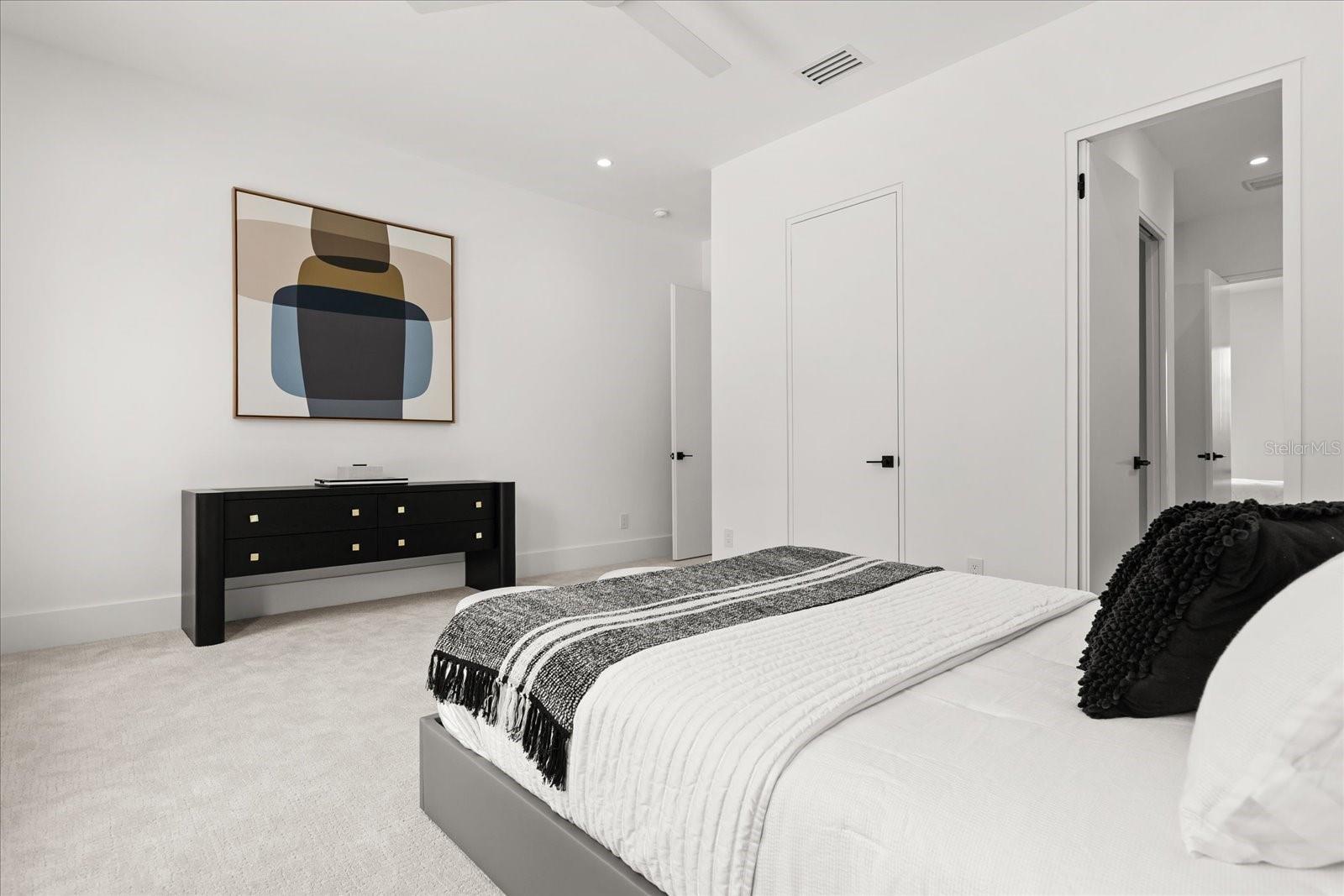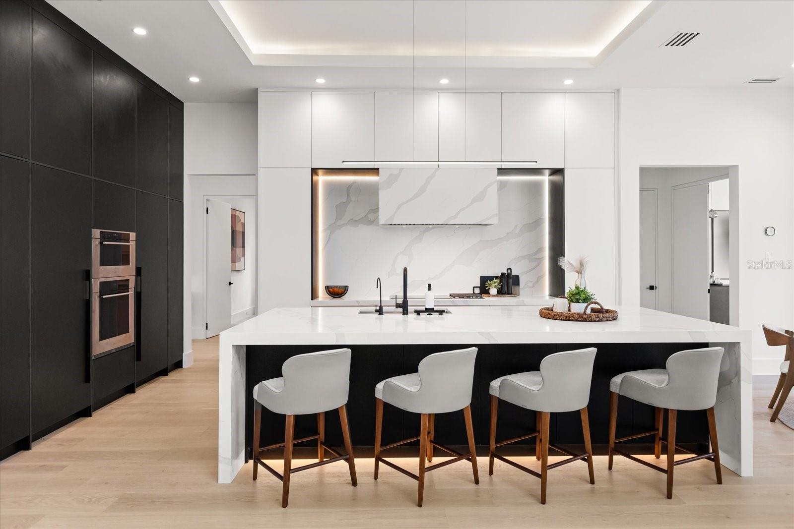 Welcome to a rare modern estate inside an intimate gated enclave, offering 6,816 square feet of fully furnished luxury with six bedrooms, six full baths and two half baths. Every detail of this custom-built masterpiece was designed for those who value privacy, prestige and perfection. Go inside to discover European white oak flooring, soaring ceilings and designer-curated finishes that define understated elegance. The chef’s kitchen features Wolf appliances, an oversized island, and custom cabinetry that flows seamlessly into open-concept living and dining spaces, ideal for entertaining or effortless daily living. The first-floor primary suite is a sanctuary of its own, with a two-story boutique-style dressing room and a spa-inspired bath showcasing dual vanities, a freestanding soaking tub and a double rainfall shower beneath a skylight. Upstairs, each bedroom offers its private en suite, including a flexible Jack and Jill layout. Additional highlights include a private theater, executive office, and a detached casita ideal for guests or multigenerational living. Outdoors, experience your resort retreat, a negative-edge pool with cascading waterfalls, spa jacuzzi, covered lanai, and fully equipped outdoor kitchen built for year-round entertaining. In a small, exclusive gated community, this property delivers a balance of modern sophistication and timeless comfort. Homes of this caliber rarely become available. Schedule your private showing today and experience why this estate stands in a class of its own.