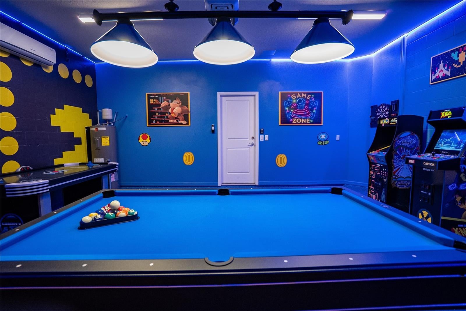SELLER MOTIVATED — FULLY FURNISHED! Welcome to your dream investment opportunity in the highly anticipated Windsor Cay Resort! This stunning, turnkey, move-in-ready vacation home features 5 bedrooms, 5.5 bathrooms, and over $80,000 in premium furnishings and high-end décor. Professionally decorated and thoughtfully designed, it’s perfectly tailored for the short-term rental market and already performing as a 5-star Airbnb. The property is equipped with high-end furniture for short-term rental. Every detail has been curated to impress guests and maximize occupancy — from sleek vinyl flooring to creatively themed bedrooms that create a memorable experience. Enjoy the Florida lifestyle with your own private screened-in heated pool and spa, covered lanai. Fully converted garage now serving as a spacious and incredible game room. The open-concept floor plan seamlessly integrates a modern, fully equipped kitchen, elegant dining area, and inviting living spaces ideal for entertaining. Upstairs, discover a stylish movie room and a fun arcade game room for all ages. Located in one of the fastest-growing areas of Central Florida, Windsor Cay Resort offers world-class amenities and exceptional ROI potential. This gated community features 24-hour security and resort-style luxuries, including a future state-of-the-art clubhouse scheduled to open in mid-2025, resort pool and spa, fitness center, playgroun.