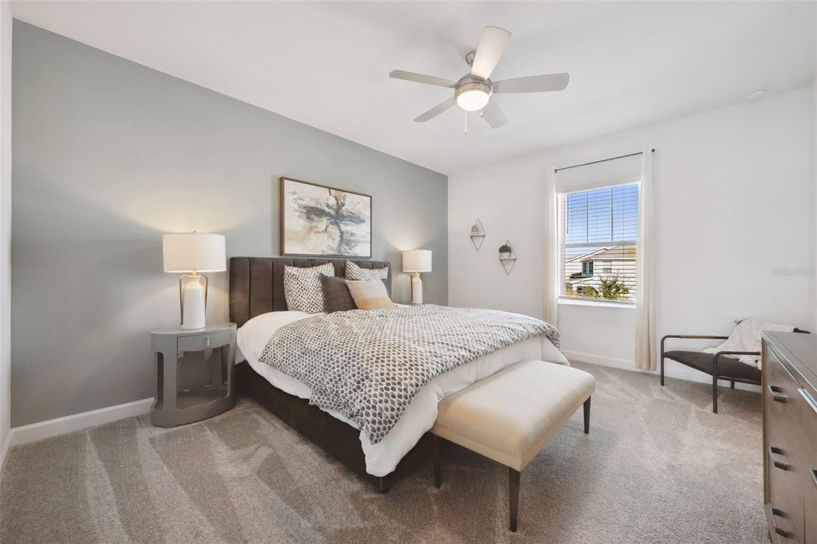 **Garage conversion to be completed prior to closing** Why Wait to Build? Discover this stunning, never-lived-in former model home located in the tranquil Bridgewalk community. Set on a spacious lot with picturesque pond views, this impressive residence offers the perfect canvas to create your own outdoor oasis. A 7.125 kW solar system helps significantly reduce monthly energy costs. Step through the glass-paneled front door into a bright, open foyer that leads to a formal dining room—ideal for hosting gatherings and special occasions. The large family room showcases beautiful water views and flows seamlessly into the breakfast nook and gourmet kitchen, making it perfect for entertaining. The chef-inspired kitchen features 42” upper cabinets, stainless steel appliances, a glass tile backsplash, a large quartz island, and pond views that make every meal prep a pleasure. A main-floor bedroom and full bath offer an ideal setup for overnight guests or multigenerational living. Upstairs, a generous game room provides the perfect space for family fun or relaxation. The expansive owner’s suite features tray ceilings, serene pond views, dual walk-in closets, and a luxurious spa-style bath with a soaking tub, dual vanities, a makeup station, private water closet, and a spacious walk-in shower. Three additional bedrooms—each with walk-in closets—a guest bath, and a conveniently located laundry room complete the second level. Additional highlights include a three-car tandem garage, a large covered patio with water views, and a spacious backyard perfect for customizing your dream outdoor retreat or creating a secure space for pets. Bridgewalk offers an exceptional lifestyle with resort-style amenities, including a clubhouse, fitness center, lap and leisure pools, BBQ area with built-in grills, picnic pavilion, dog park, playground, pickleball and volleyball courts, and a private boat launch. Lawn maintenance is included, allowing for easy, low-maintenance living. Zoned for Voyager K–8 and Tohopekaliga High School, residents enjoy access to some of the area’s top-rated schools. Ideally located just minutes from Lake Nona, Medical City, SR 417, and the Florida Turnpike, Bridgewalk combines a peaceful neighborhood atmosphere with convenient access to premier shopping, dining, and entertainment. Don’t miss your chance to own a nearly new, feature-rich home in one of St. Cloud’s most sought-after communities—schedule your private showing today! **Garage conversion to be complete by end of November**