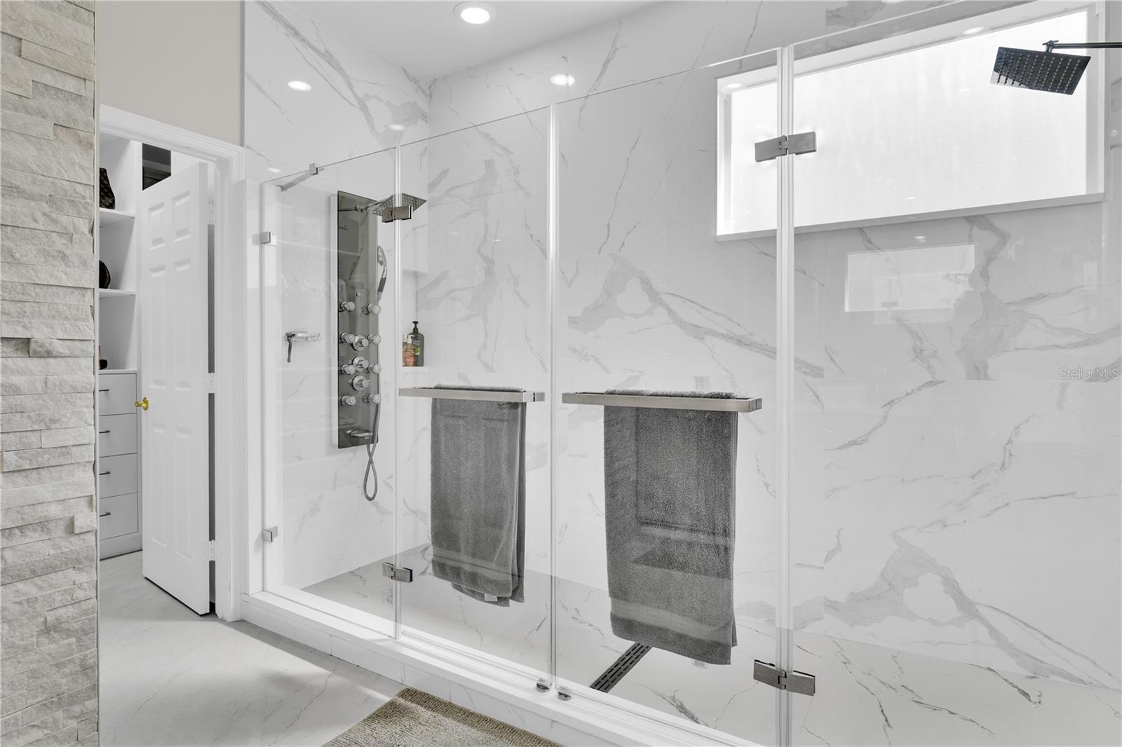 - Ceiling Fans(s), Eat-in Kitchen, High Ceilings, Kitchen/Family Room Combo, L Dining, Living Room/Dining Room Combo, Open Floorplan, Primary Bedroom Main Floor, Stone Counters, Thermostat, Walk-In Closet(s)