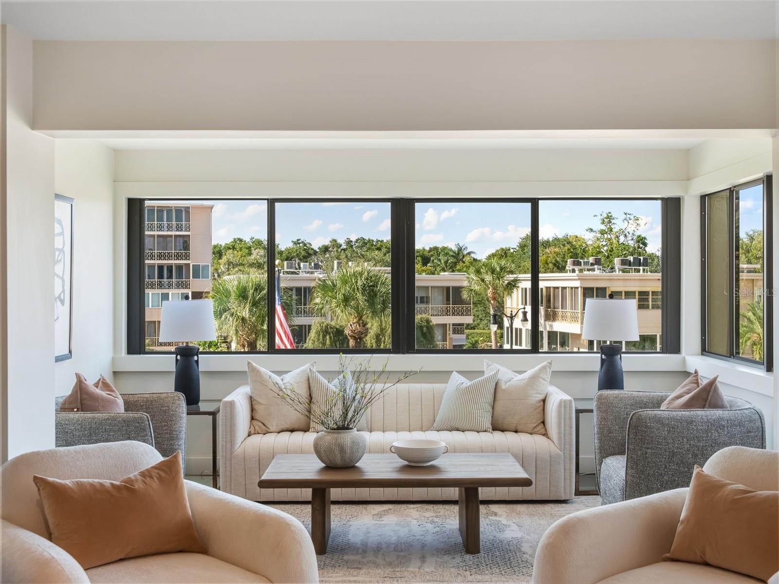 Residence 415 at The Cloisters offers a rare opportunity to own a comprehensively rebuilt home in one of Winter Park’s enduring lakefront communities. Set on the fourth floor, just one block from Park Avenue, this residence blends timeless architecture with newly reimagined design. Taken thoughtfully down to its original structure and meticulously reconstructed with longevity in mind, this two-bedroom, two-bath residence now reflects a highly customized living experience. Every surface, system and layout choice has been elevated, beginning with level 5 smooth drywall, Emtek polished nickel hardware, custom millwork, full-height solid-core doors and Panaget engineered hardwood flooring. Lutron lighting systems control dimmable LED lighting throughout. Bedrooms, as well as the family room, include prewiring for additional fixtures, and the primary suite features dedicated pendants over each nightstand, independently controlled bedside. The kitchen is anchored by a full suite of smart Thermador appliances, including an induction range, range hood and a full-height refrigerator with a convertible Flex drawer for additional refrigeration or freezer storage, an internal water dispenser, built-in compartment cameras and Thermador’s signature Diamond ice maker. Calacatta Laza quartz surfaces and full-height backsplash accentuate custom oak cabinetry featuring soft-close drawers, an integrated appliance station with interior outlets, and an oversized pantry for seamless storage. A breakfast bar opens to the dining and living areas, which comfortably accommodate full-size furnishings and create defined spaces for formal dining, casual living and media use. The primary suite offers two built-in closets and a spa-inspired bath with Fantasy Brown quartz countertops on a wall-to-wall vanity. A lighted medicine cabinet mirror with integrated speakers sits above the vanity, with interior power outlets for charging accessories. A fully tiled frameless shower features a lighted accent wall, overhead rain shower and wall-mounted handheld options. Additional built-in cabinetry provides deep storage for linens and supplies, as well as a dedicated laundry storage closet. The second bedroom functions as a guest suite, supported by a beautifully appointed bath in matching design. Additional highlights include custom-trimmed window casings throughout, ready for shades or shutters, and an entry closet that can double as storage or pantry overflow. The residence includes assigned covered parking and private storage. Residents of The Cloisters enjoy an amenity-rich lifestyle with on-site management, access to a heated pool, two fitness rooms with saunas, a clubhouse and manicured lakefront park space. This turnkey optional offering places you at the heart of Winter Park’s cultural, dining and retail corridor, where enduring architectural character meets elevated, modern living.