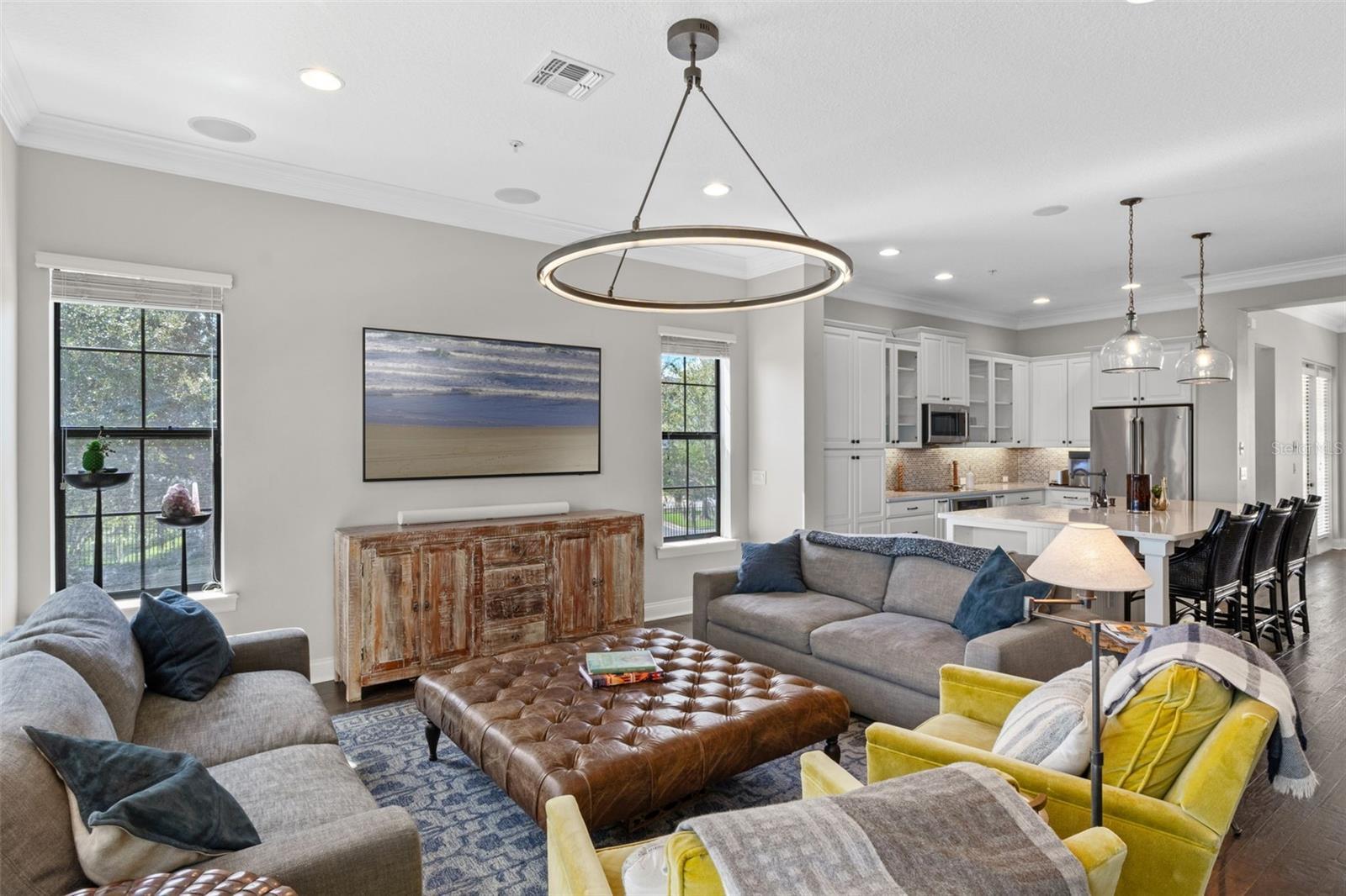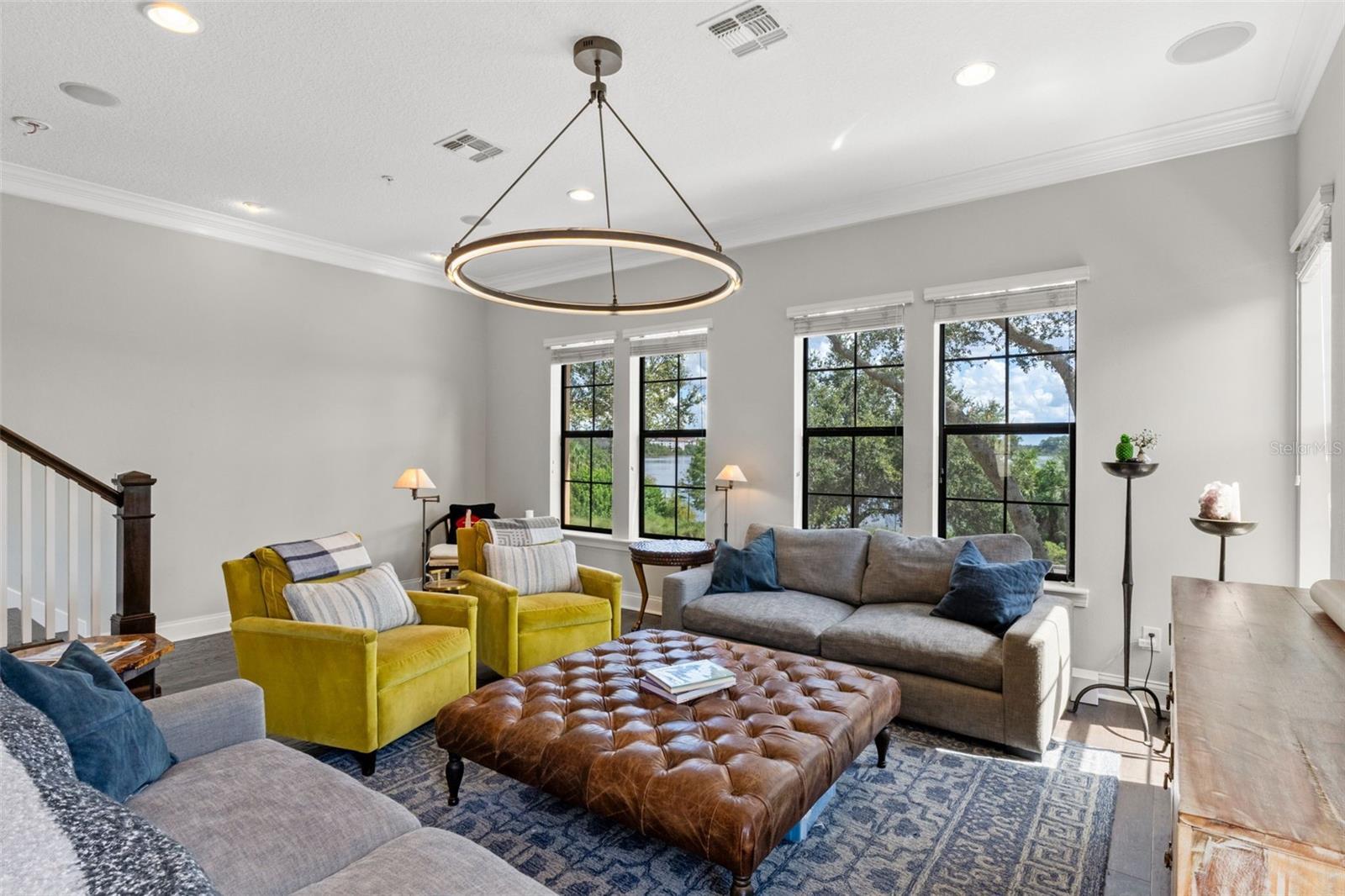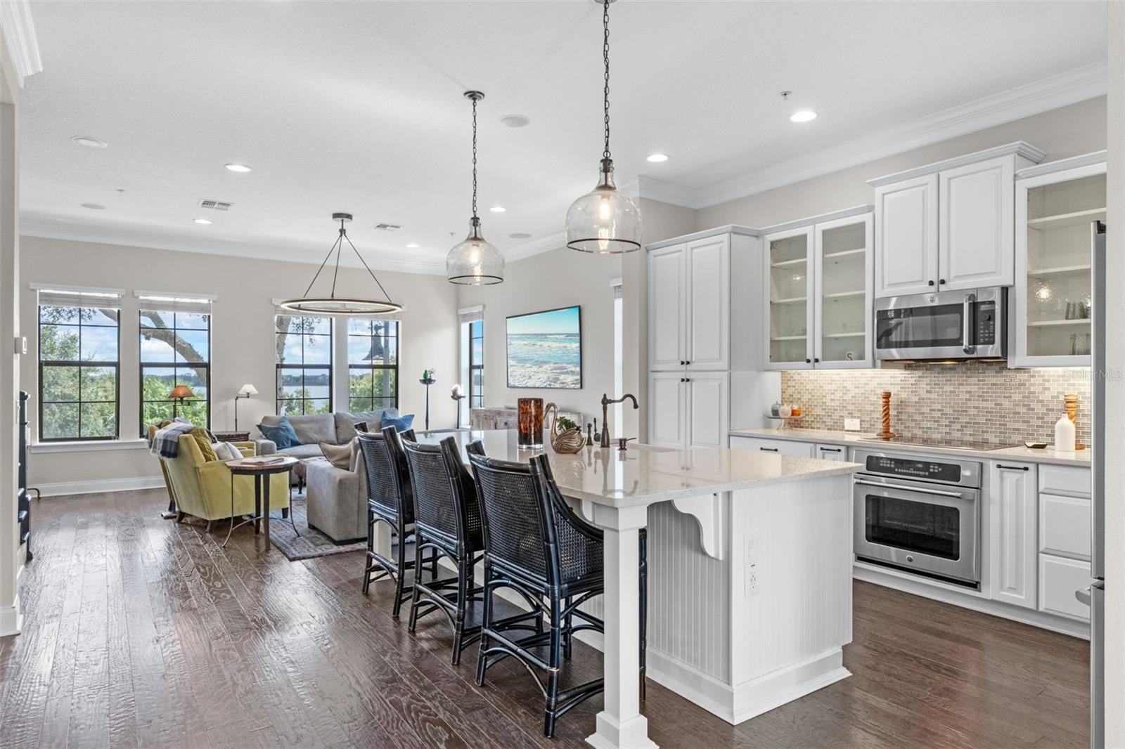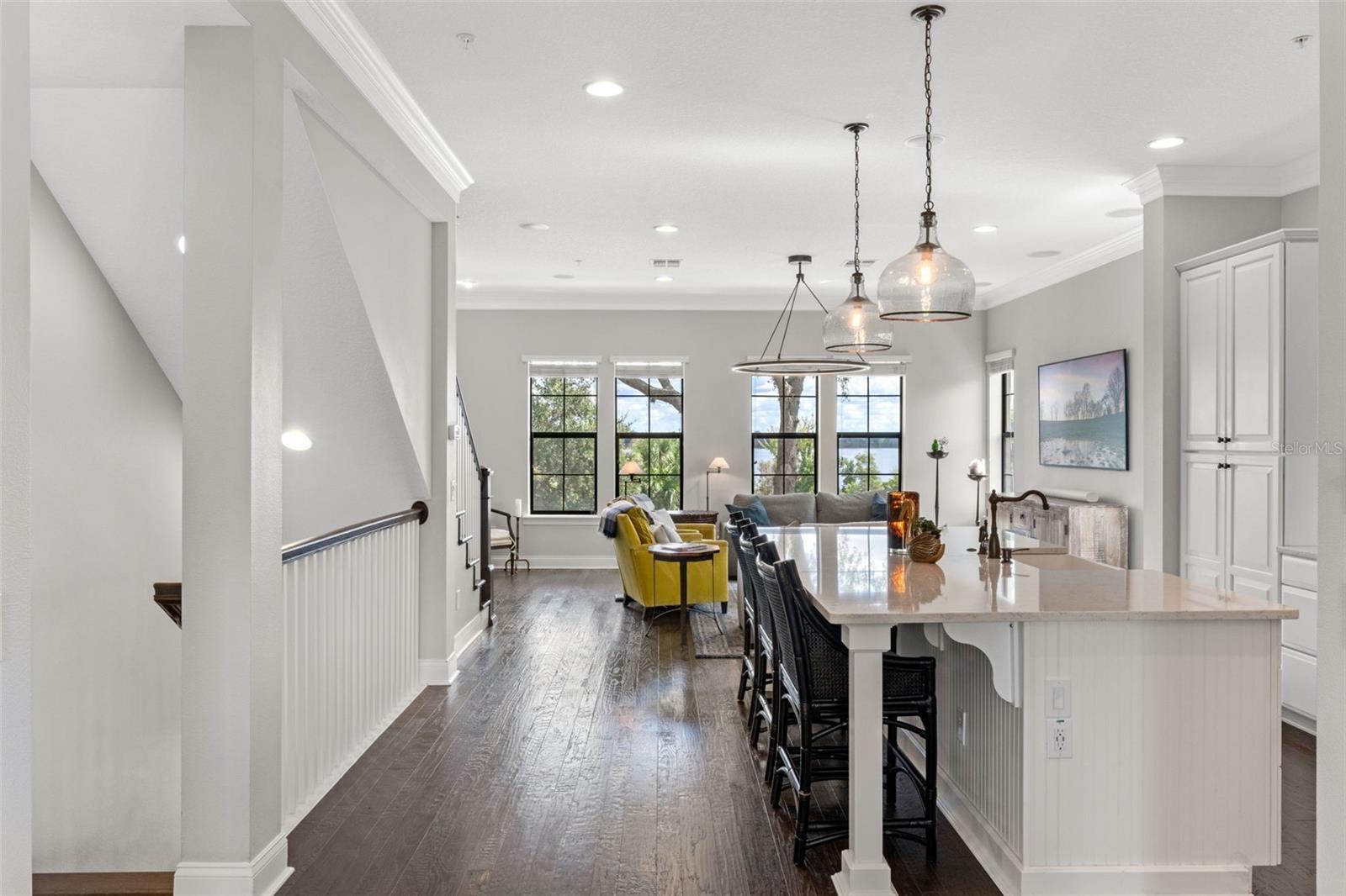 Enjoy one of Baldwin Park’s most coveted locations with direct, uninterrupted views of Lake Baldwin, and even rocket launches on a clear evening. This special City Home is 3-story, 3-bedroom, 3.5-bath residence blends timeless architectural detail with thoughtful modern upgrades, all set in the heart of one of Orlando’s most walkable communities. Step in from the oversized front porch into the ground-floor open study, perfect as a dedicated office, den, or guest suite, complete with a full bath and a built-in beverage station. Up the oak-tread stairs, the main living level opens to an entertainer’s floorplan: a spacious kitchen with custom cabinetry, quartz countertops, and elevated lighting flows seamlessly into a bright dining area and living room framed by tall double-pane windows. The third level hosts the serene primary suite featuring a massage-jet shower, dual vanities, and a large walk-in closet. The two secondary bedrooms are connected by a convenient Jack-and-Jill bath, ideal for family living or guests , with an additional half bath on the main living floor for convenience. Throughout the home you’ll find meticulous craftsmanship, 8-foot doors, double crown molding, oak risers, custom fixtures, and more. The location is truly unmatched, set directly on Blue Jacket Park with a premier vantage point over Lake Baldwin where you can watch rocket launches from your own porch. You’re just steps to the Baldwin Park Town Center, with several dining, coffee, and retail at your doorstep, plus an additional parking lot on Philmont Lane that adds rare convenience. Winter Park is only minutes away, and the neighborhood’s highly walkable grid, trails, and green spaces make this one of the most desirable places to live in Central Florida.