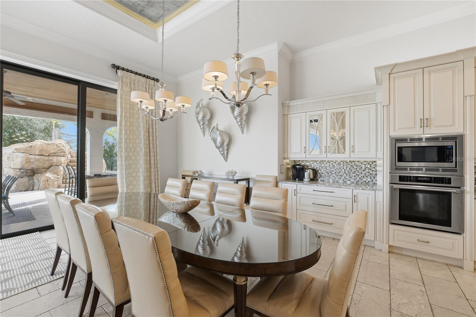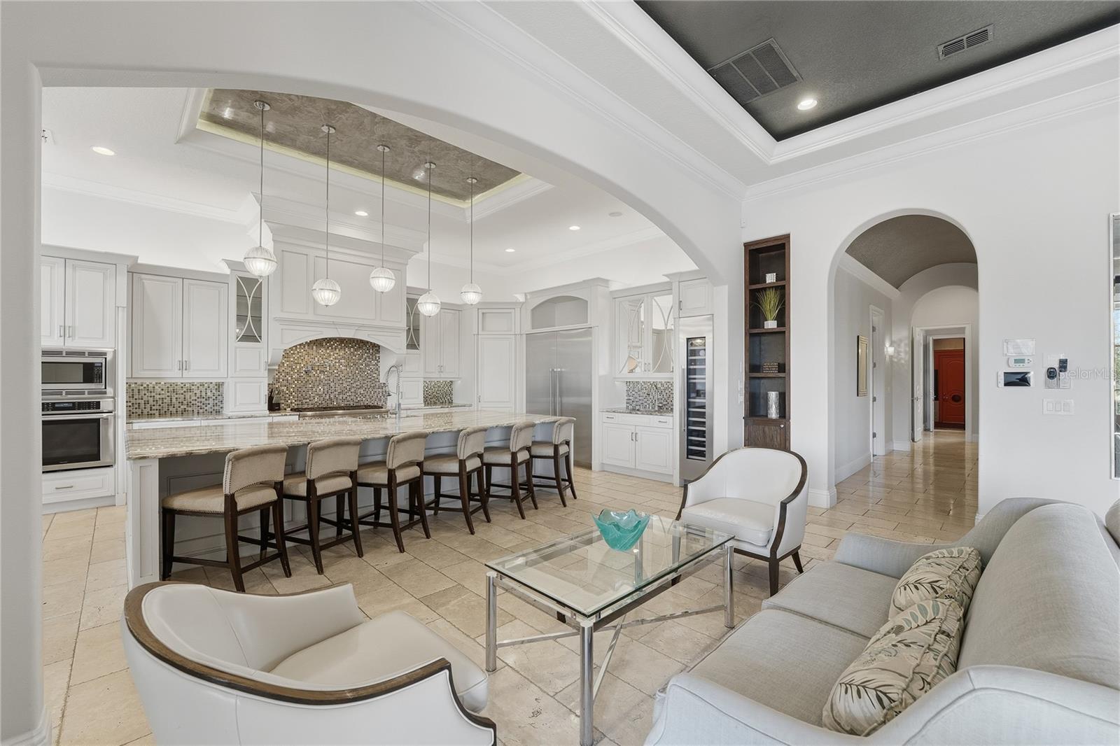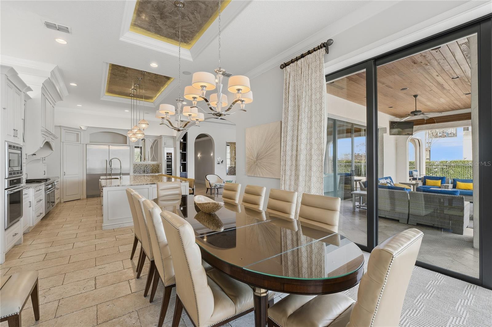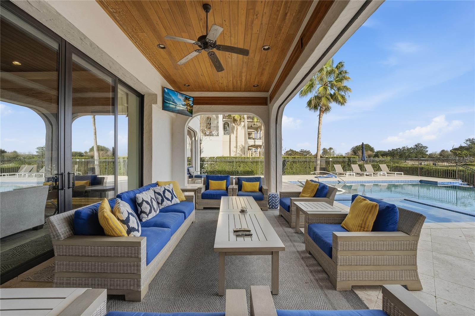 Ideally located within the award-winning REUNION RESORT and sitting on a DOUBLE CORNER LOT, this beautifully presented FULLY FURNISHED 8-bedroom, 9 full / 2 half bathroom CUSTOM BUILT home showcases panoramic GOLF AND WATER VIEWS of the 16th hole of Traditions golf course. PROFESSIONALLY DESIGNED AND DECORATED with high end finishes and stunning built-in features abound, this luxurious TURNKEY ESTATE HOME has a meticulously thought thru’ floorplan and is perfect for entertaining on a large scale with its gourmet open plan kitchen, formal dining room (with seating for 12), home theater/media room, multiple lounge seating areas and fun arcade room. There is also a flex room with dedicated private balcony which can function as an office or a gym. The impressive foyer with DOUBLE HEIGHT entryway and sweeping double staircase adorned with an elaborate chandelier lighting fixture is simply breathtaking! There are TWO PRIMARY SUITES (one on each floor), 5 further spacious bedrooms as well as a bedroom consisting of two-double bunks, all are ensuite and have an abundance of closet and storage space. With a SUNNY SOUTH FACING ASPECT, the resort style outdoor area features a stunning INFINITY EDGE POOL WITH CASCADING FOUNTAIN, heated in-pool spa, WATERSLIDE and in-pool loungers all enhanced by an expansive PATIO/SUNDECK area with open as well as covered LANAI seating areas. Enjoy Florida outdoor living and lifestyle at its finest cooking on the grill in the OUTDOOR KITCHEN watching the early morning sunrise or evening setting sunset creating memories to last a lifetime. This residence can accommodate and provides ample parking space on its turnaround private driveway in addition to a functioning car garage which is a rare commodity within the community. With the added benefit of VERSATILITY OF USAGE, this stunning property is an ideal primary residence, second and/or vacation home and/or short term/long term rental and/or investment property! An ACTIVE TRANSFERRABLE MEMBERSHIP grants access to the many amenities of the Reunion Resort with its three world class golf courses (designed by Arnold Palmer, Tom Watson and Jack Nicklaus), a golf academy, Clubhouse at The Bear’s Den, six onsite restaurants, twelve community swimming pools, a multimillion-dollar water park with lazy river, six Har-True tennis courts, pickleball, bocce ball, volleyball, crazy golf, fitness center, a playground, and full-service salon and spa. Reunion has a variety of on-site dining options and is only a couple of miles away from Walt Disney World Resort, Seaworld and Universal Studios. 3D tour available. DON’T MISS OUT on this opportunity and schedule your private showing today!
