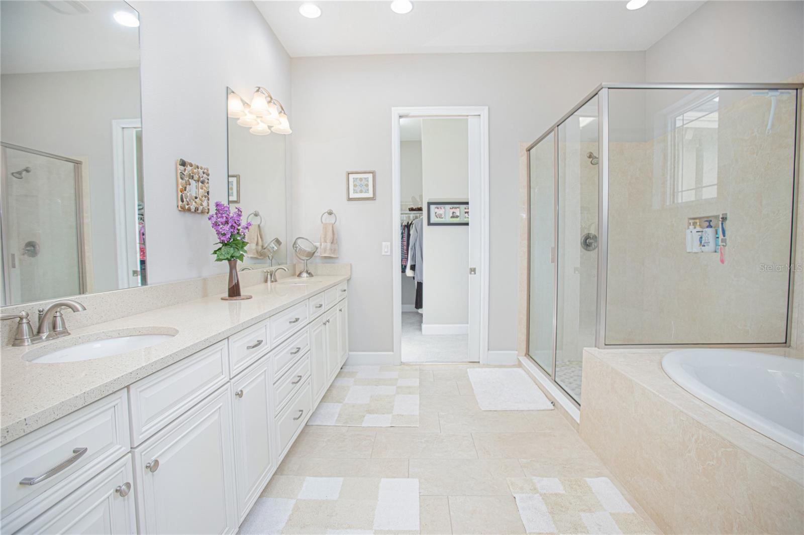 - Ceiling Fans(s), Eat-in Kitchen, In Wall Pest System, Kitchen/Family Room Combo, PrimaryBedroom Upstairs, Solid Wood Cabinets, Split Bedroom, Stone Counters, Thermostat, Tray Ceiling(s), Walk-In Closet(s)