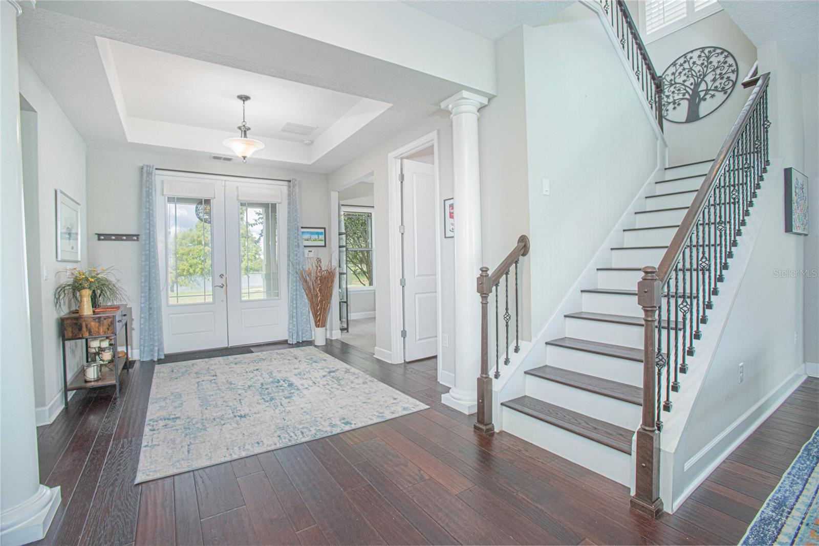 Welcome home to this beautiful two-story retreat designed for comfort, connection, and everyday enjoyment. With five bedrooms, three-and-a-half baths, and over 3,200 square feet of living space, there’s plenty of room for family, guests, and growing memories. Peaceful western water views and a rear-loading two-car garage create a relaxed Florida feel from the moment you arrive. Enjoy quiet mornings and evening sunsets from the inviting front porch overlooking scenic Square Lake. Inside, the home is bright and welcoming with high ceilings, warm wood floors, and an open layout perfect for gathering together. The spacious kitchen features double ovens, granite countertops, a large island with seating, and plenty of storage—ideal for weeknight meals or hosting friends and family. The kitchen flows easily into the dining and family rooms, making everyday living simple and enjoyable. The main floor offers a private guest suite with its own bath, a home office, a flexible dining or living space, and a convenient powder room. Upstairs, a large loft provides the perfect spot for a playroom, movie nights, or a cozy hangout. The owner’s suite feels like a peaceful retreat with a private balcony, spa-style bath, and a generous walk-in closet. Three additional bedrooms, a full bath, and an upstairs laundry room complete the second floor. Step outside to the covered lanai and paver patio—perfect for outdoor dining, relaxing evenings, or weekend barbecues. Located in the highly sought-after Laureate Park community, this home offers access to parks, trails, highly rated schools, tennis courts, and a resort-style aquatic center with multiple pools. This is a home where life feels easy, neighbors feel like friends, and every day feels just a little more special. Schedule your private showing and come see it for yourself!